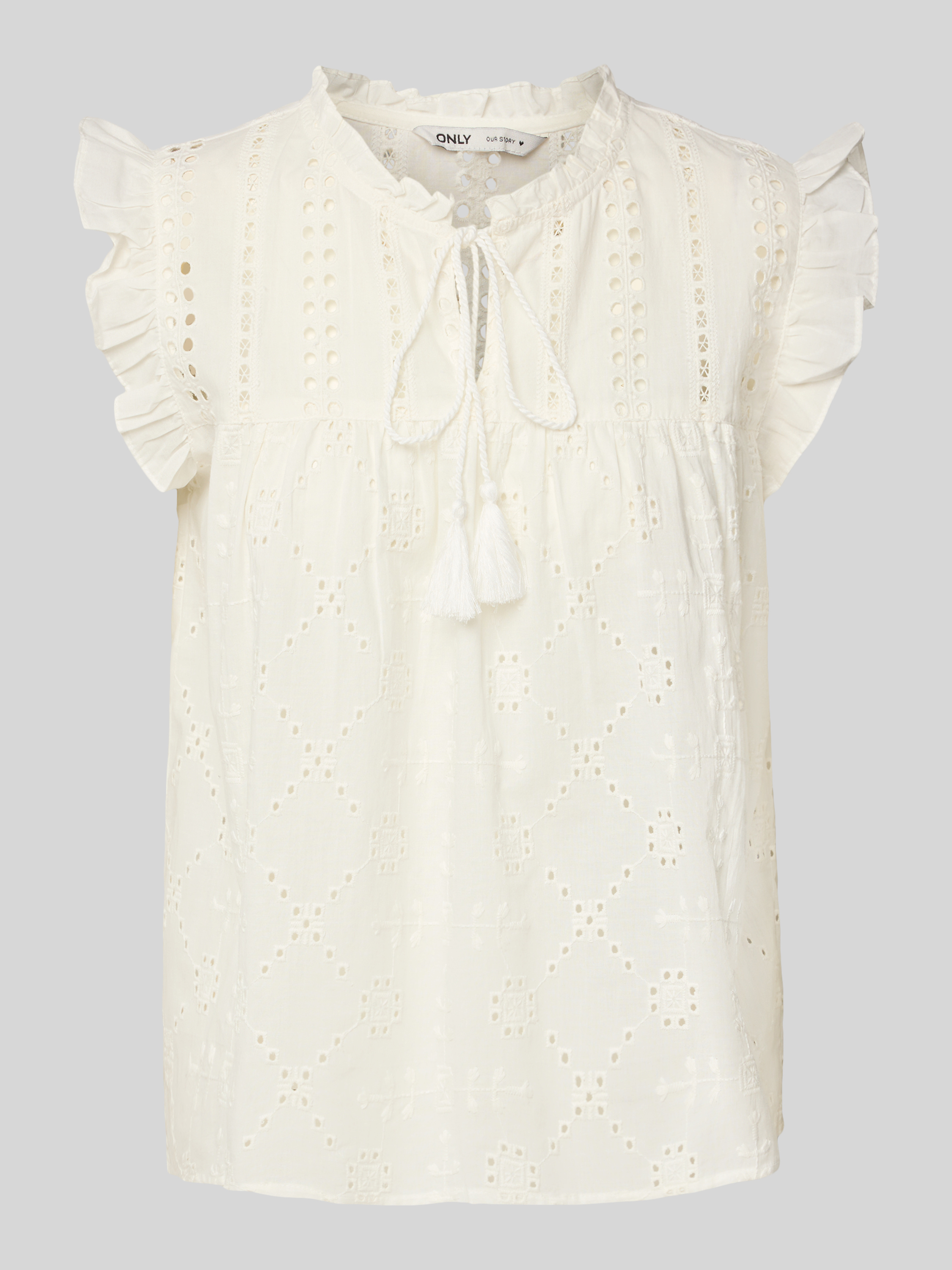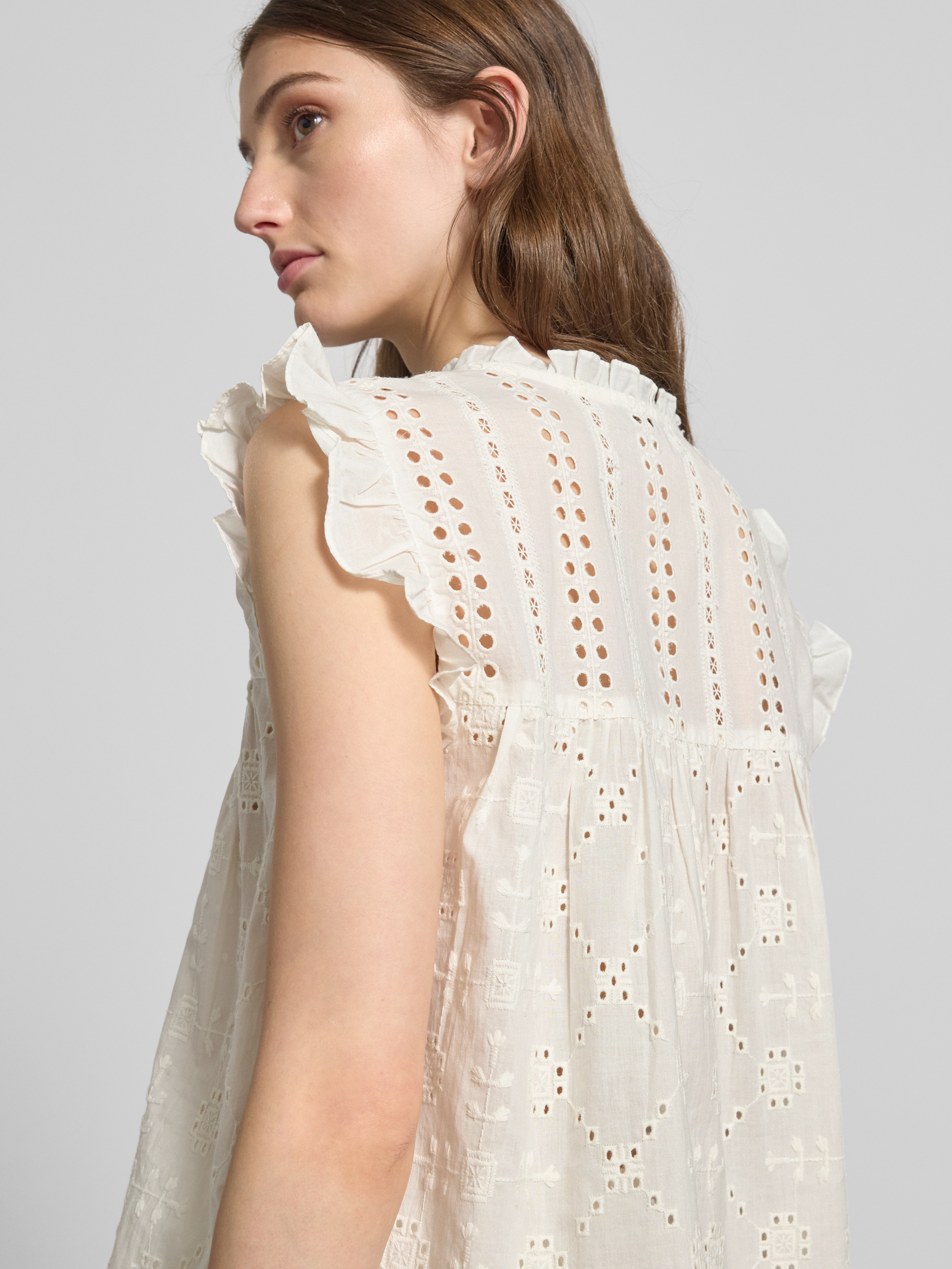 Loose fit blousetop van puur katoen, model 'REVA LIFE' in offwhite
