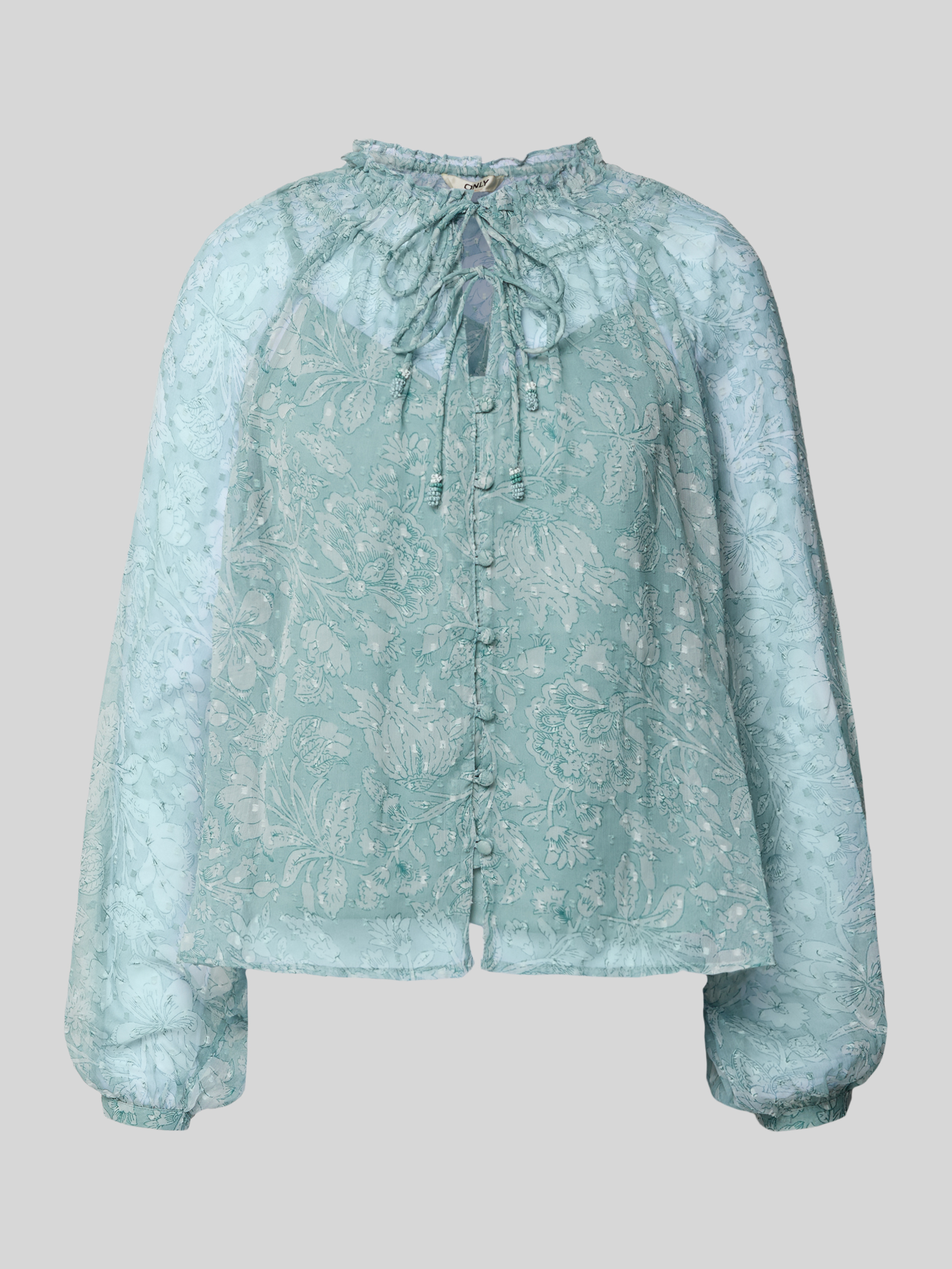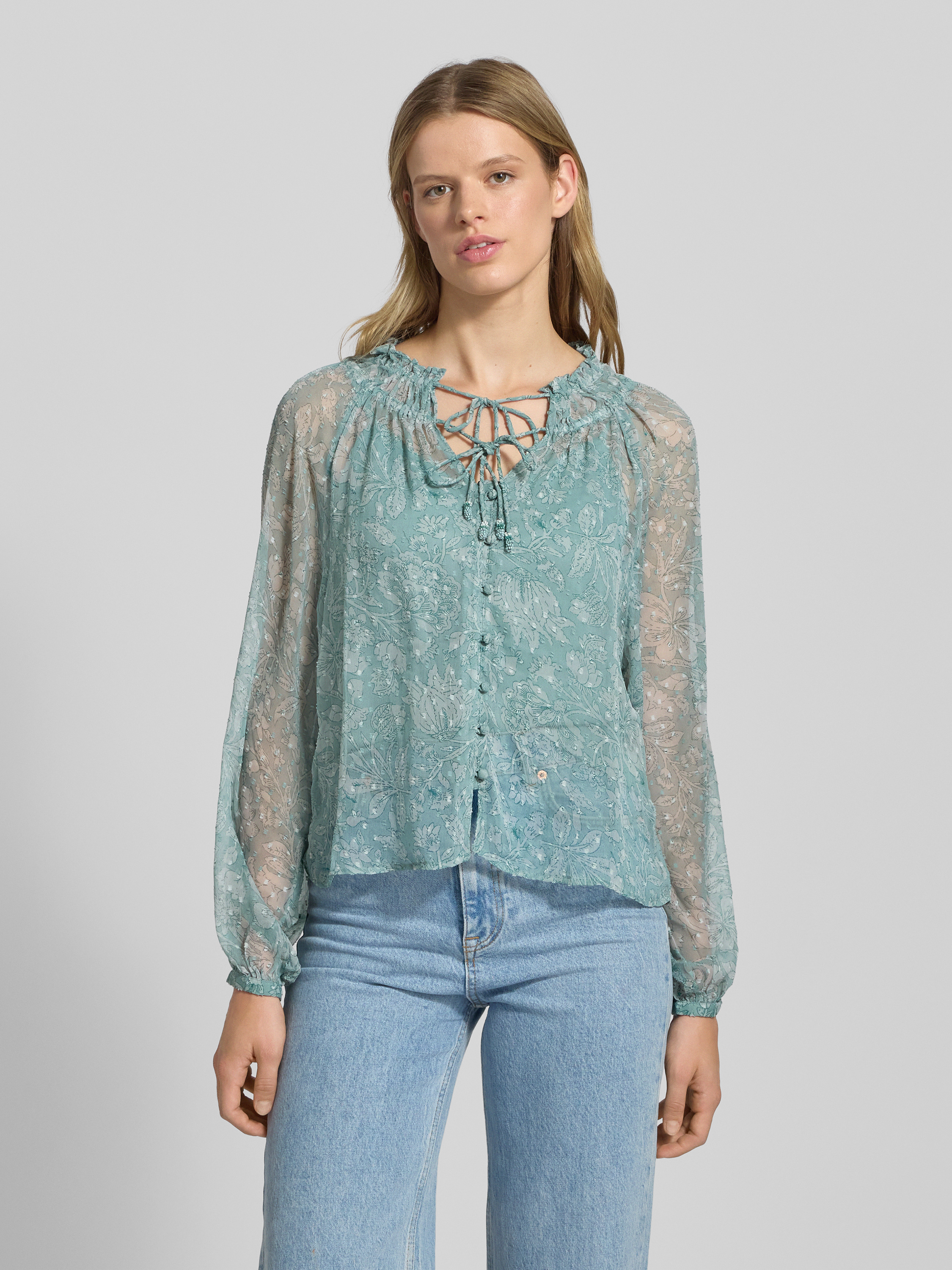 Loose fit chiffon blouse met all-over motief, model 'ELIZA LIFE' in rietgroen