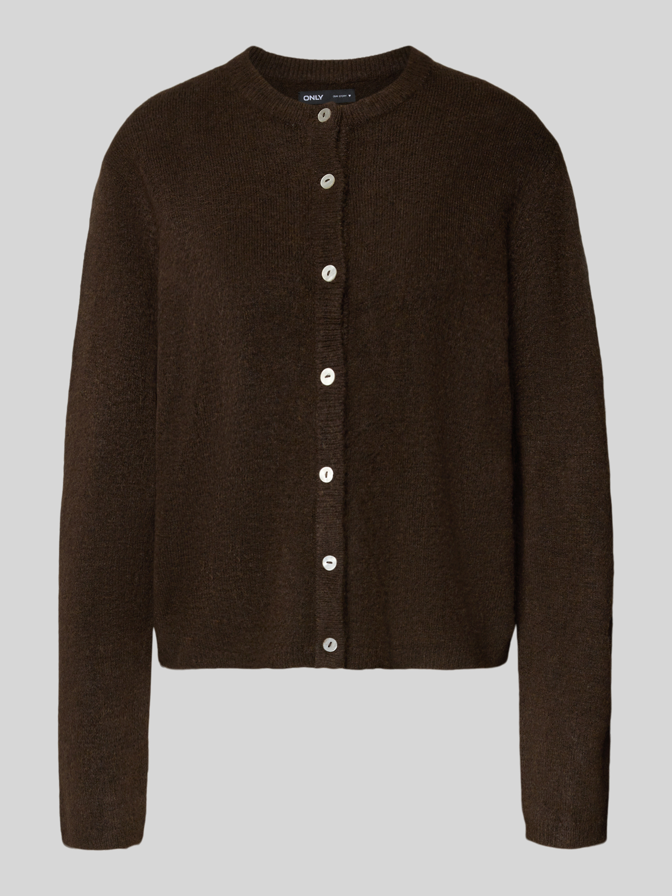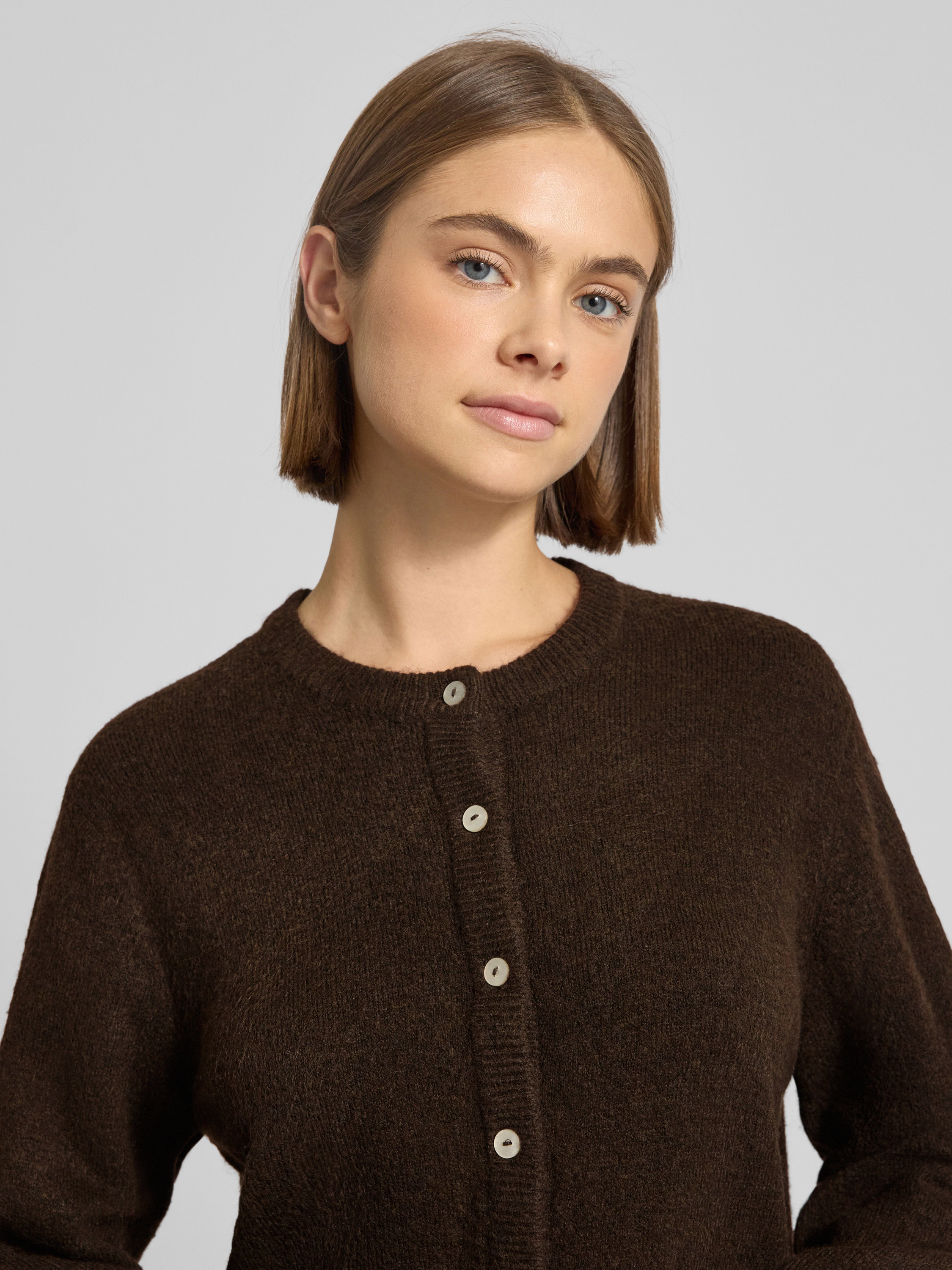 Loose fit gebreid jack met knoopsluiting, model 'SIMONI' in chocoladebruin
