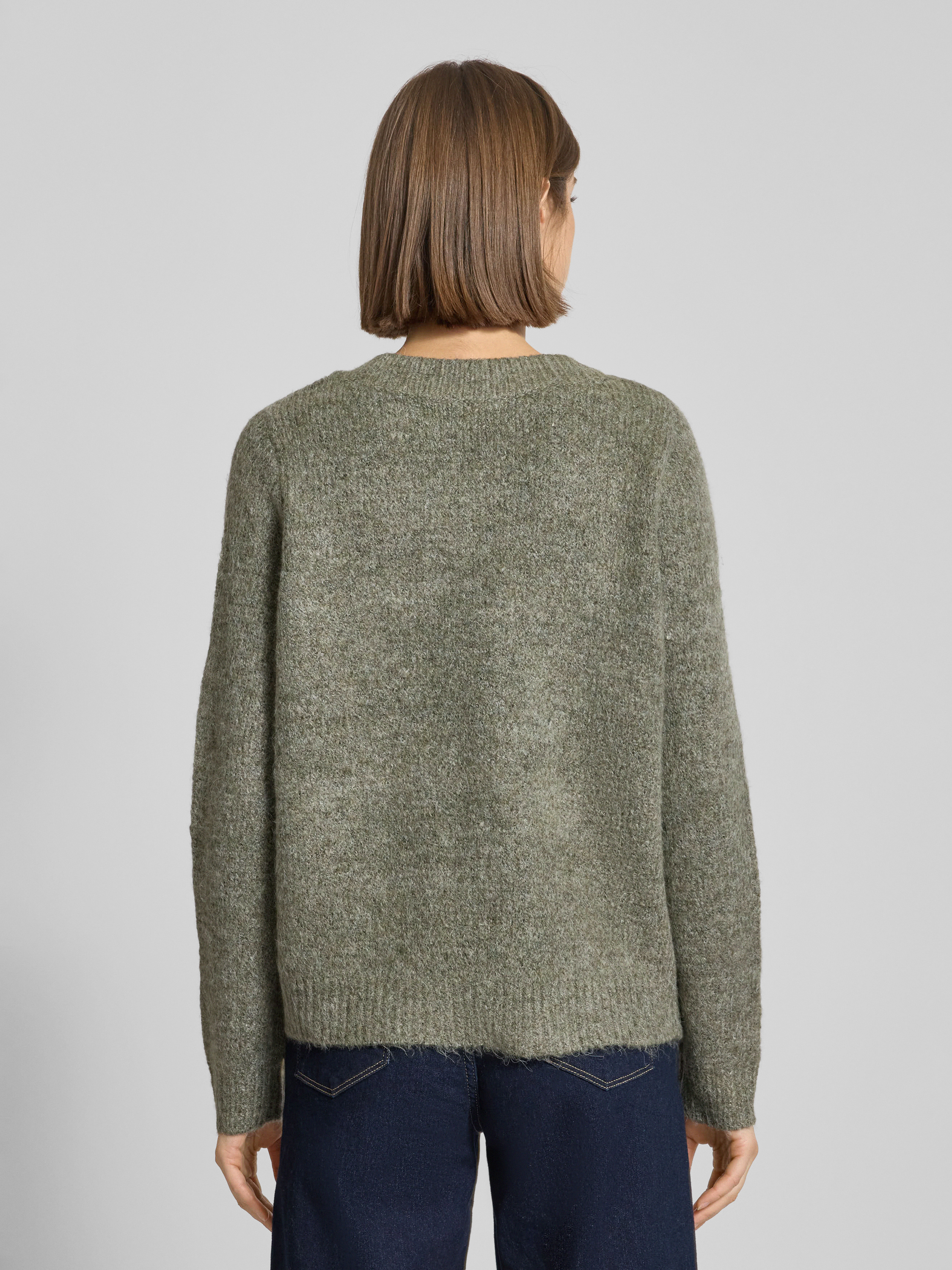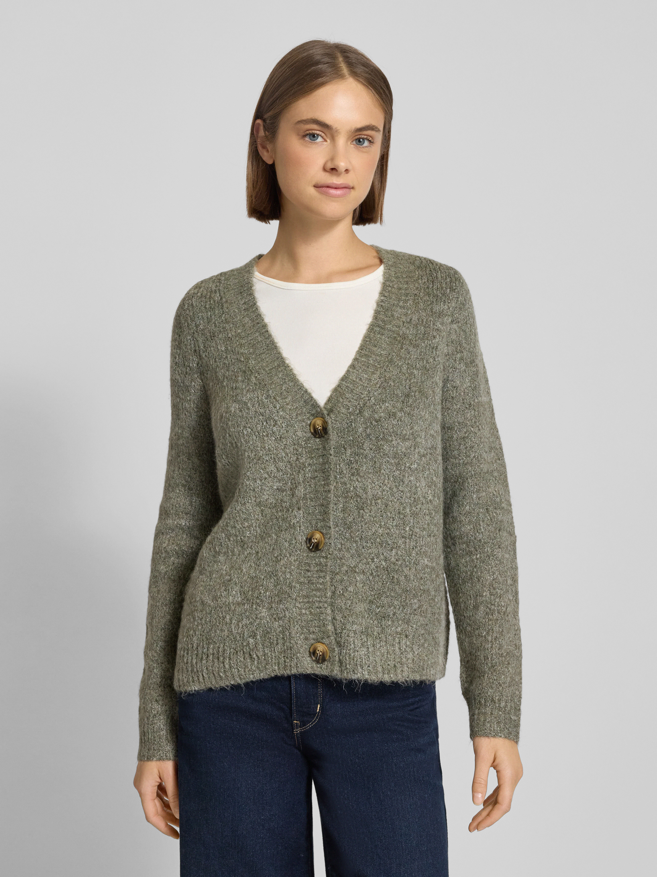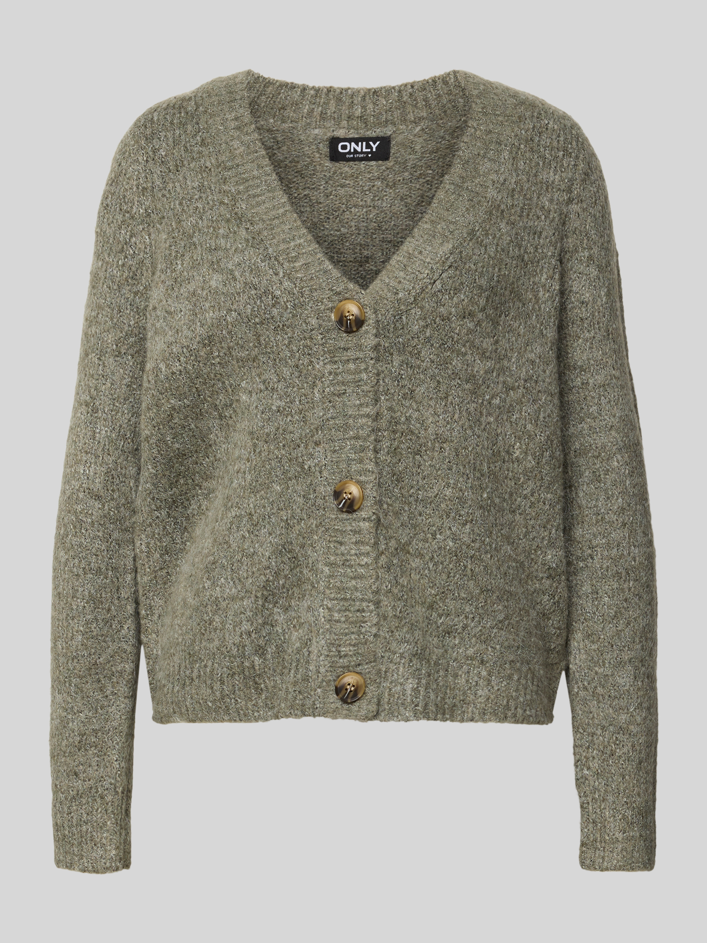 Loose fit gebreid jack met V-hals, model 'ZOEY' in olijfgroen