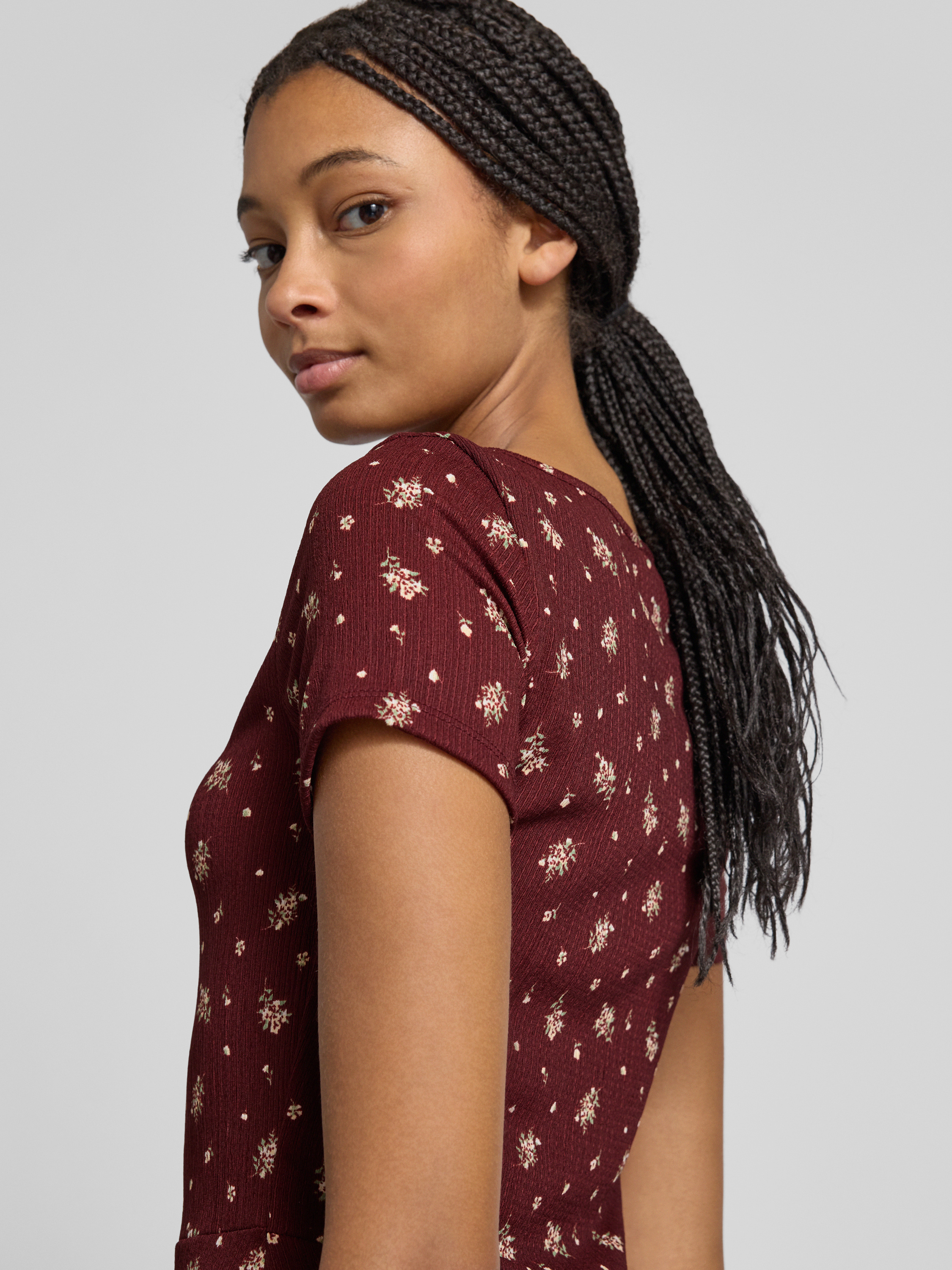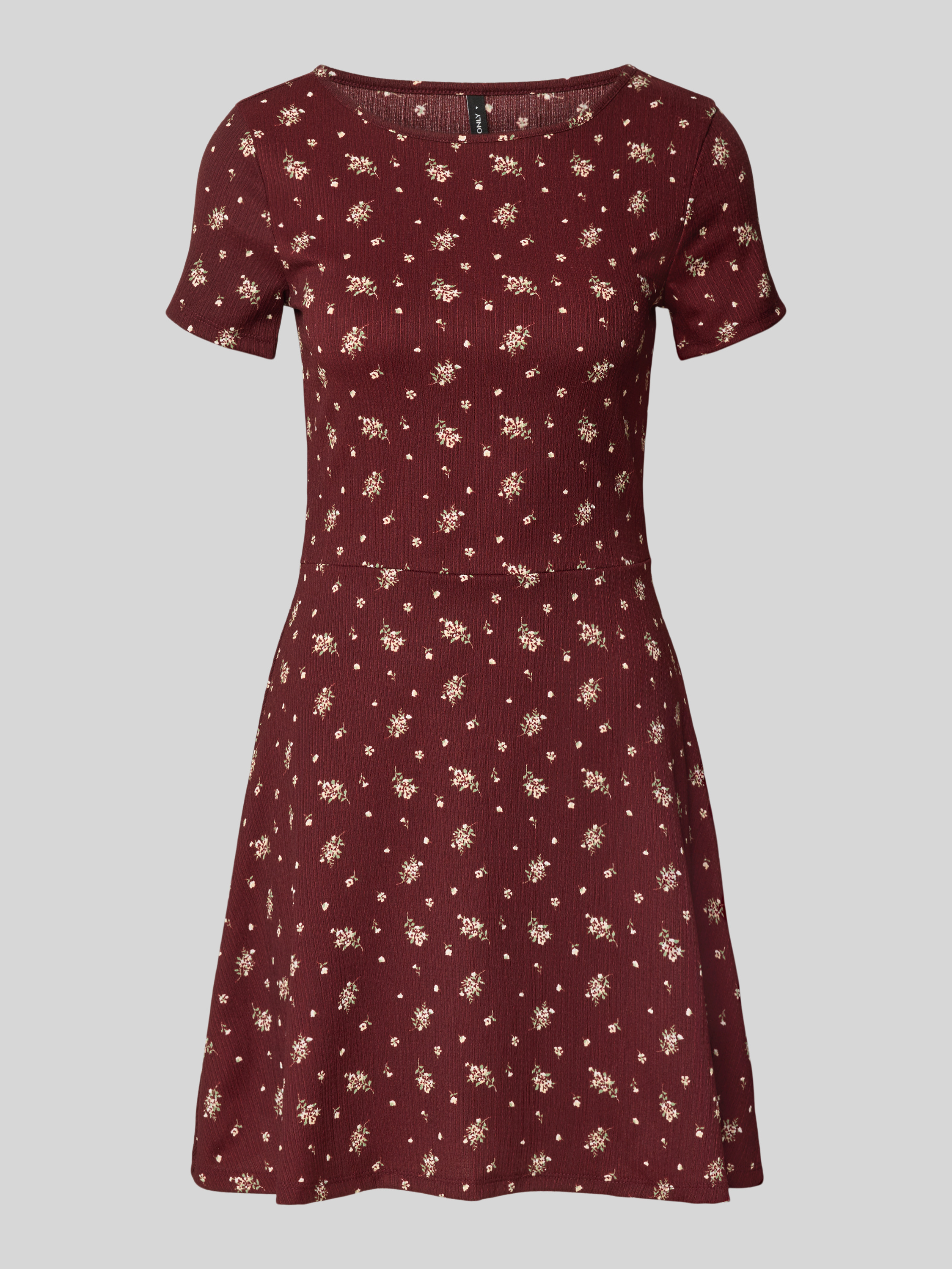 Mini-jurk met all-over motief, model '30 BILL' in bordeaux gemêleerd