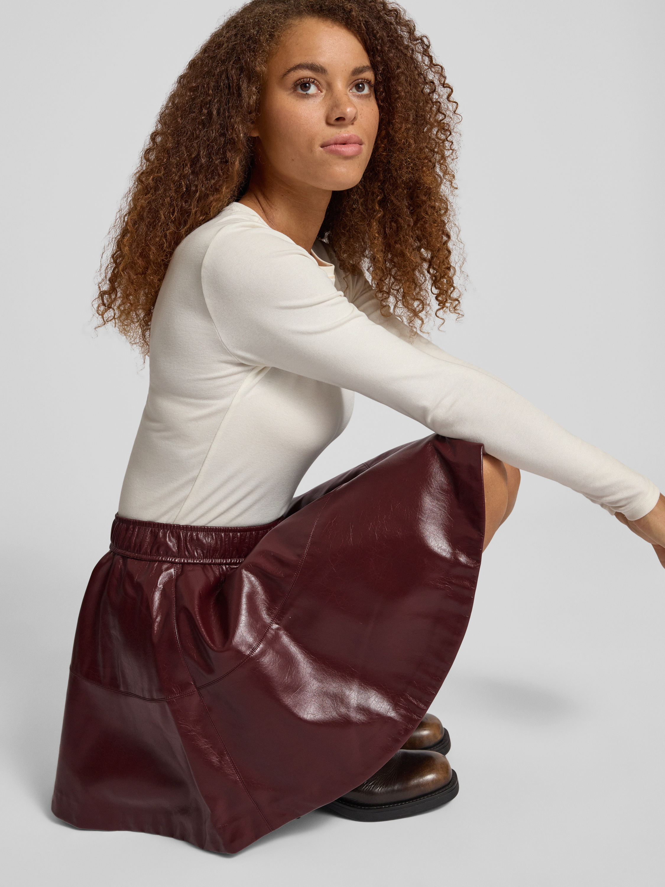 Minirok in leerlook met elastische band, model 'JACKY' in bordeaux