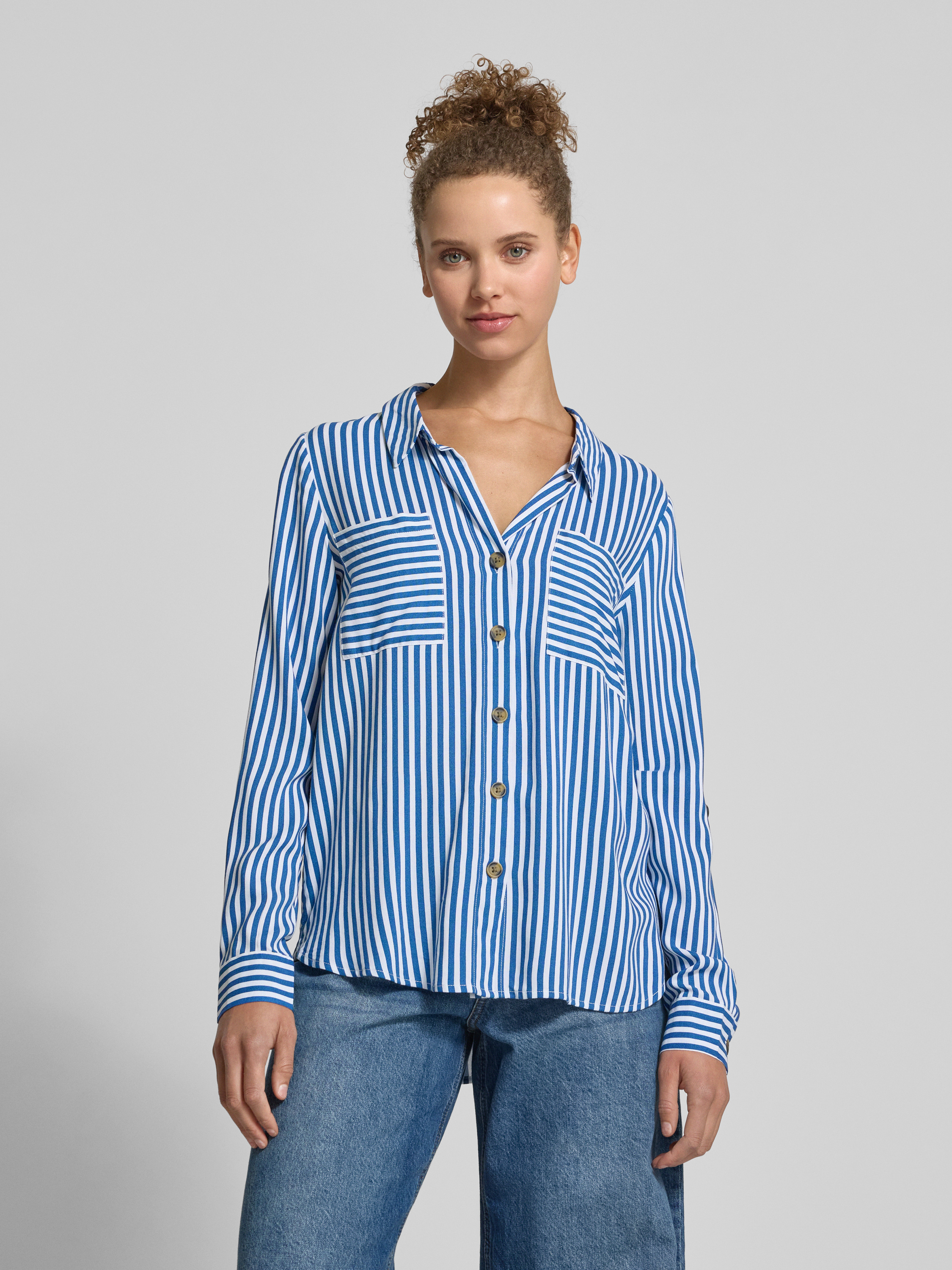 Overhemdblouse van viscose met verlengd rugpand, model 'YASMIN' in blauw