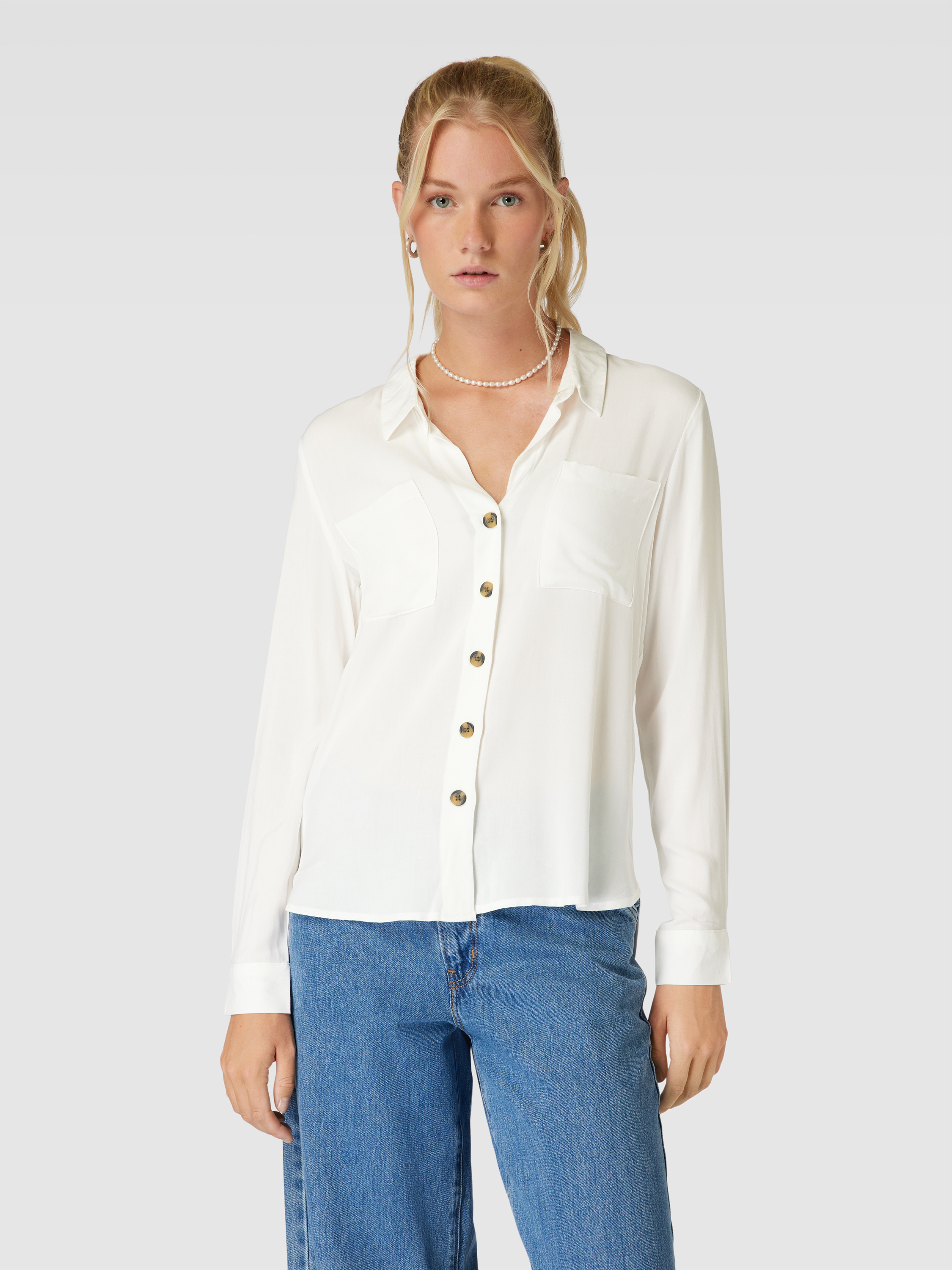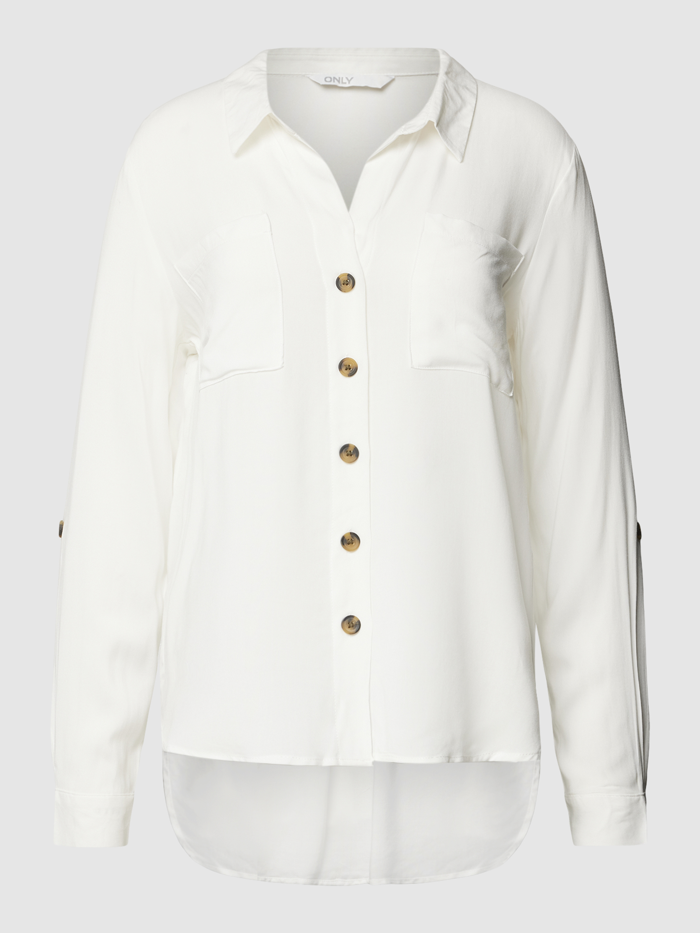 Overhemdblouse van viscose met verlengd rugpand, model 'YASMIN' in wit