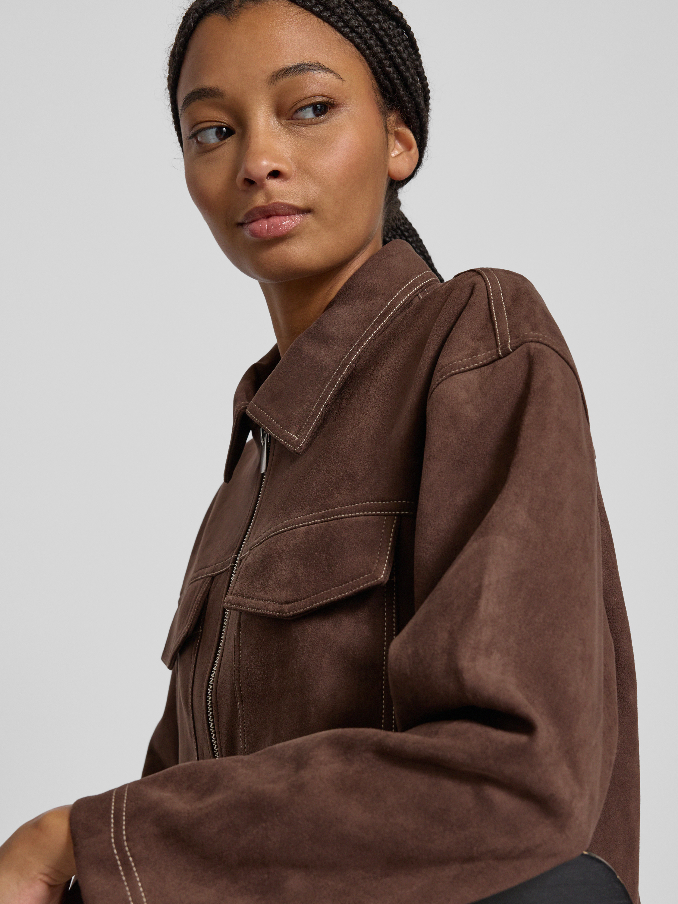 Oversized jack in wildleerlook, model 'STINA' in chocoladebruin