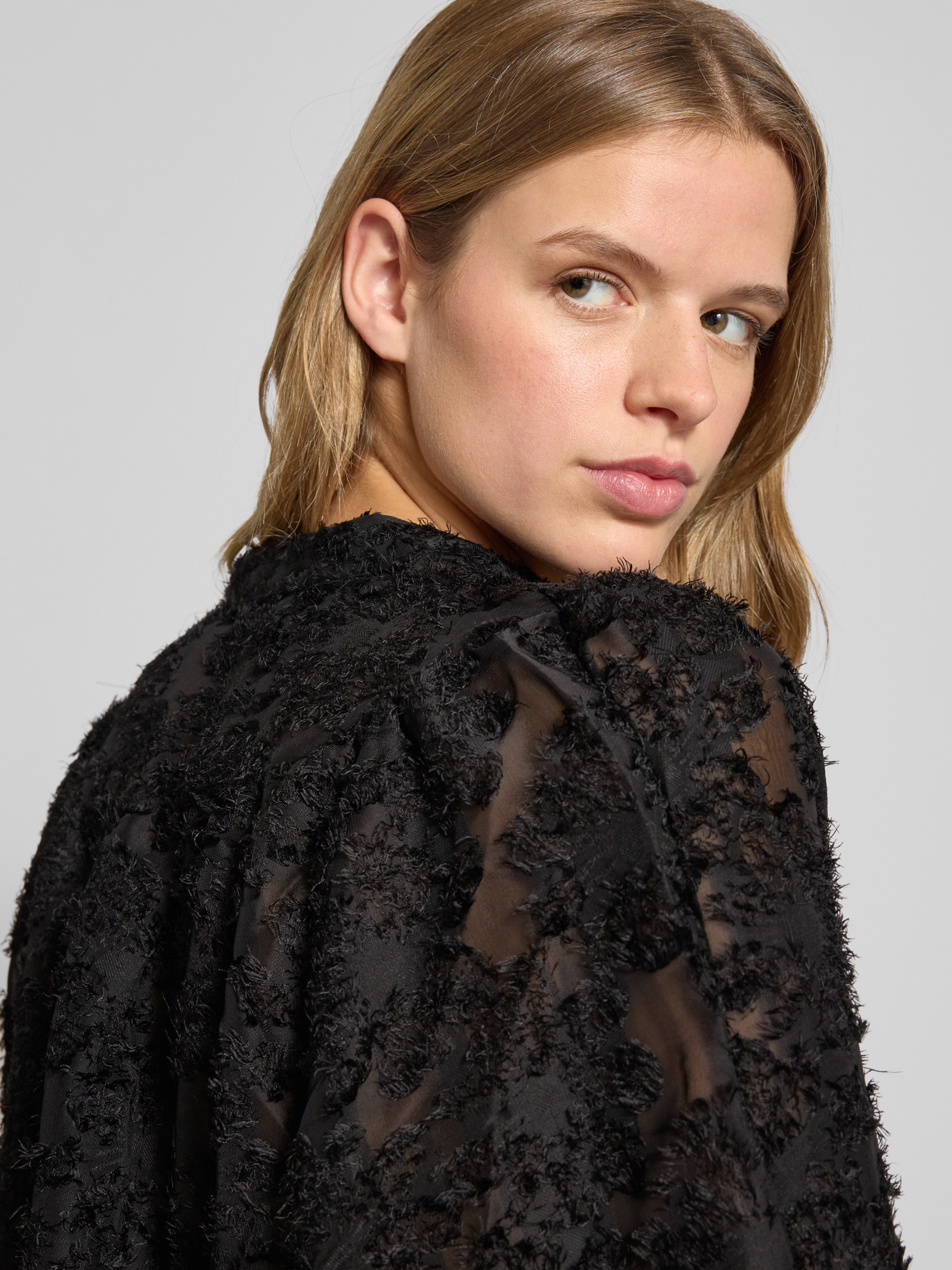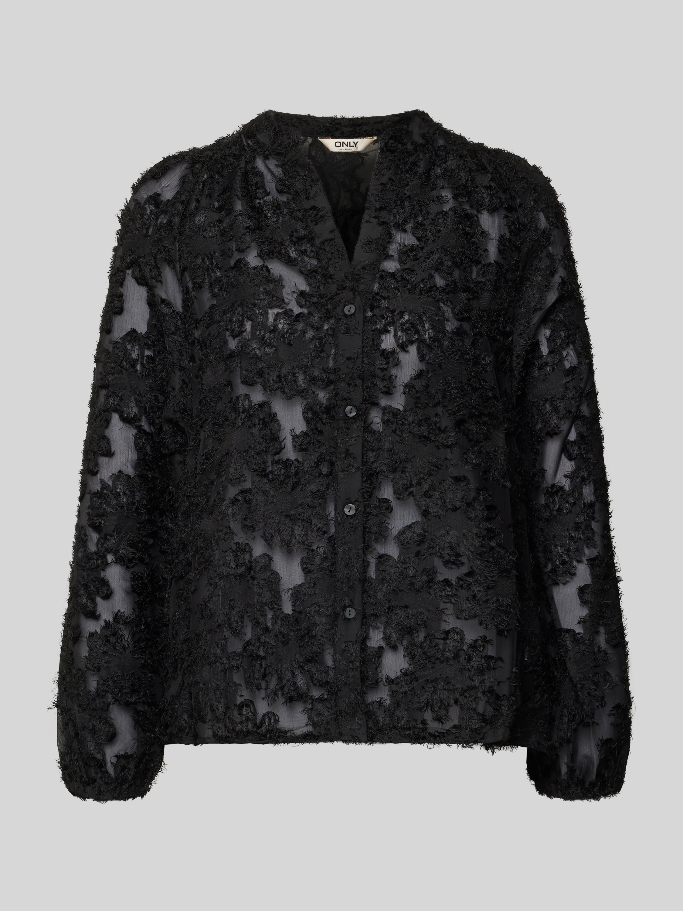 Regular fit blouse met lange mouwen en V-hals, model 'KORSA' in zwart