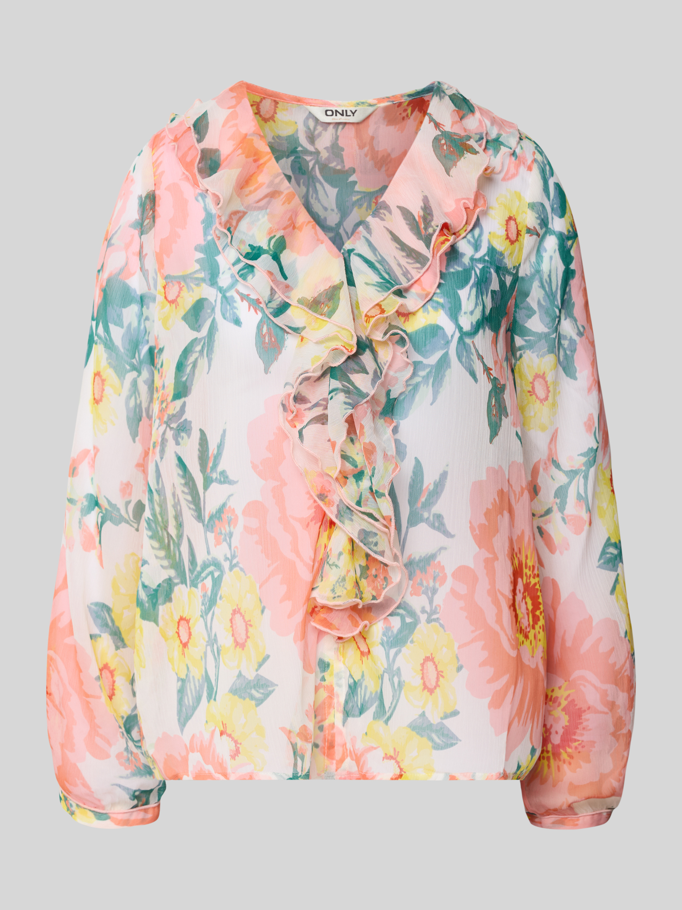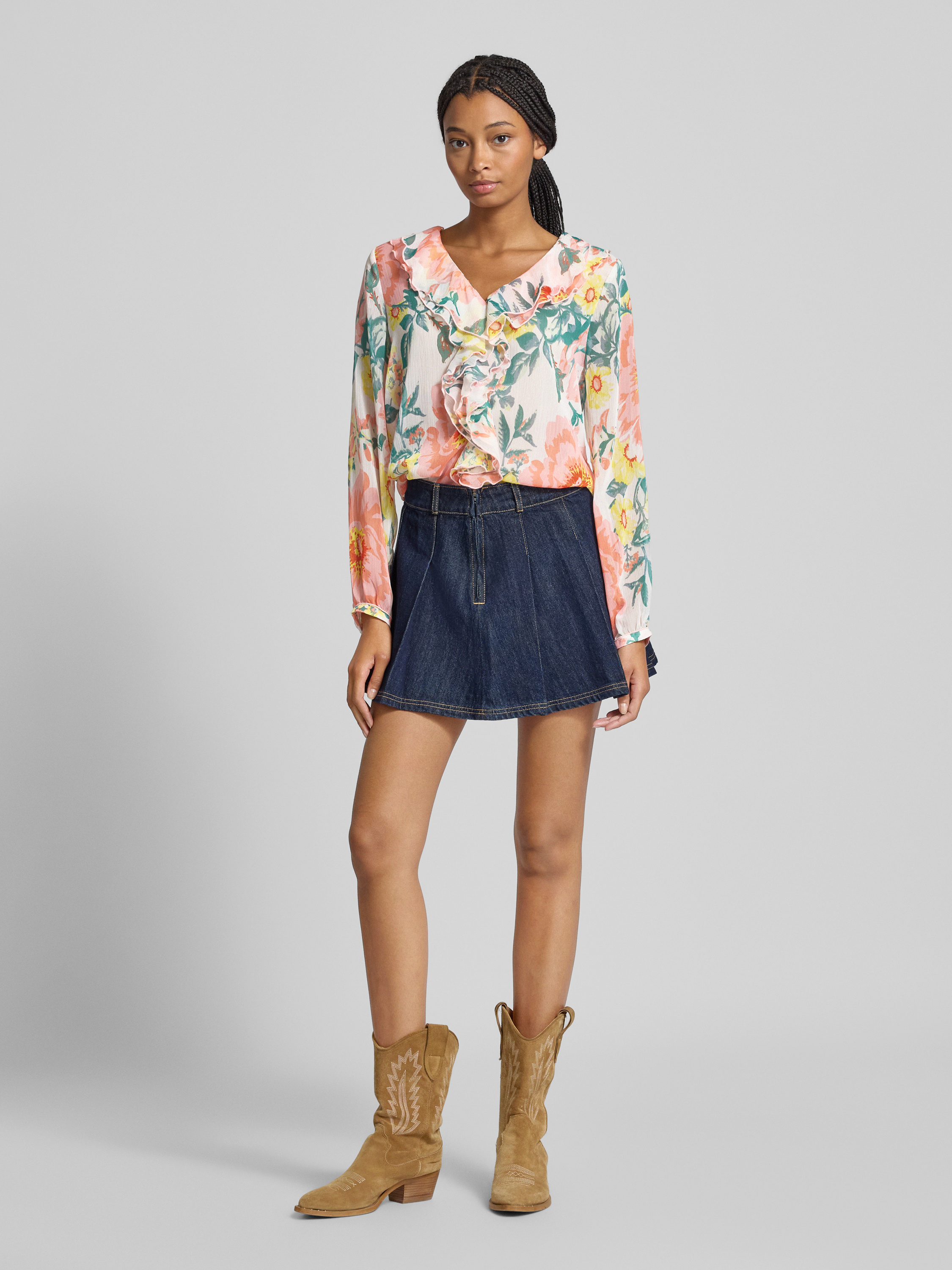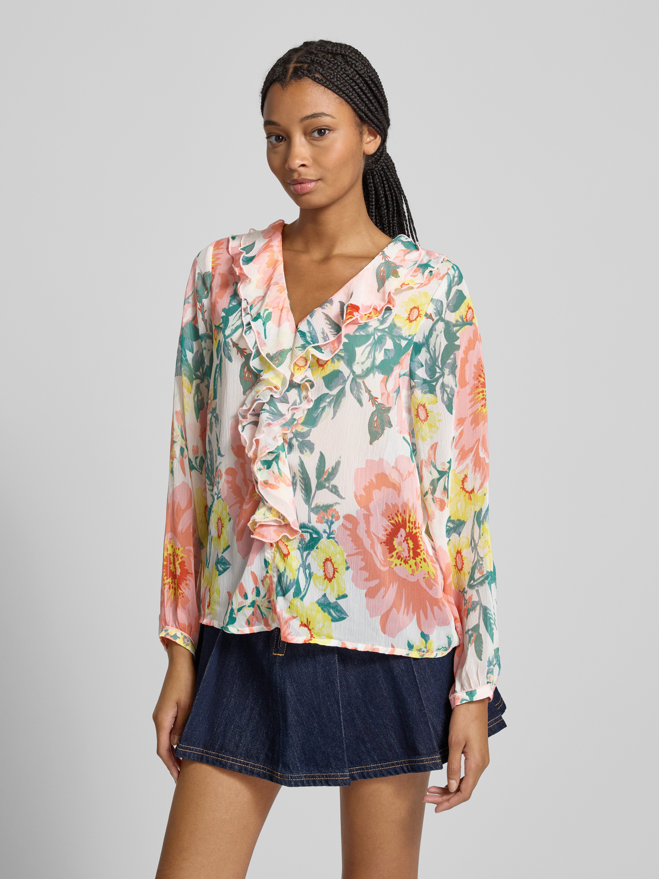 Regular fit blouse met volants, model 'MILLA' in offwhite
