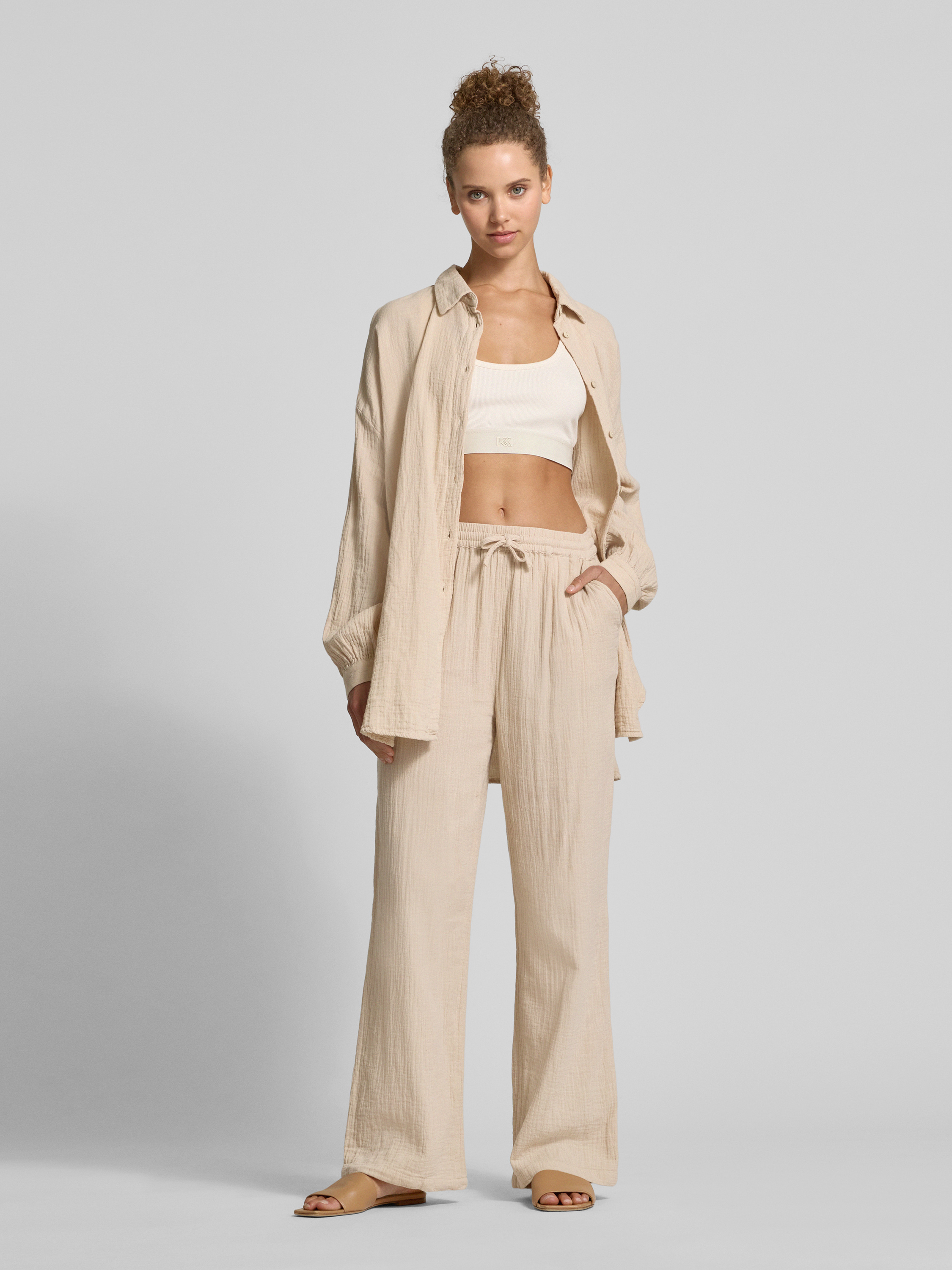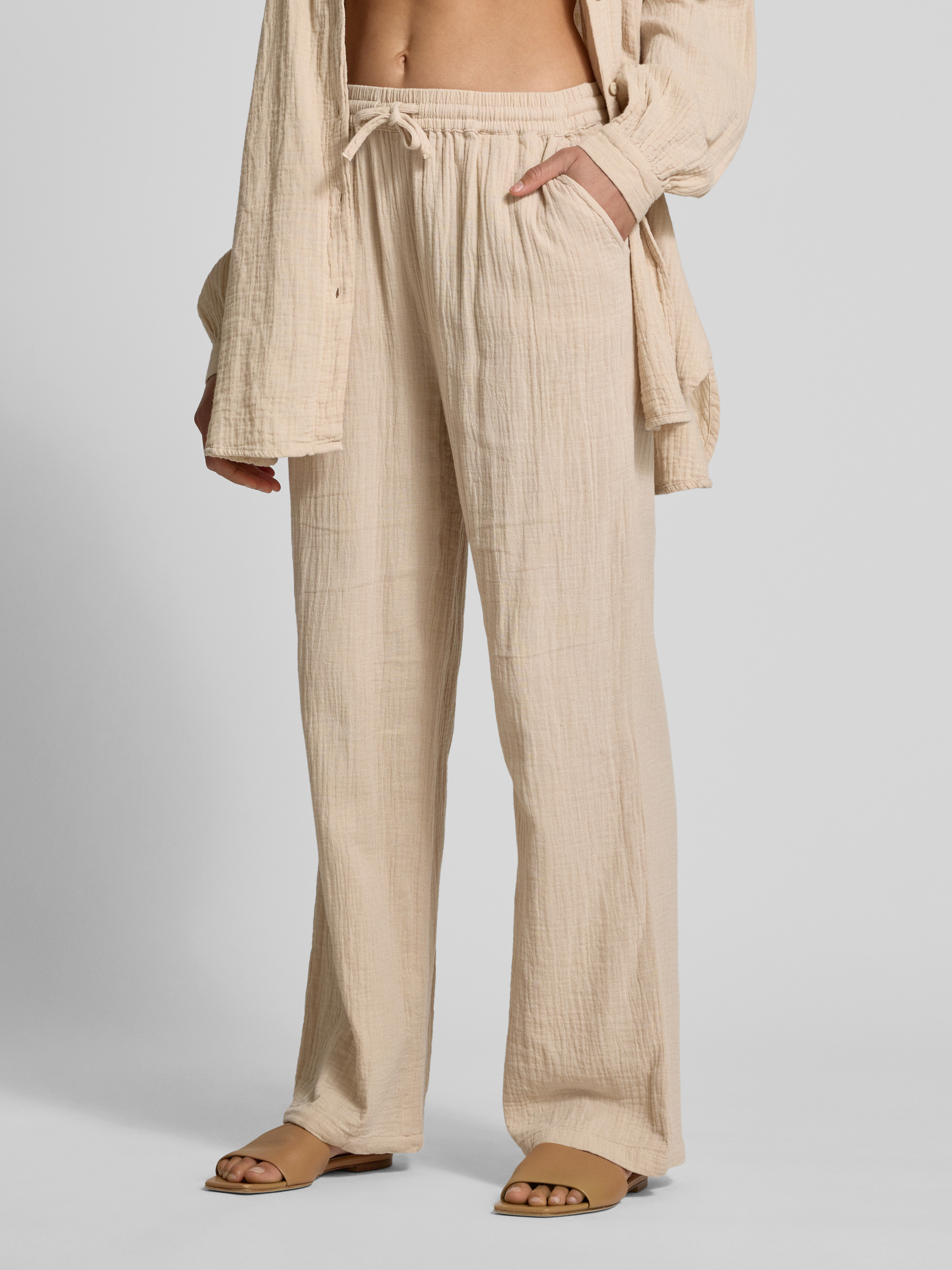 Regular fit broek met wijde pijpen, model 'THYRA' in zand