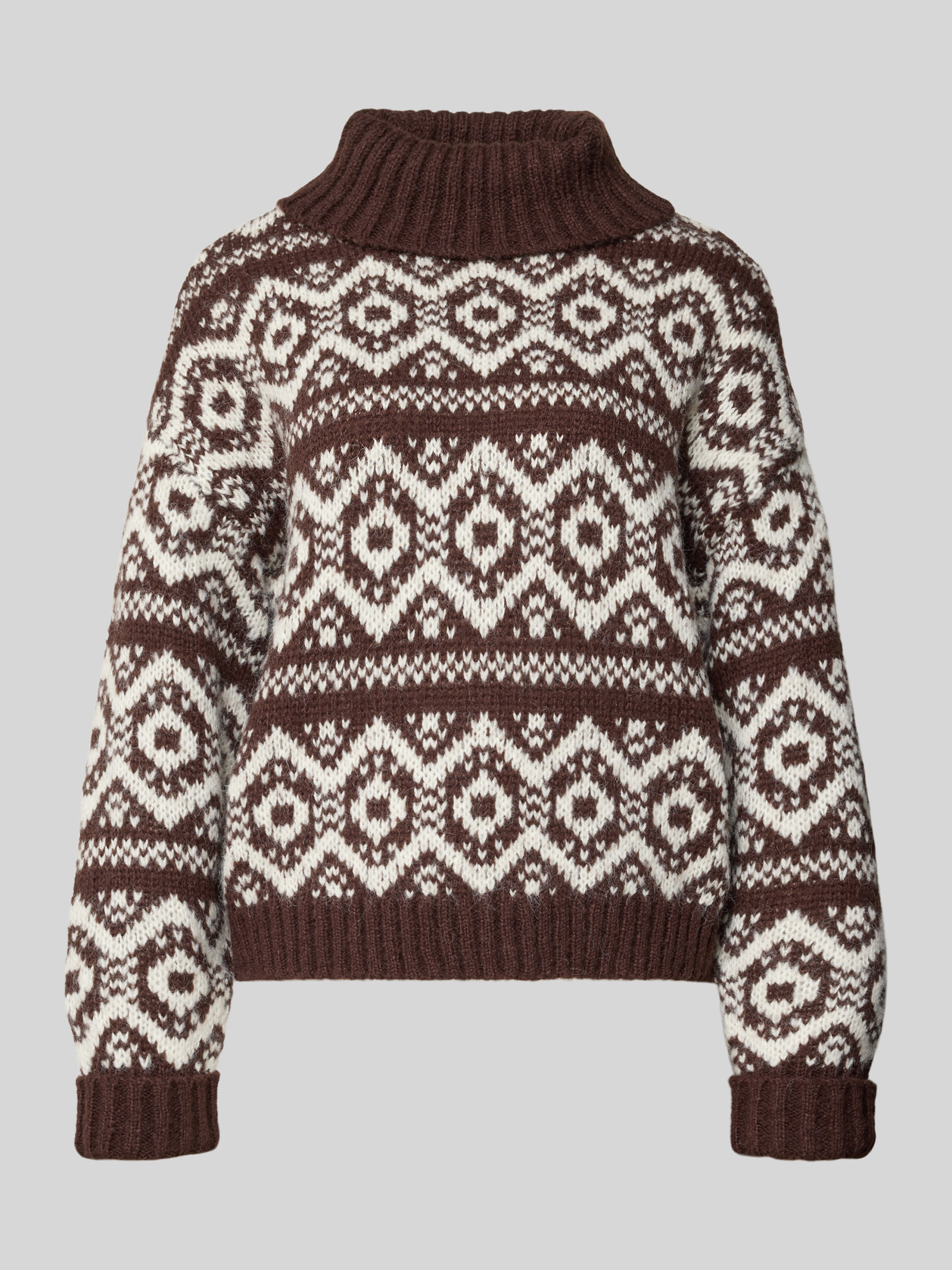 Regular fit coltrui met all-over motief, model 'CARIN' in chocoladebruin