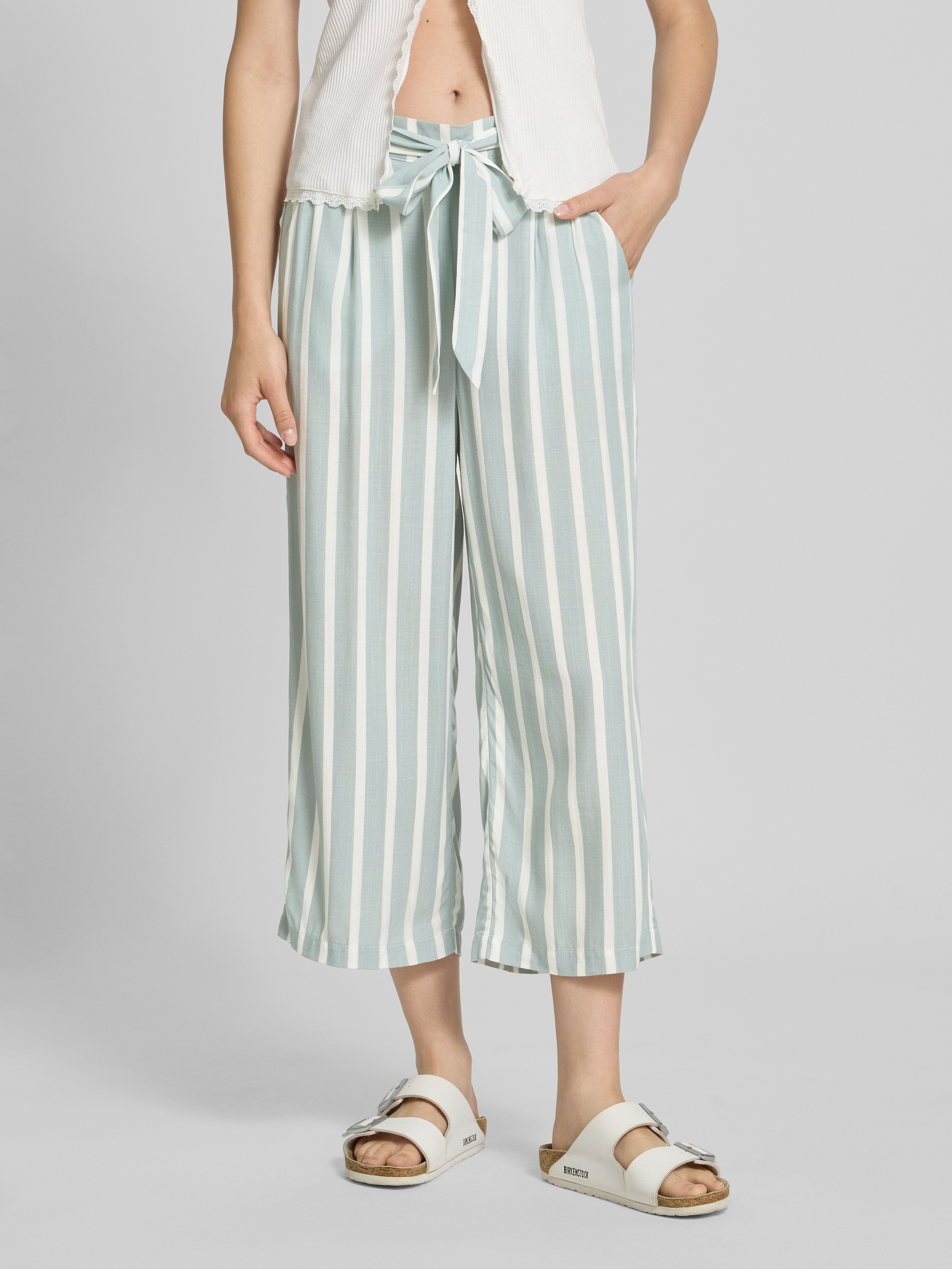 Regular fit culotte met strikceintuur, model 'PRIME' in rietgroen