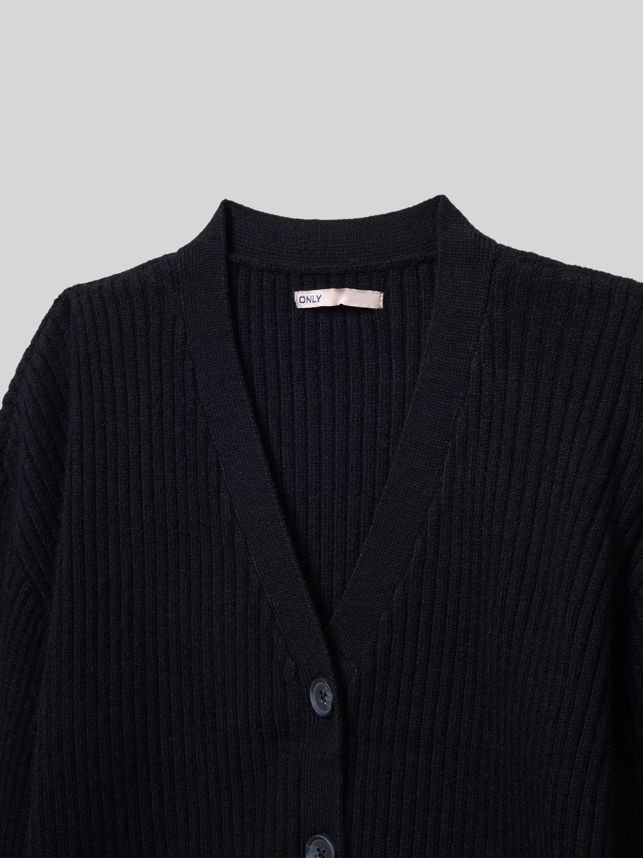 Regular fit gebreid jack van viscosemix, model 'MANDY' in zwart