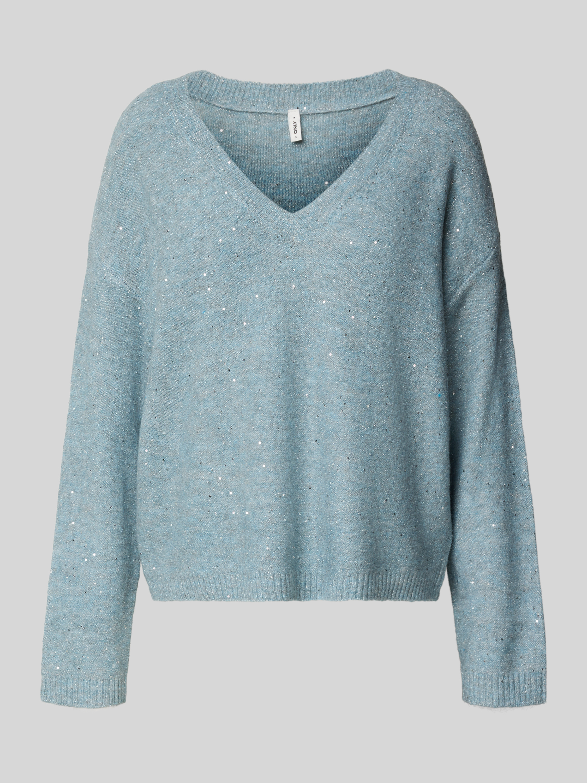 Regular fit gebreide pullover met pailletten, model 'ARIZONA' in lichtblauw