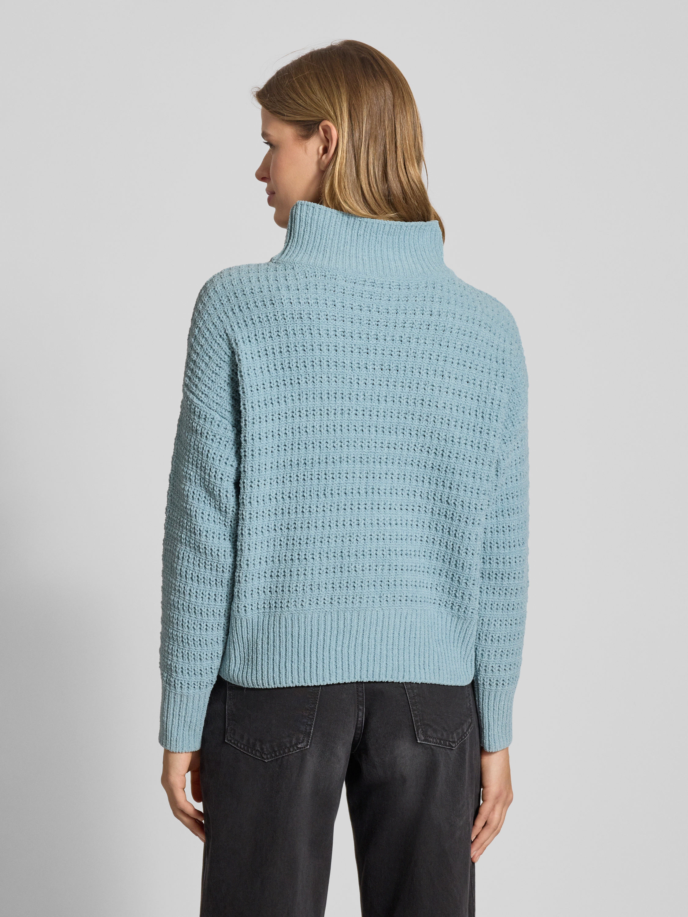 Regular fit gebreide pullover met ronde hals en kraag, model 'GLOBE' in oceaanblauw