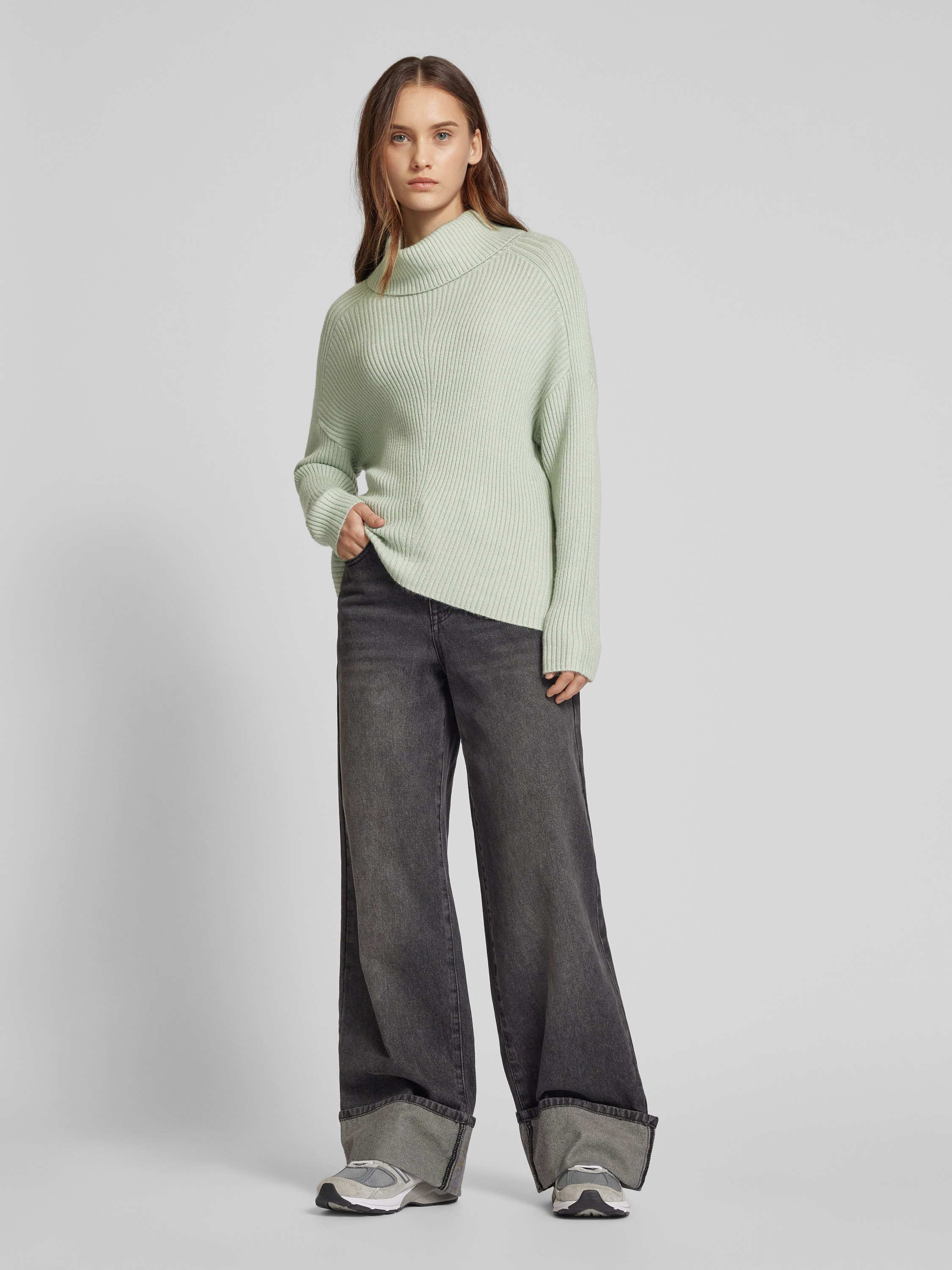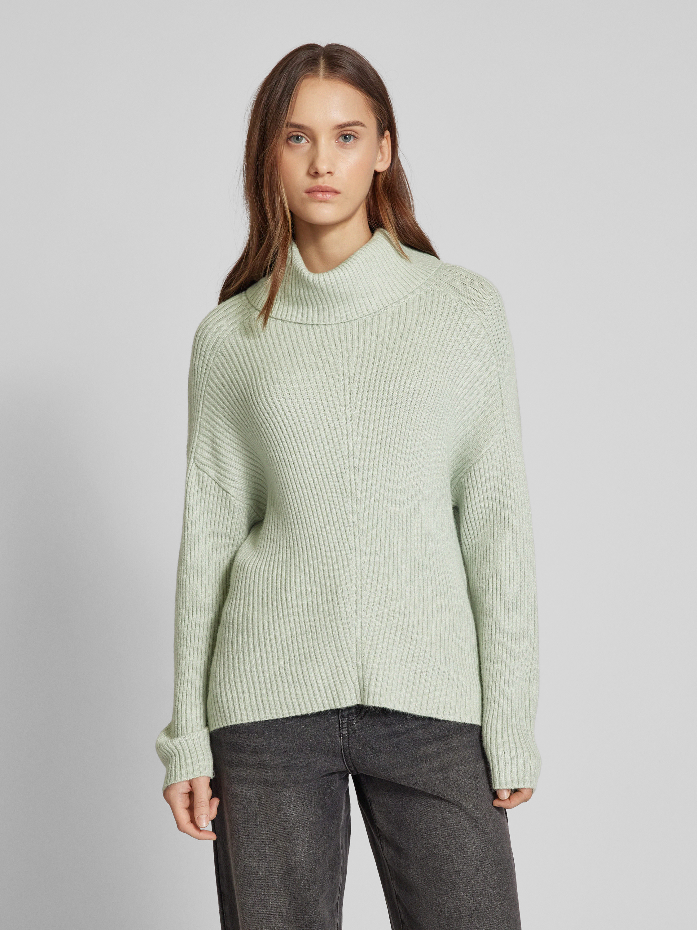 Regular fit gebreide pullover met strapless design, model 'KATIA' in mintgroen