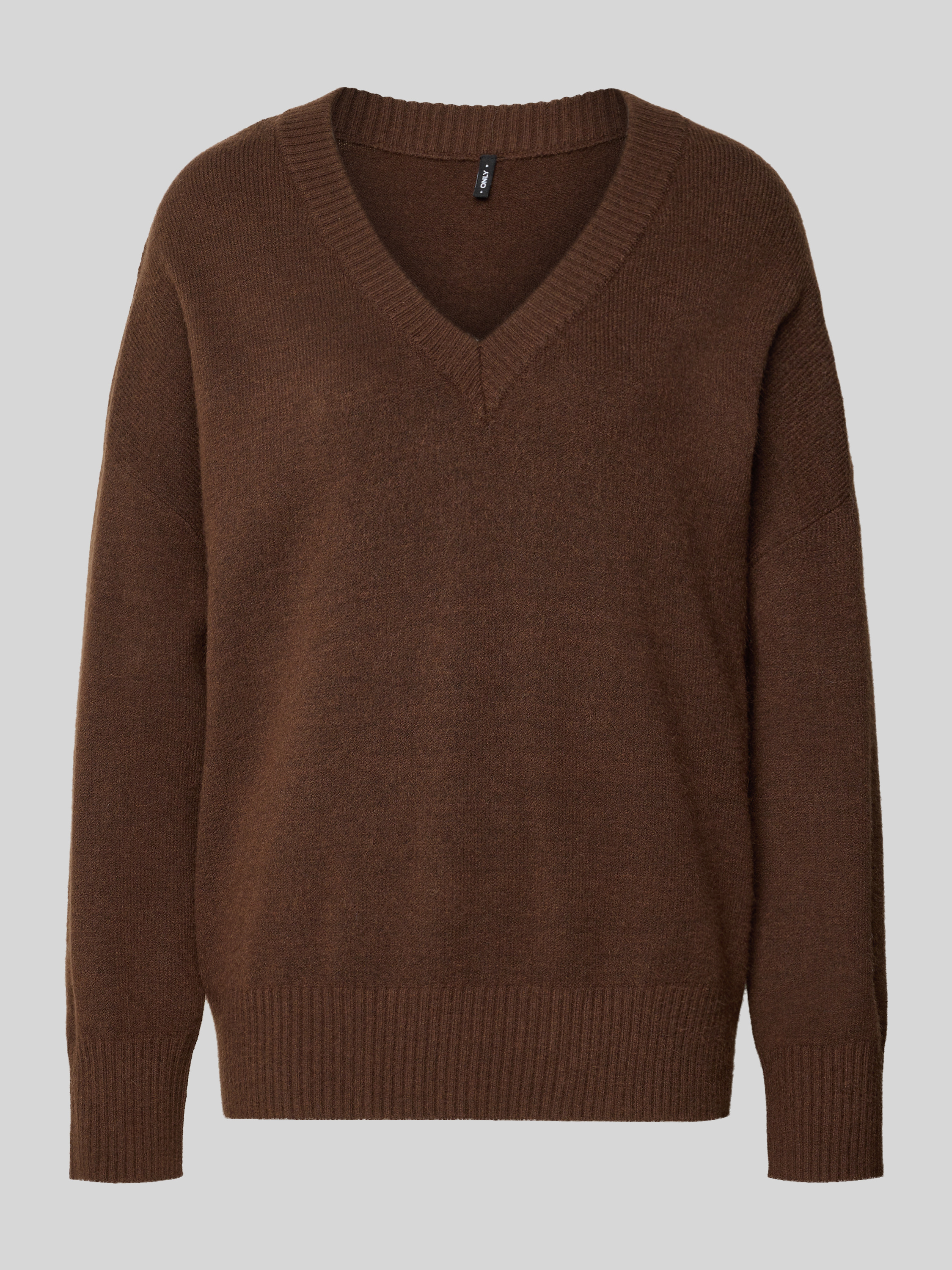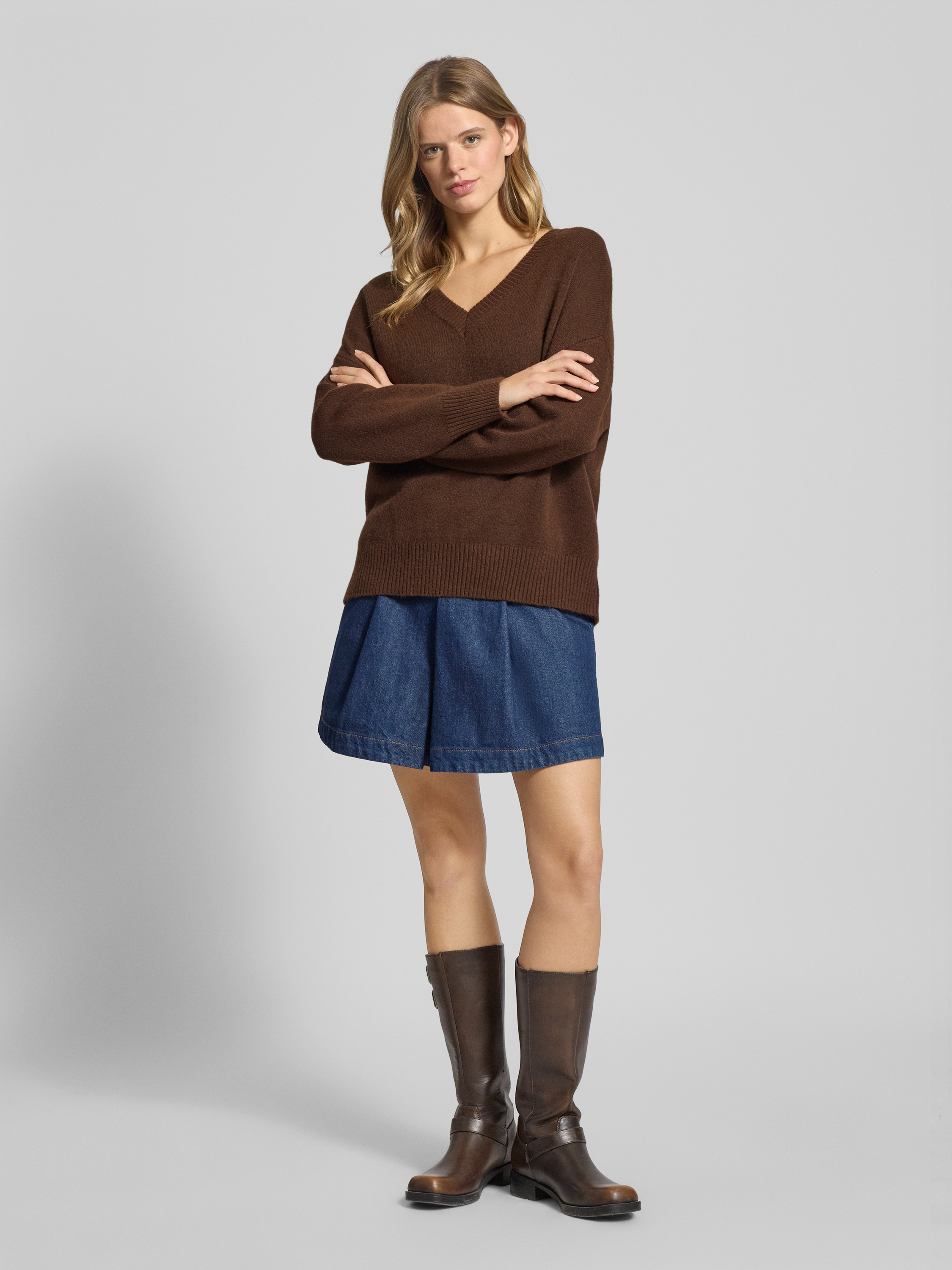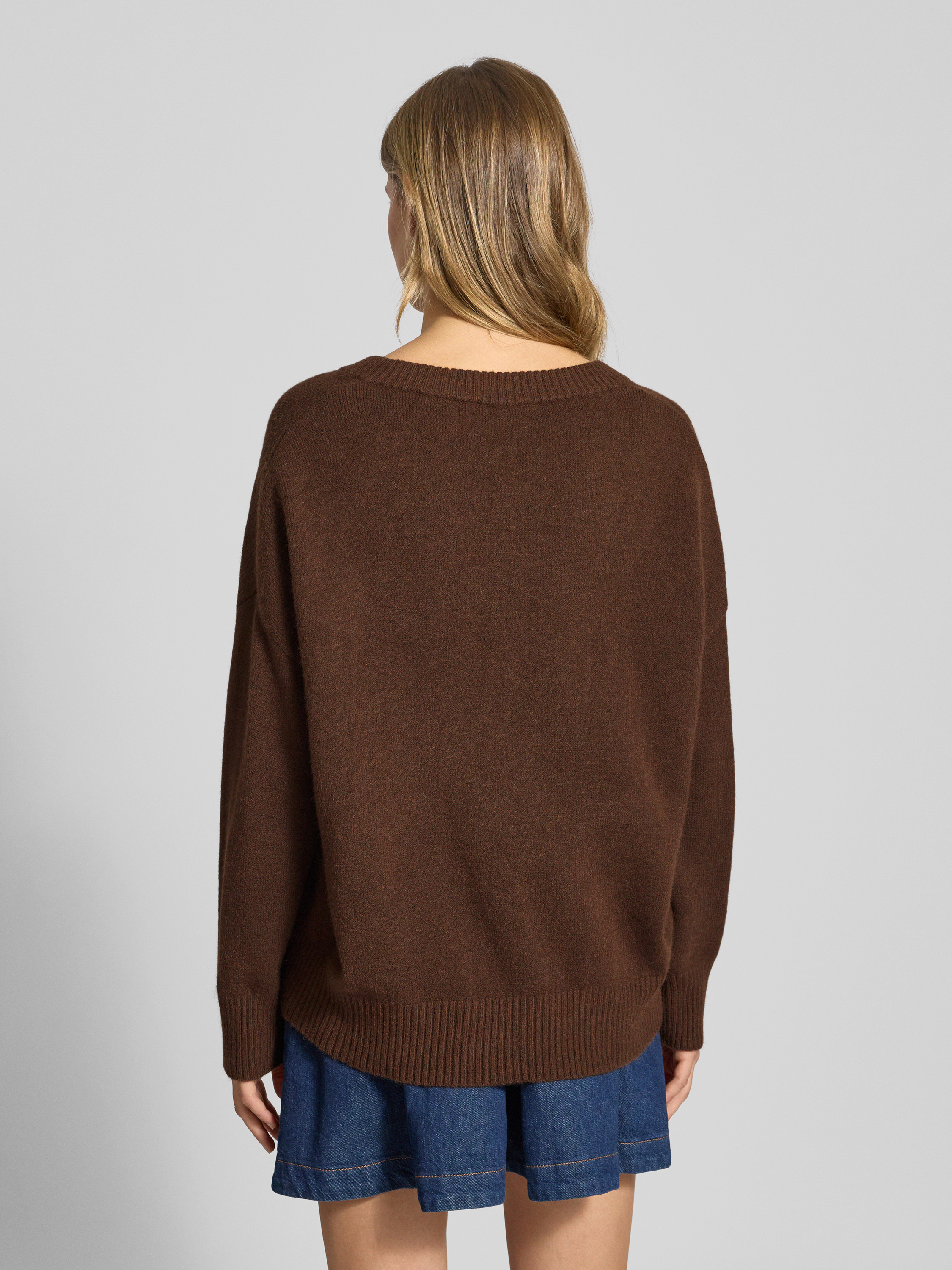 Regular fit gebreide pullover met wol, model 'MARI' in chocoladebruin