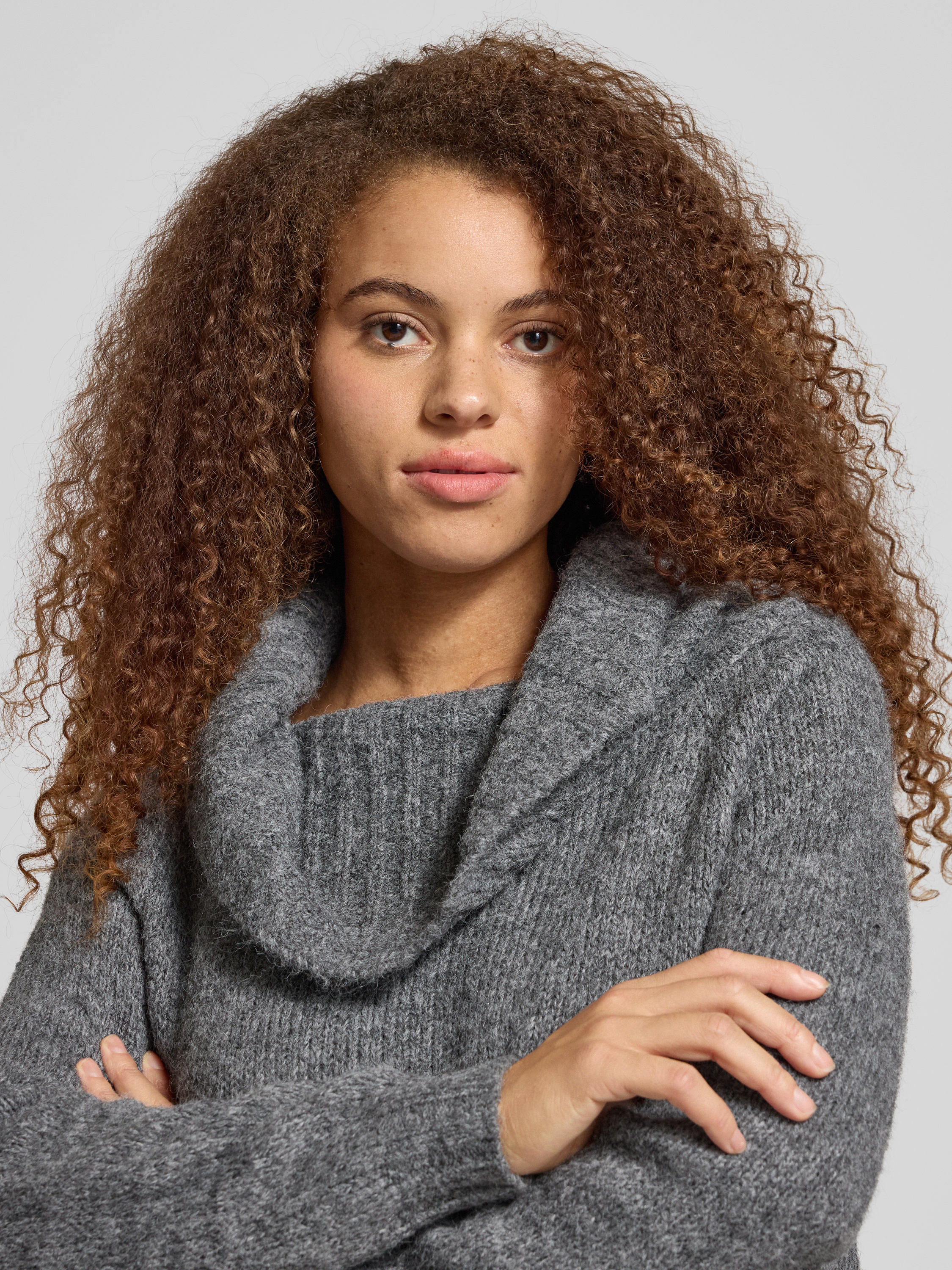 OnlyRegular fit gebreide pullover met wol, model 'SHINE' in middengrijs gemêleerd