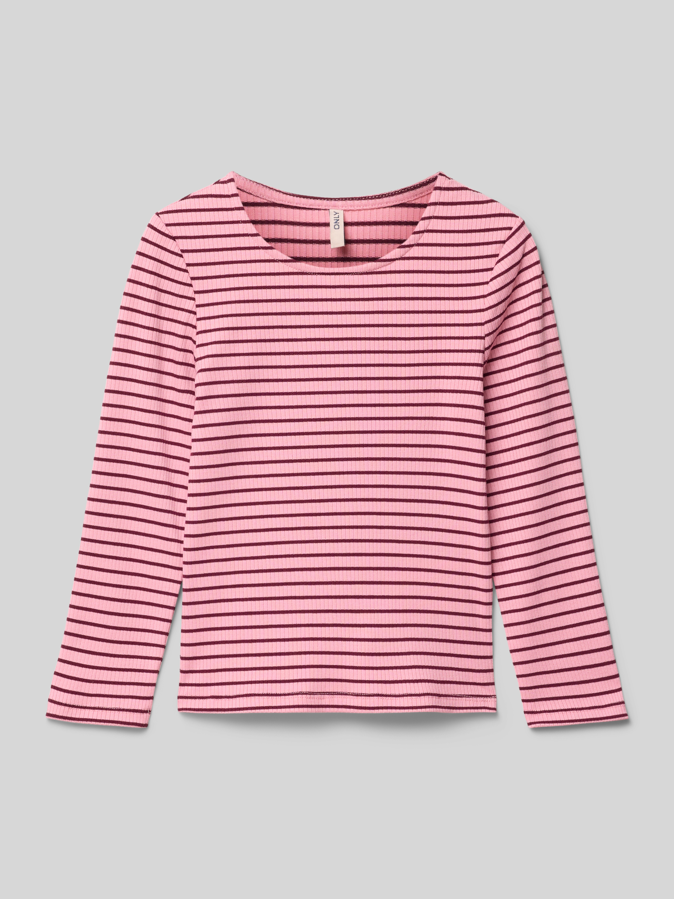 Regular fit shirt met lange mouwen in riblook, model 'MAUDE' in felroze