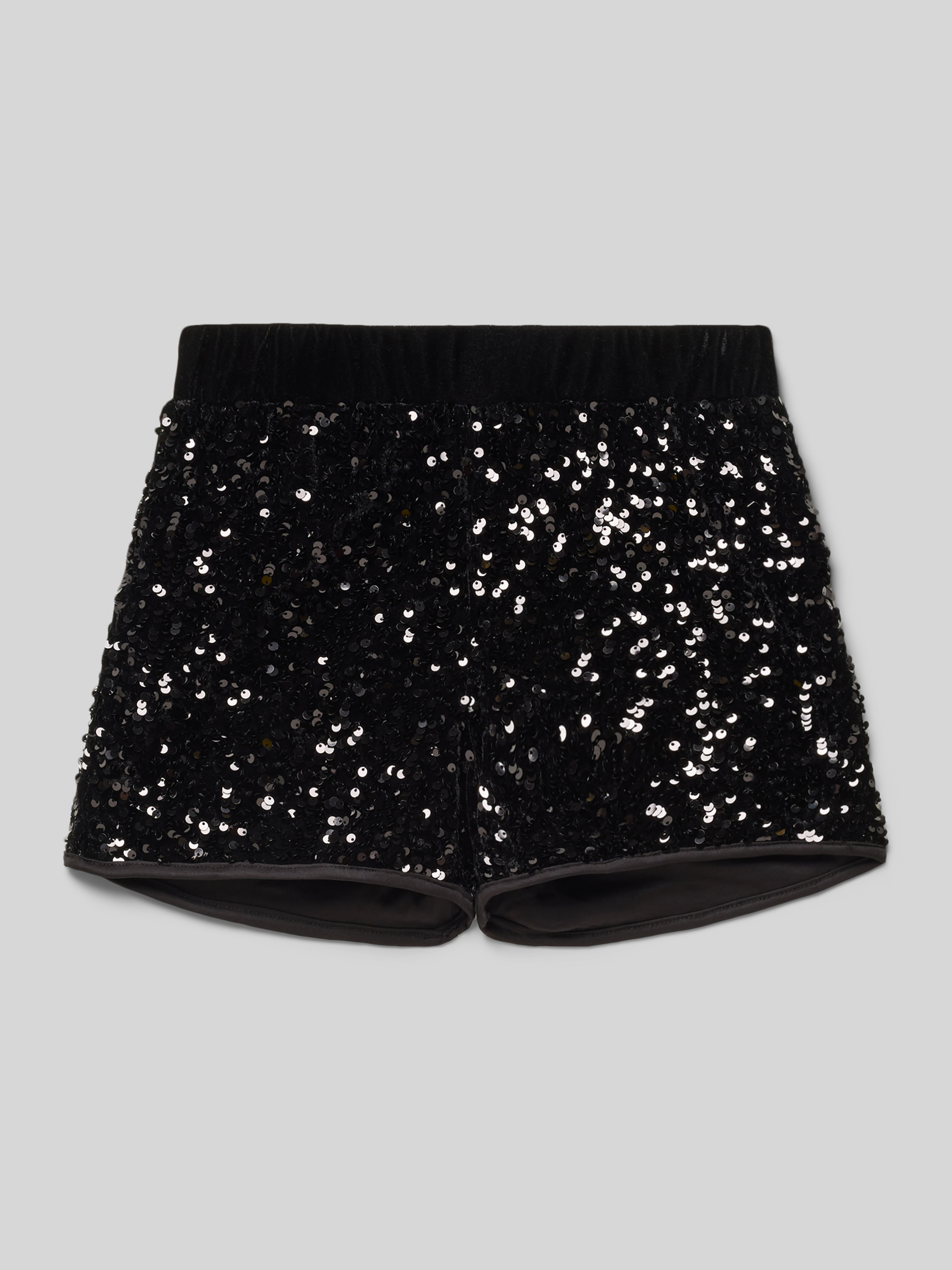 Regular fit short met pailletten, model 'CONFIDENCE' in zwart