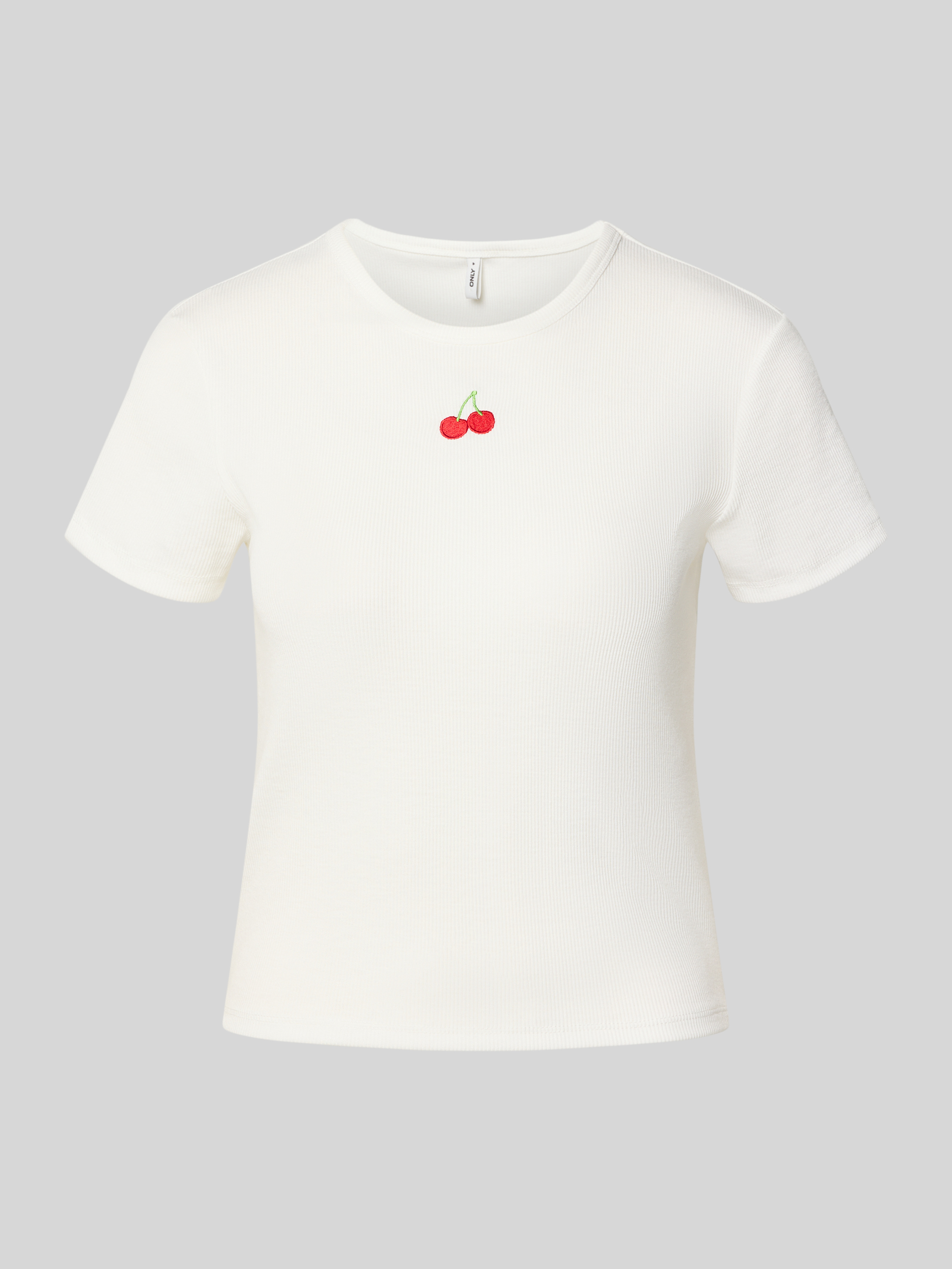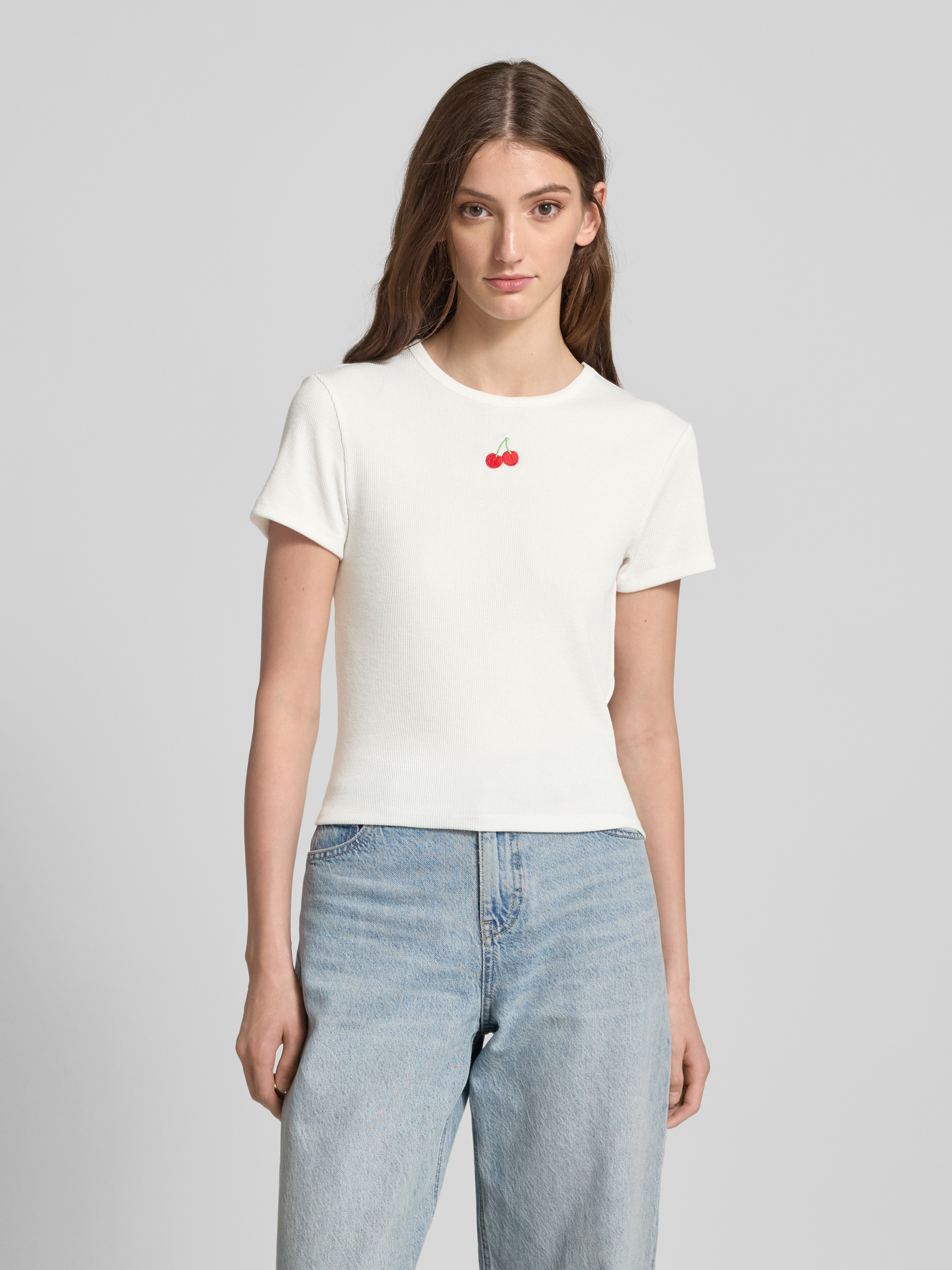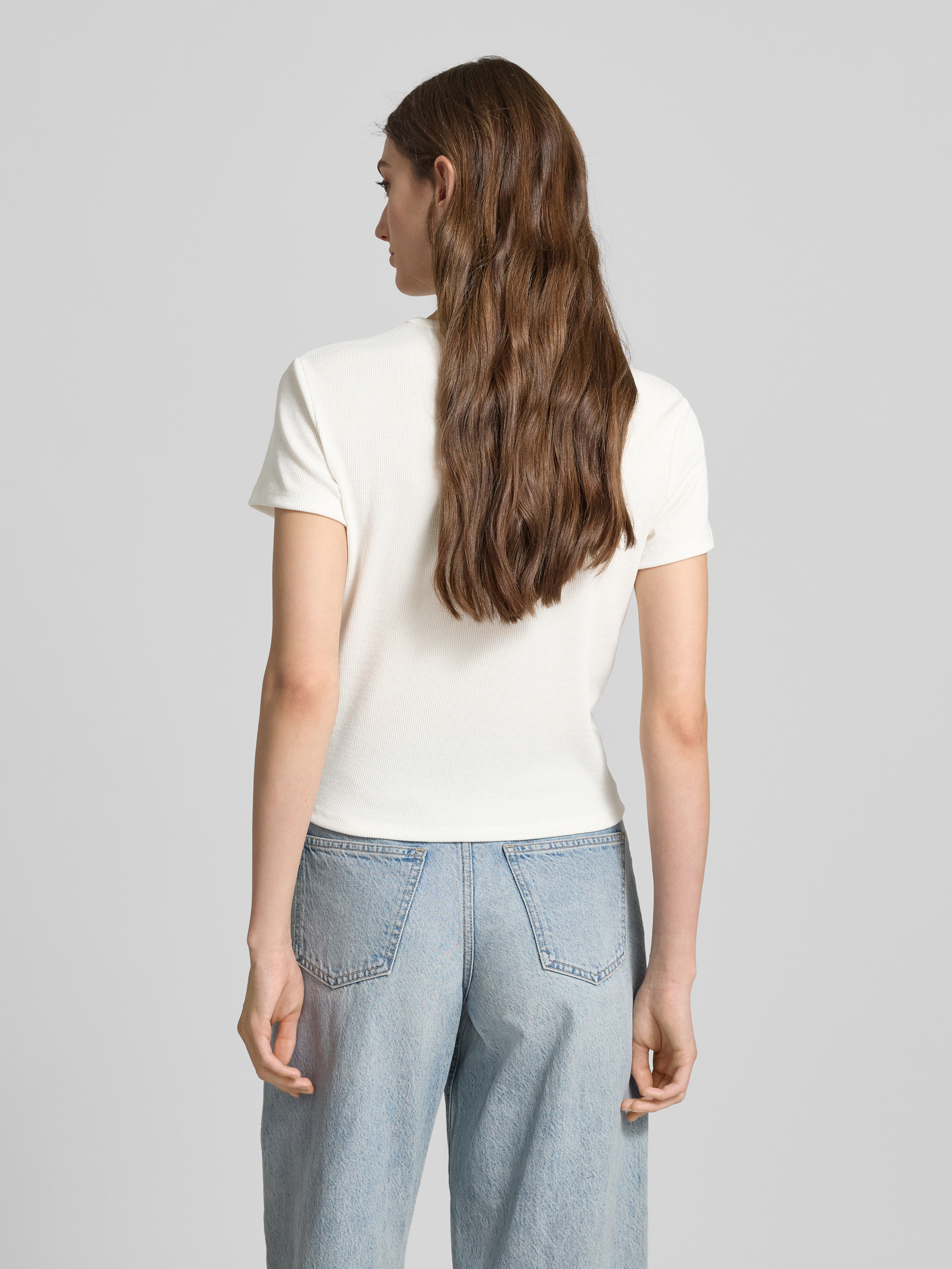 Regular fit T-shirt in riblook, model 'DANIELLA' in wit