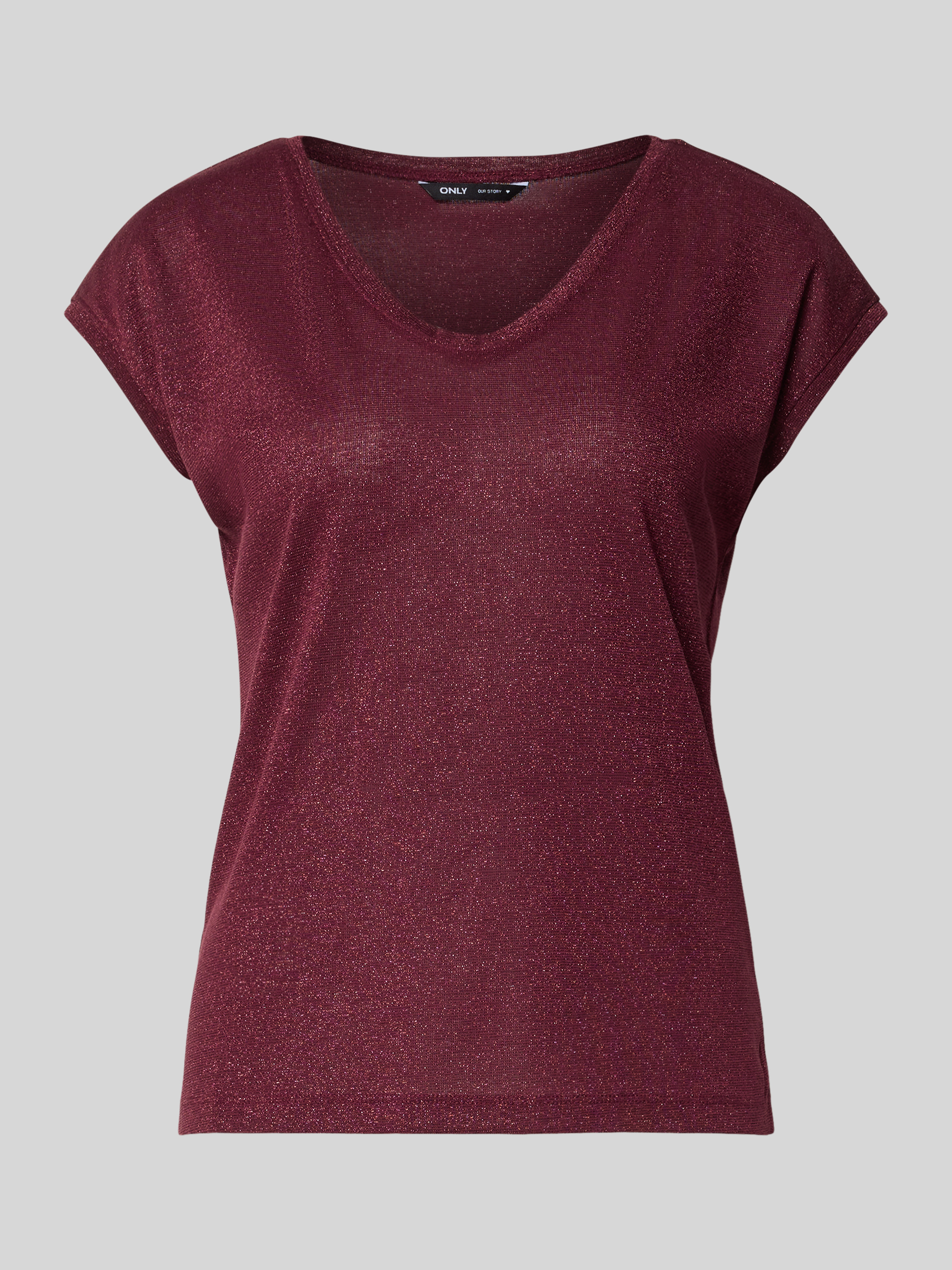 Regular fit T-shirt met viscose, model 'SILVERY' in donkerrood