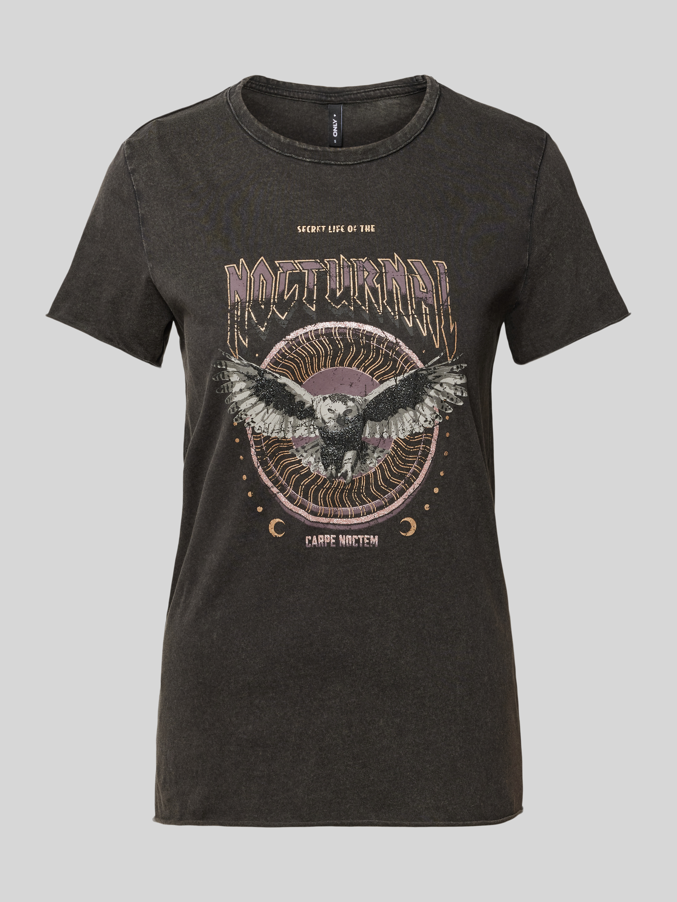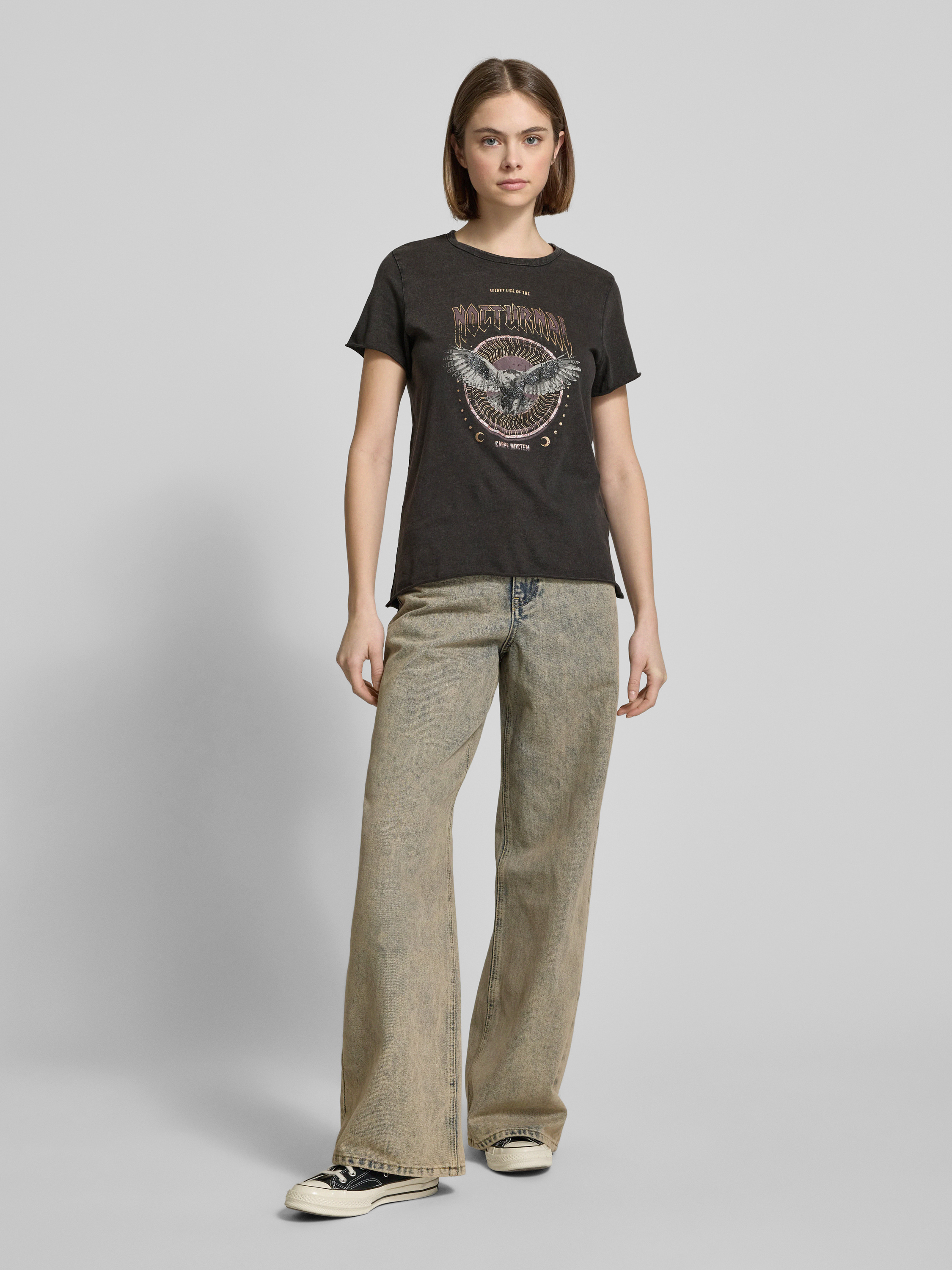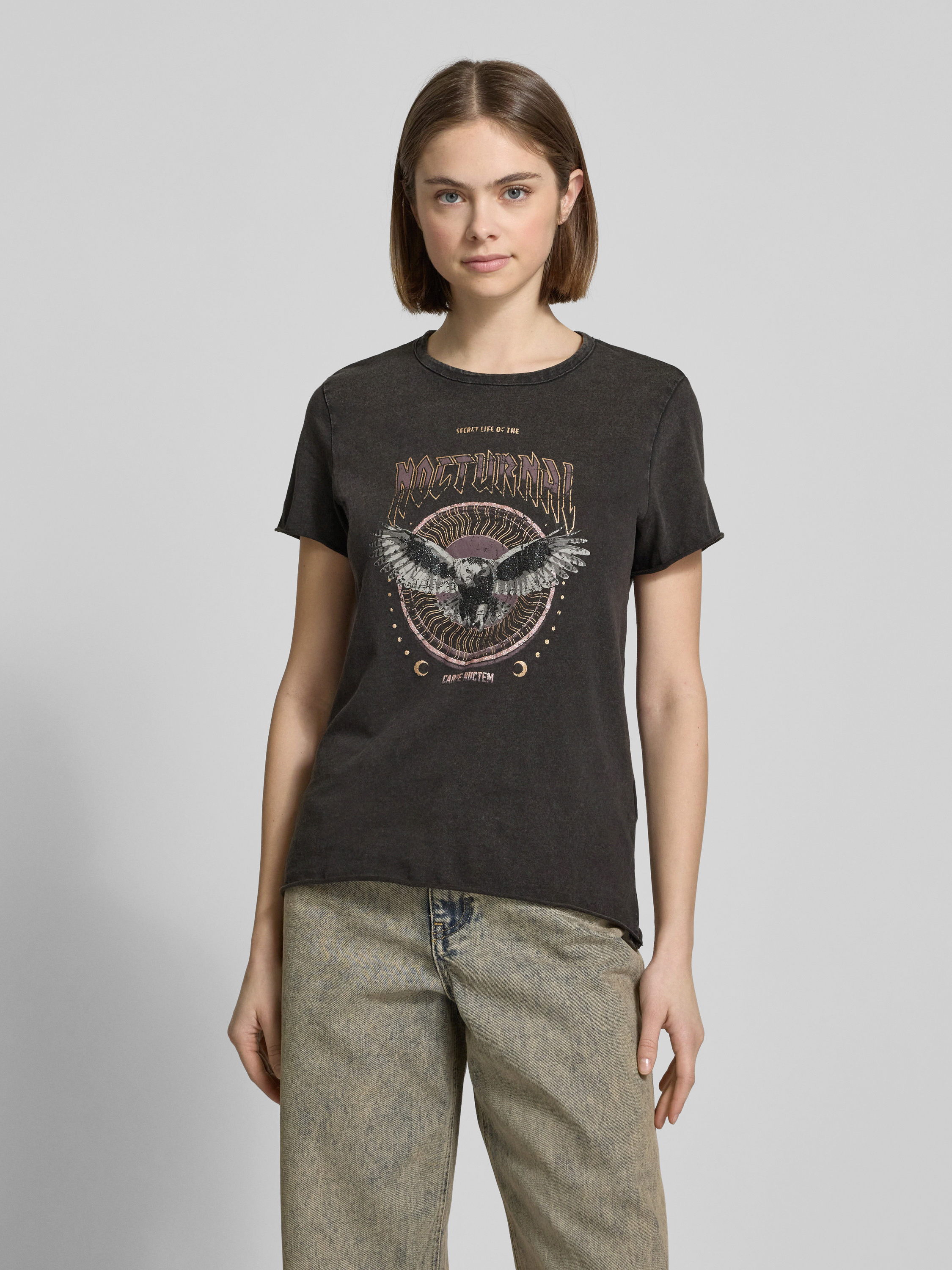 Regular fit T-shirt van zuivere katoen met motiefprint, model 'LUCY LIFE' in zwart
