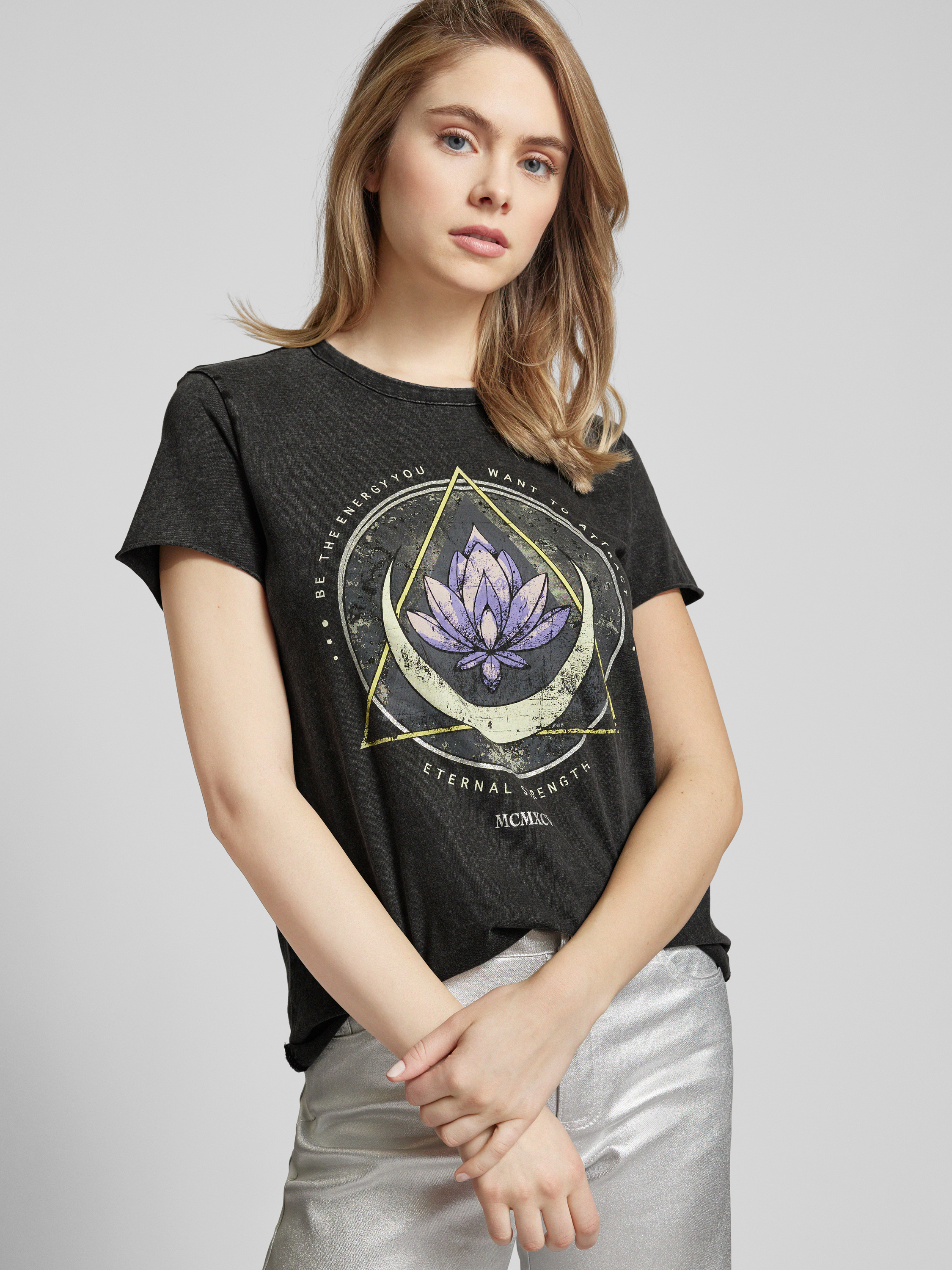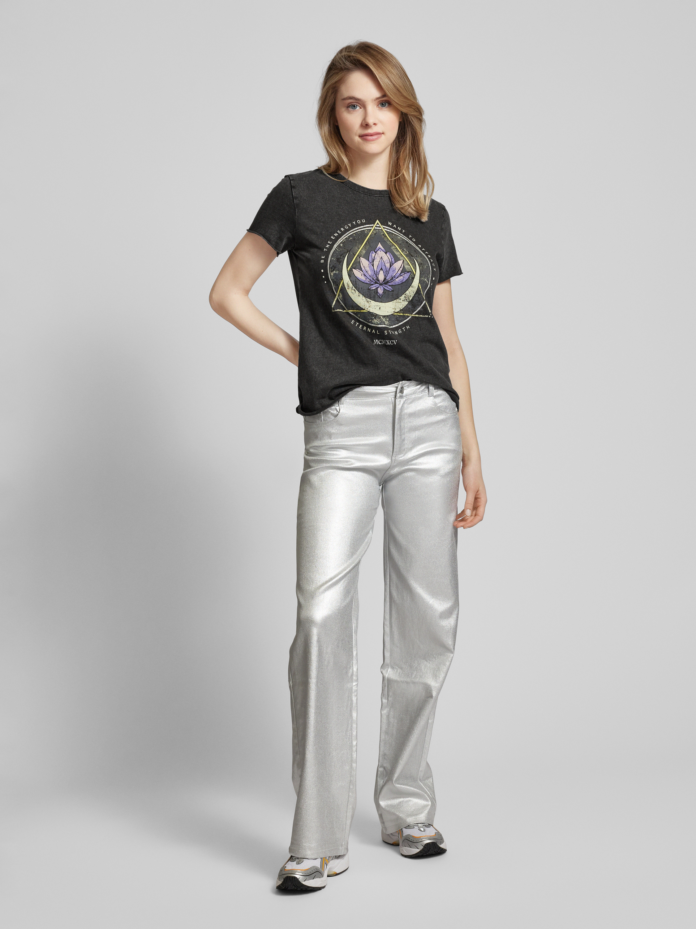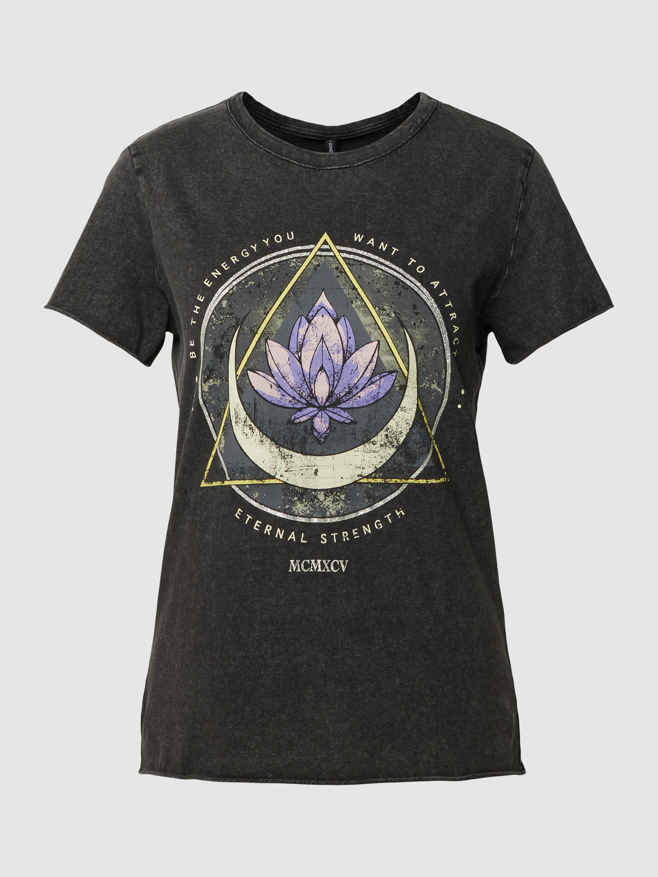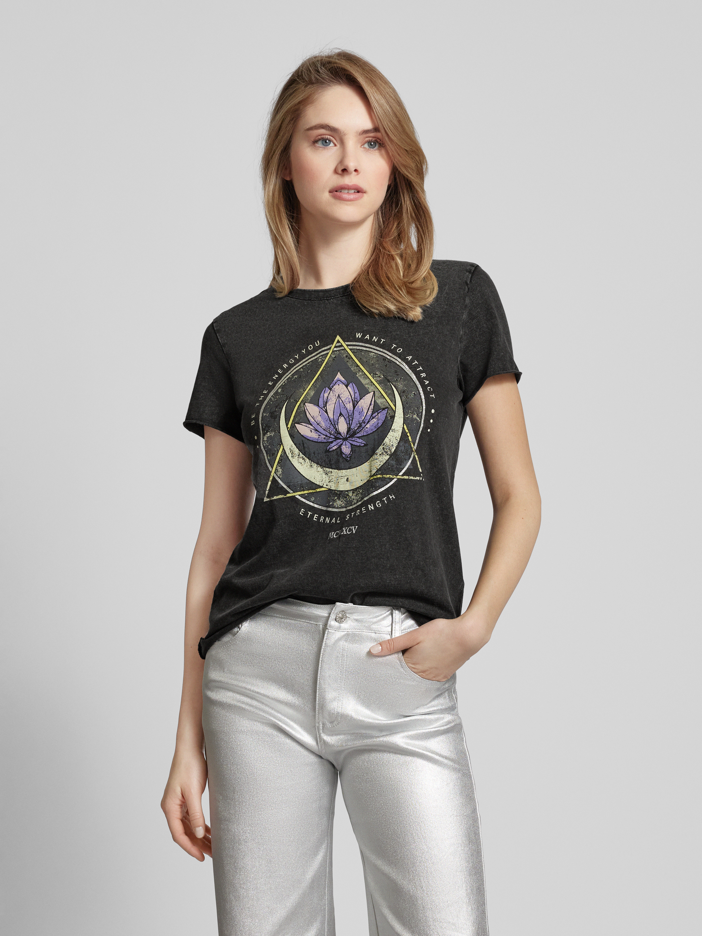 Regular fit T-shirt van zuivere katoen met motiefprint, model 'LUCY LIFE' in zwart