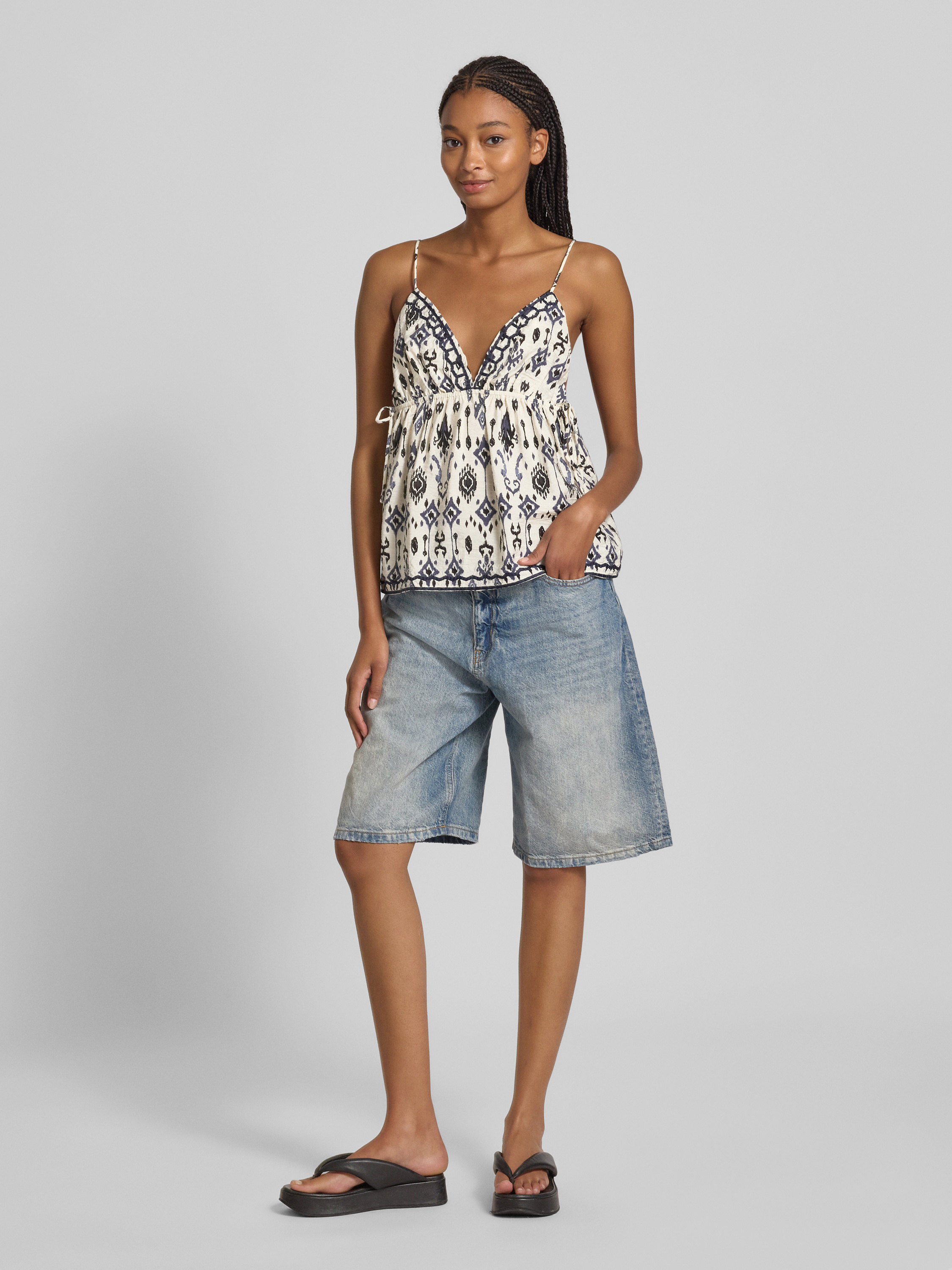 Regular fit top met bandjes van viscosemix, model 'ELANOR' in rookblauw