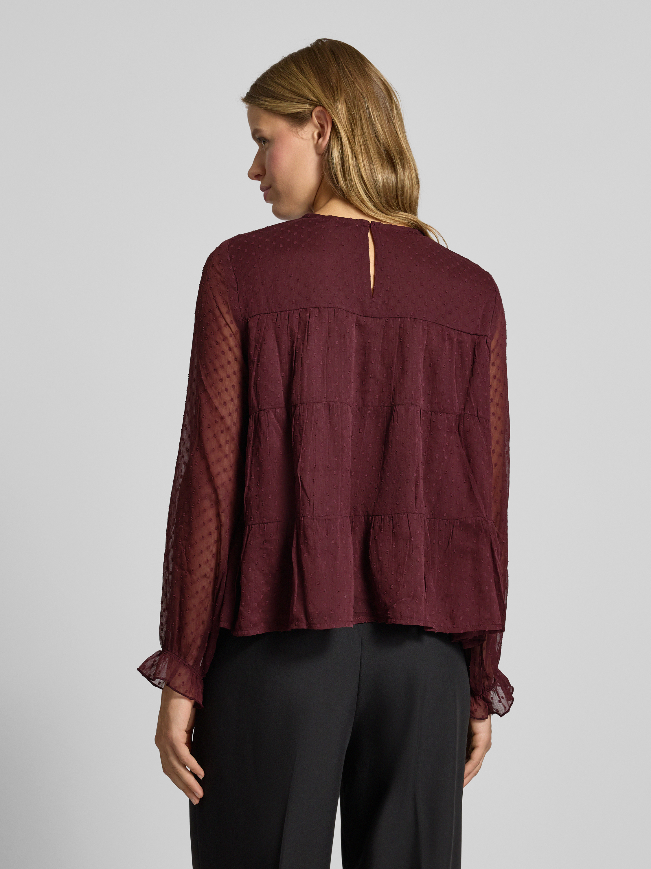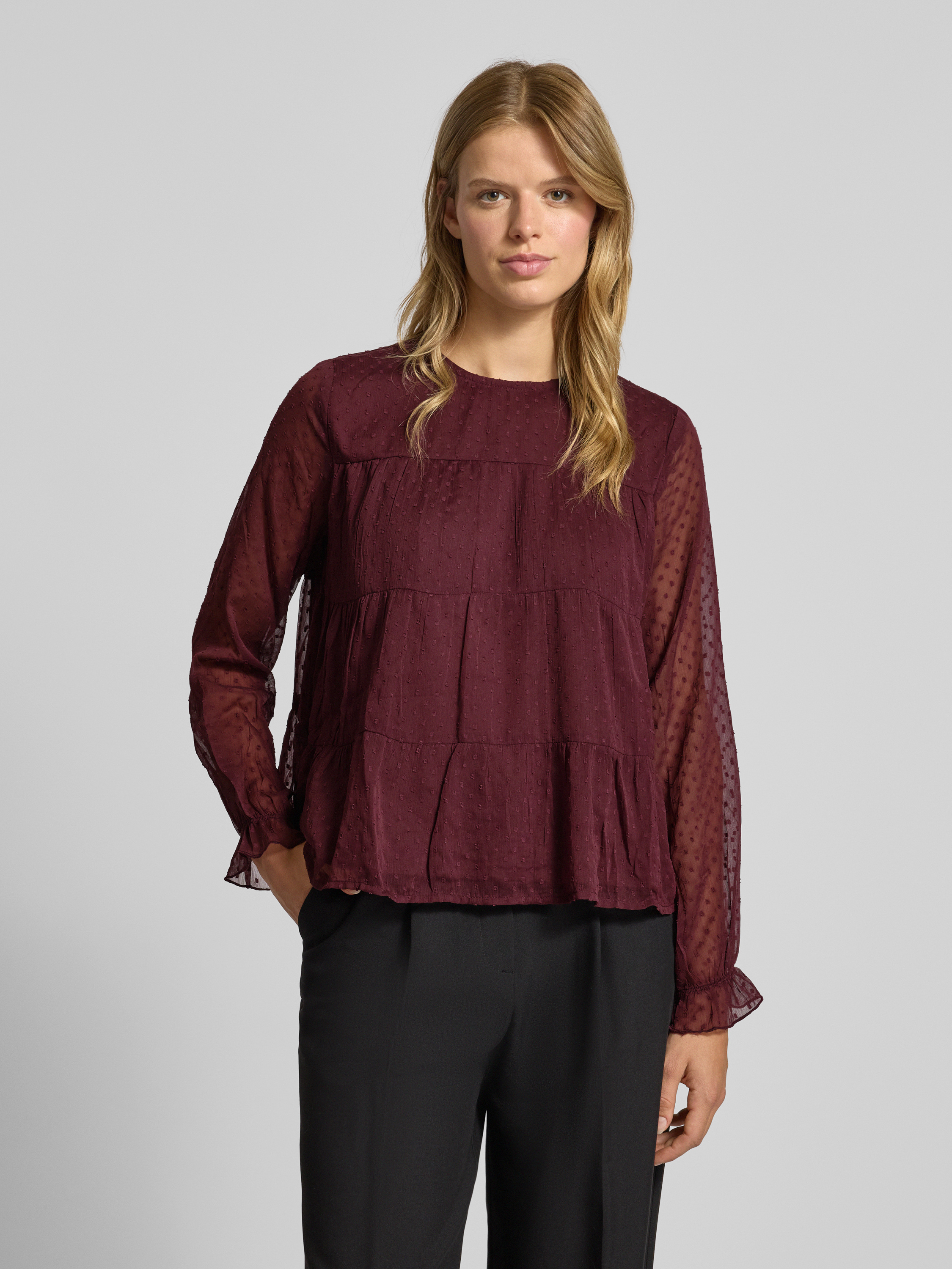 Relaxed fit blouse met lange mouwen en dobbystructuur, model 'ELIZA LIFE' in bordeaux