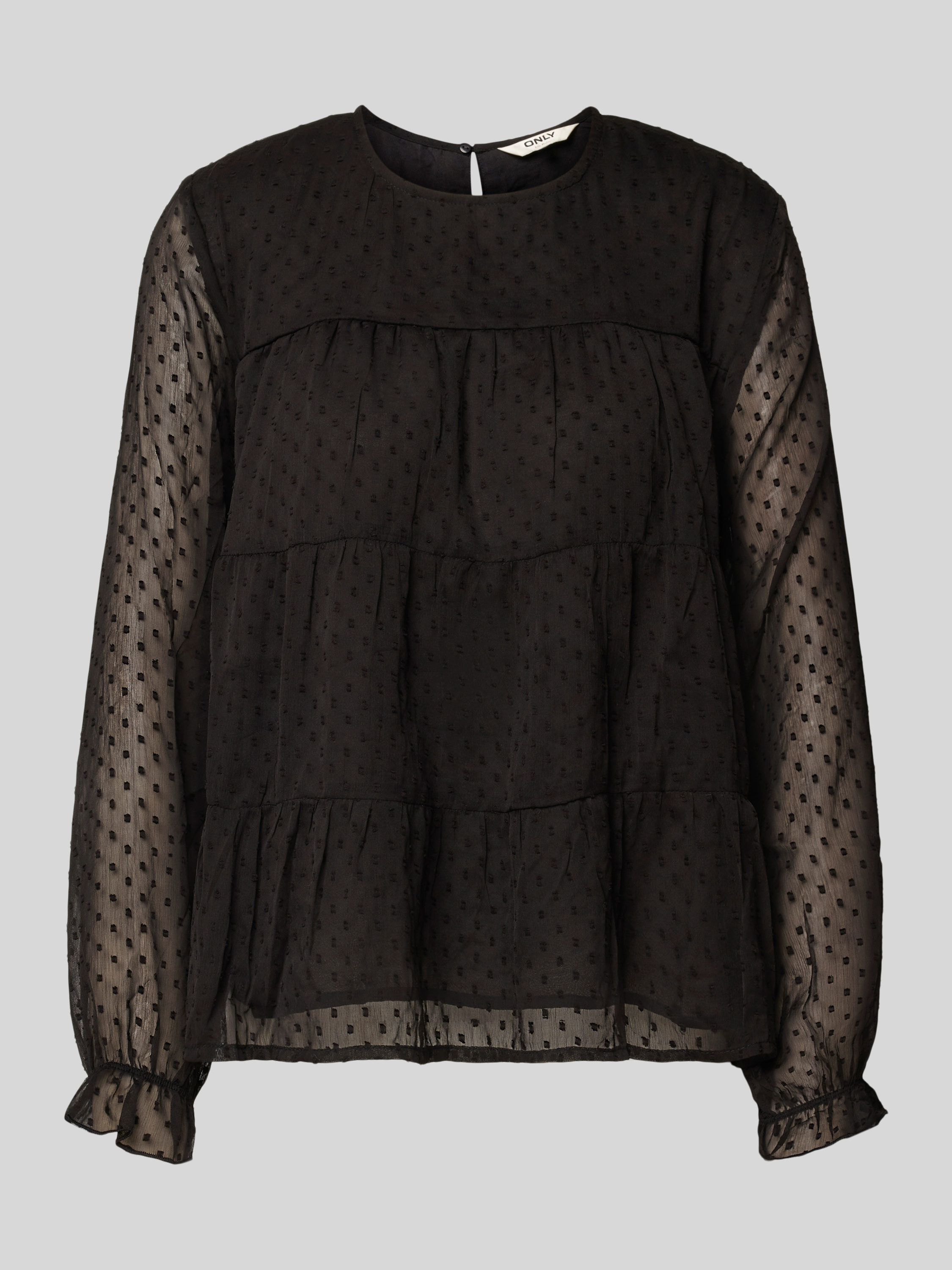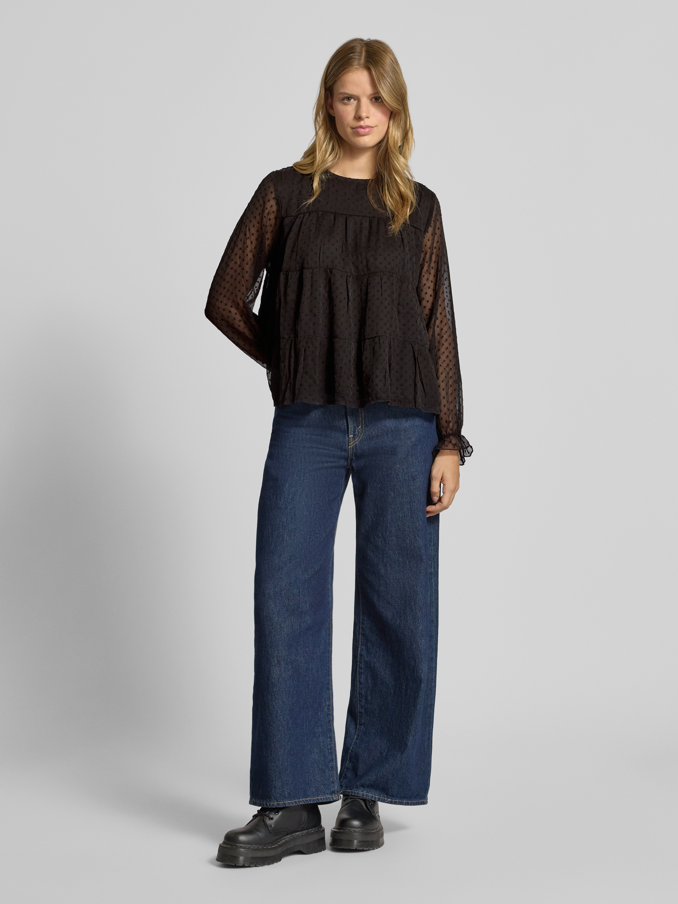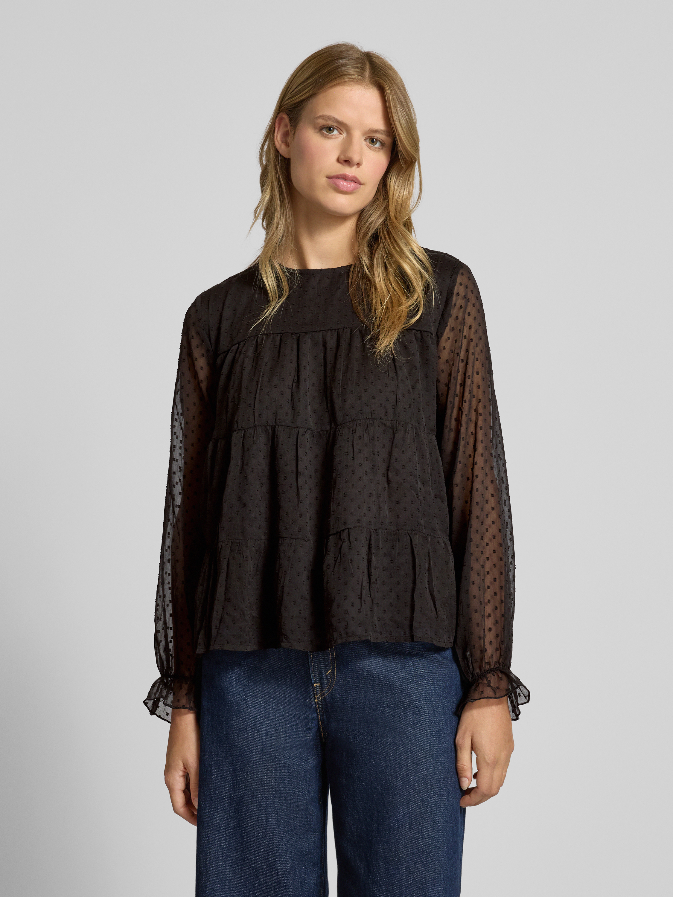 Relaxed fit blouse met lange mouwen en dobbystructuur, model 'ELIZA LIFE' in zwart