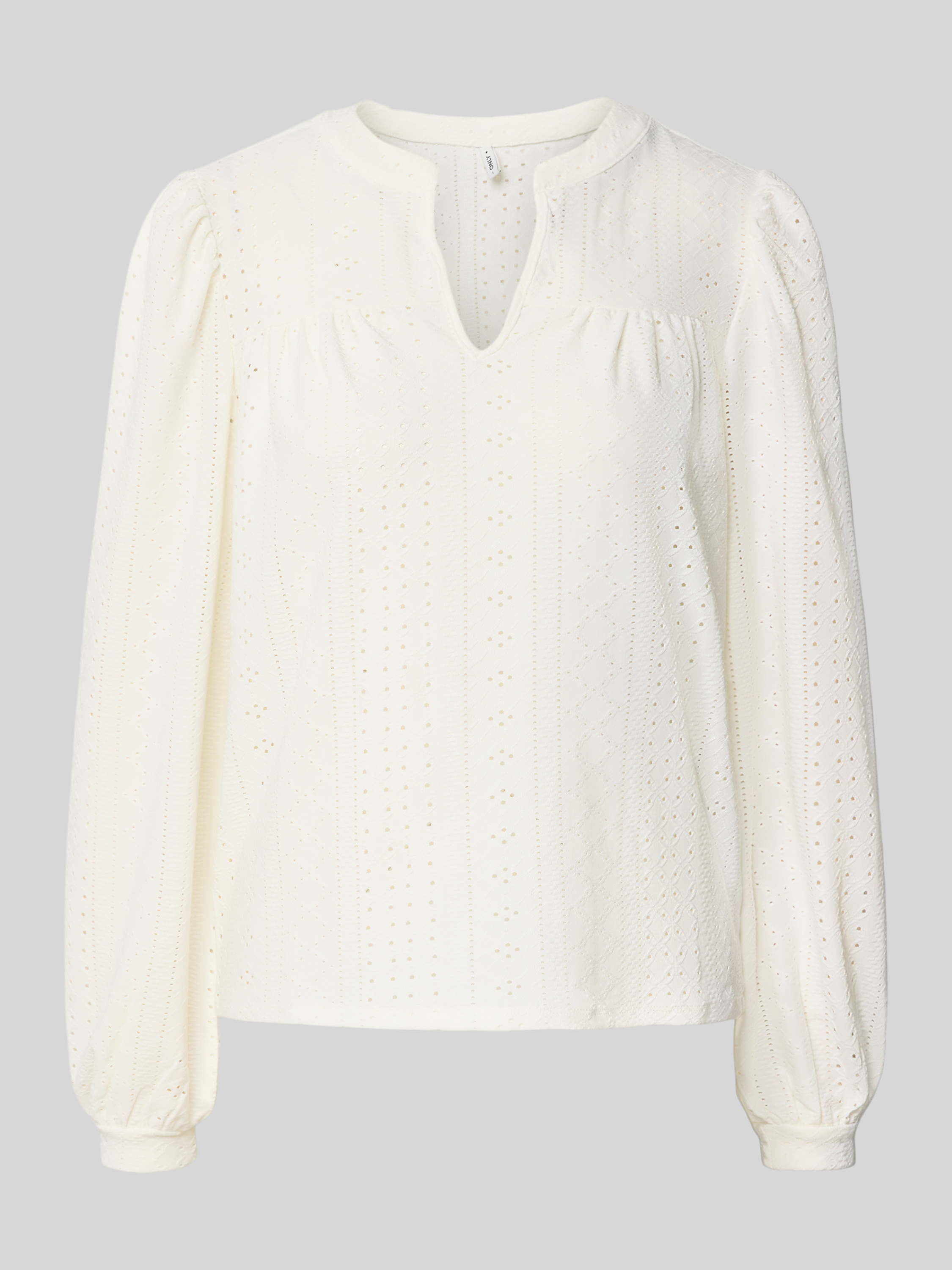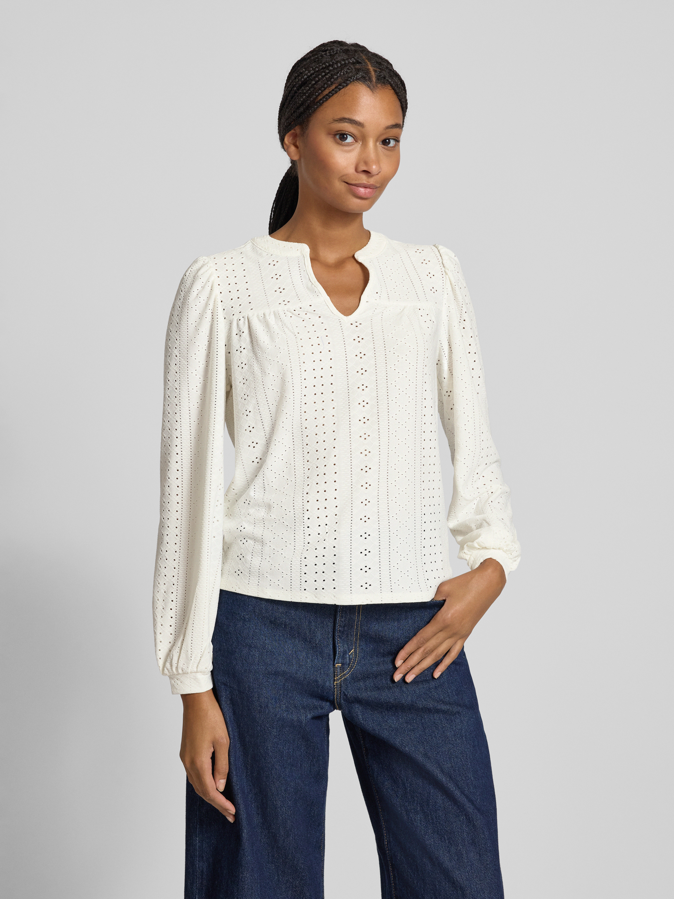 Relaxed fit blouseshirt met ajourpatroon, model 'SANDRA' in wit