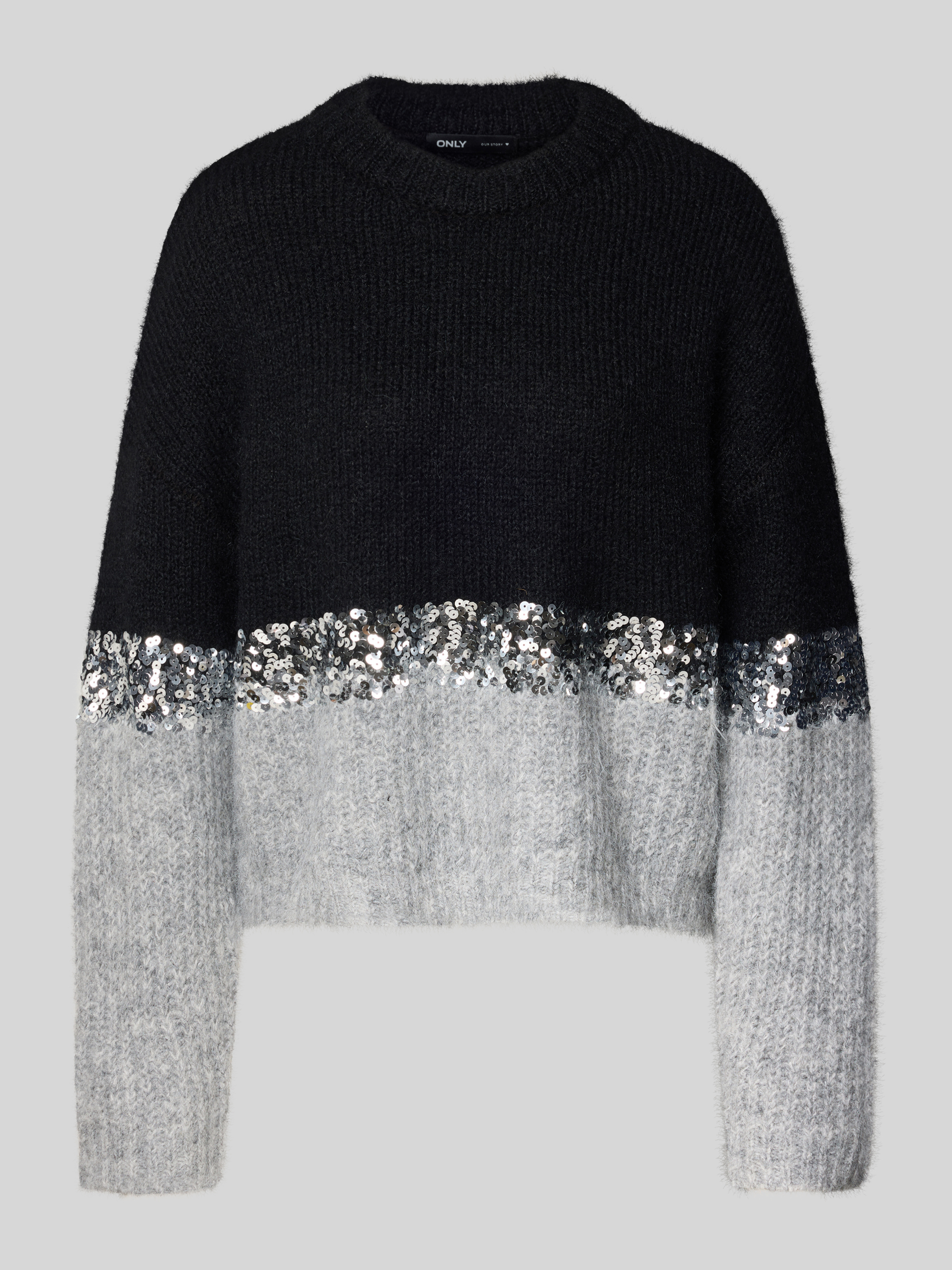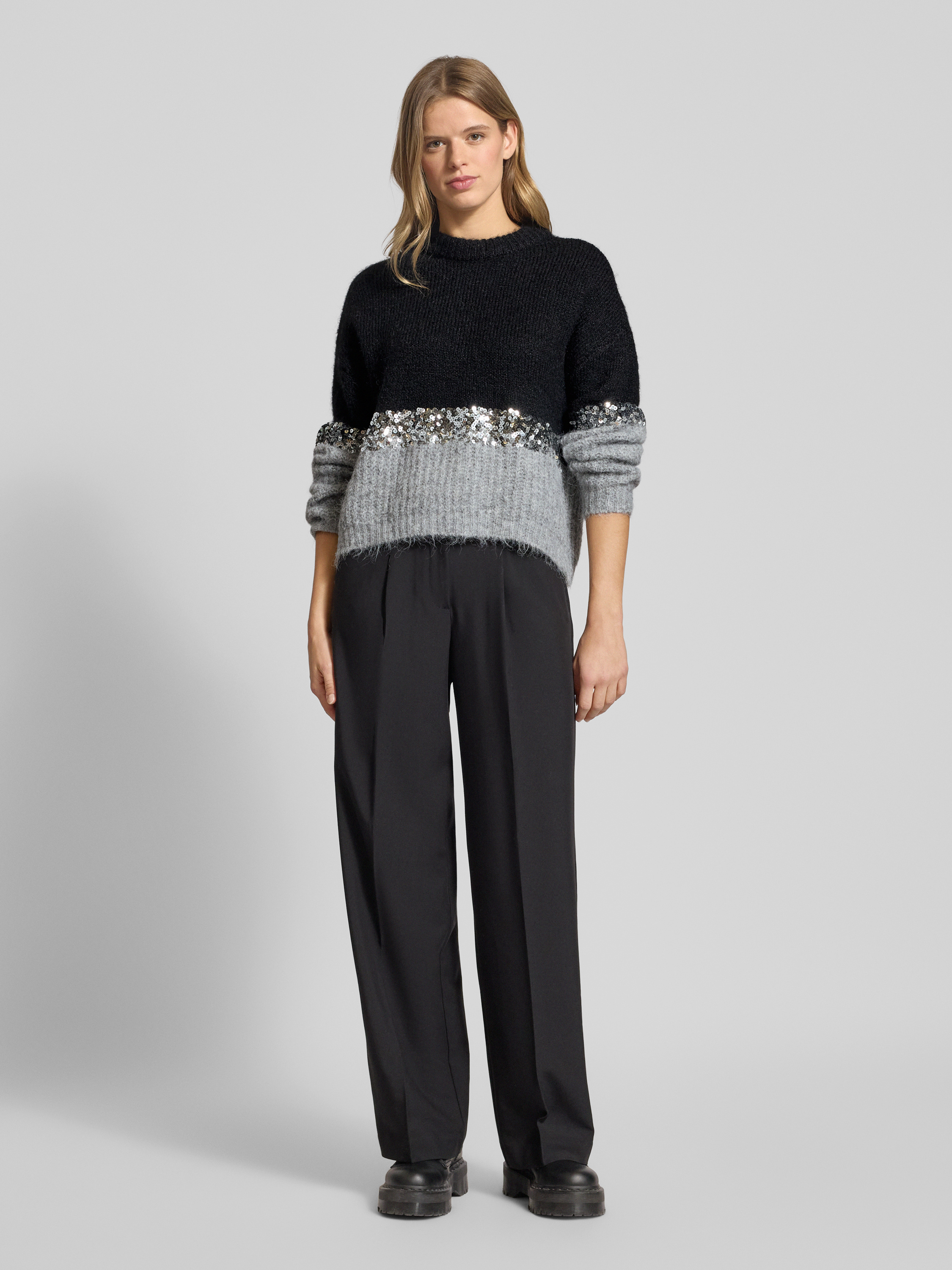 Relaxed fit gebreide pullover met wol, model 'MAINE' in metallic zwart