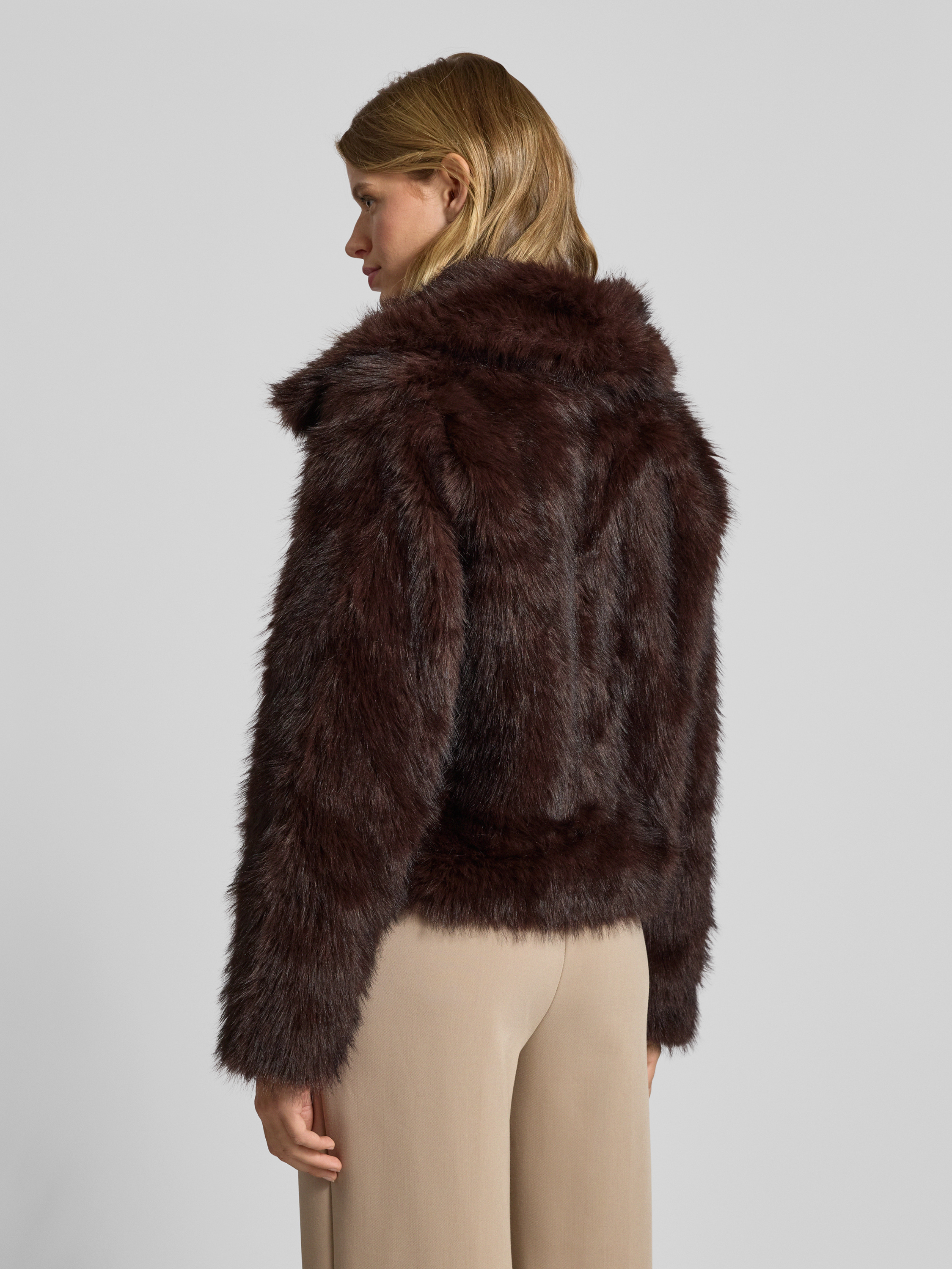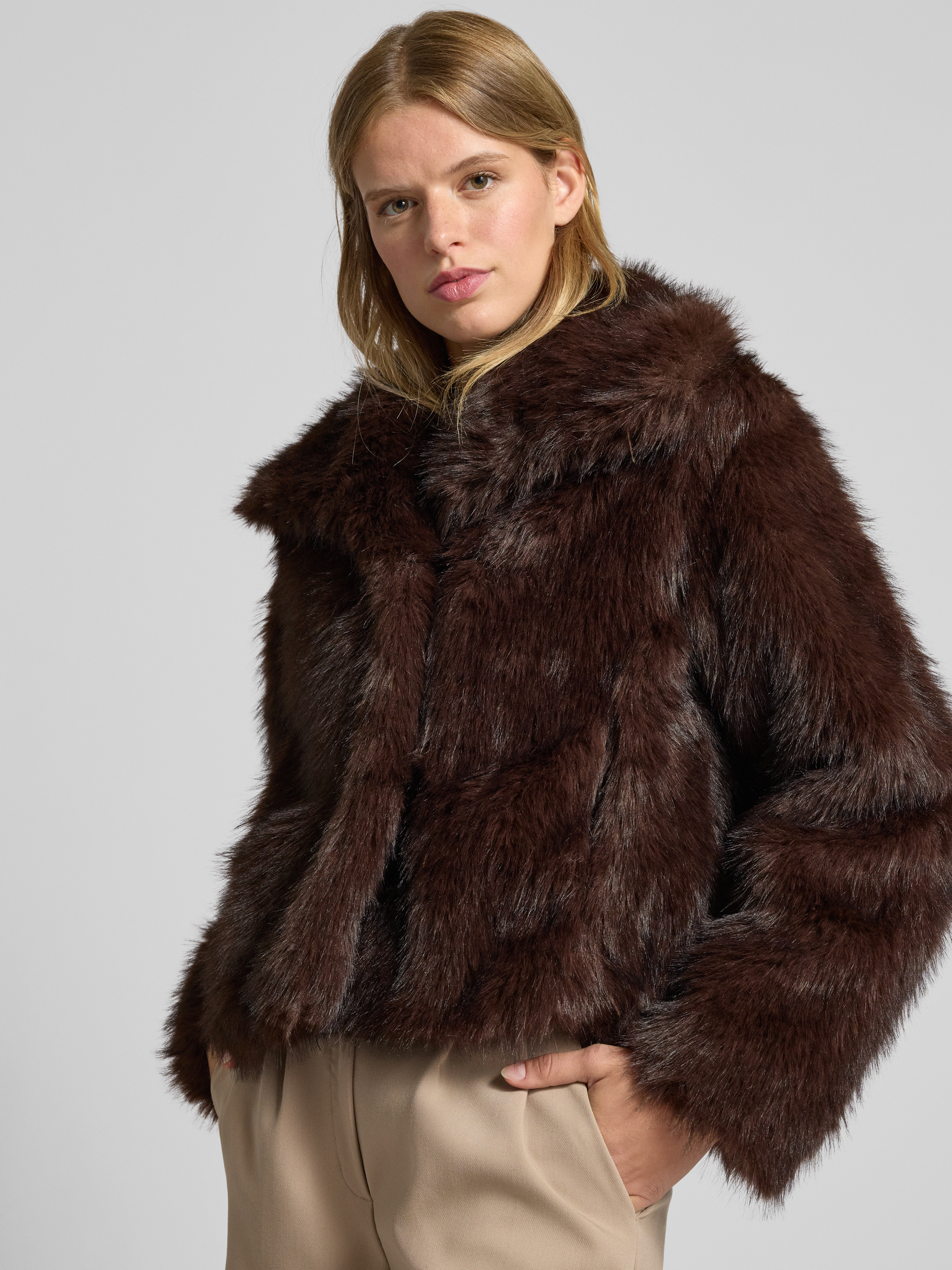 Relaxed fit jack van imitatiebont met haakjessluiting, model 'DAWN LIFE' in chocoladebruin