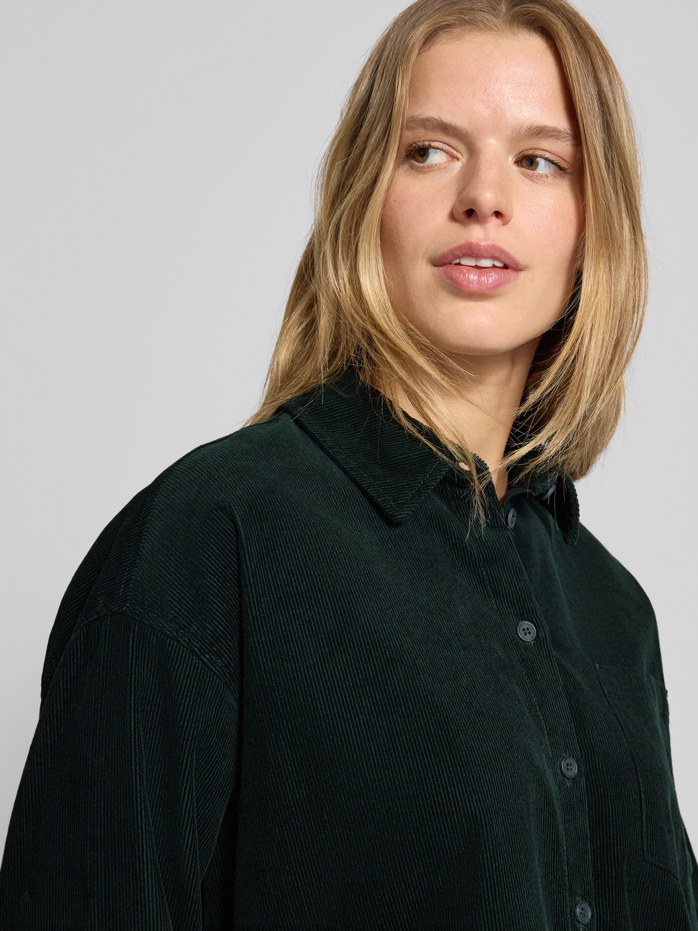 Relaxed fit overhemdblouse van puur katoen, model 'AIME-MOXI' in donkergroen