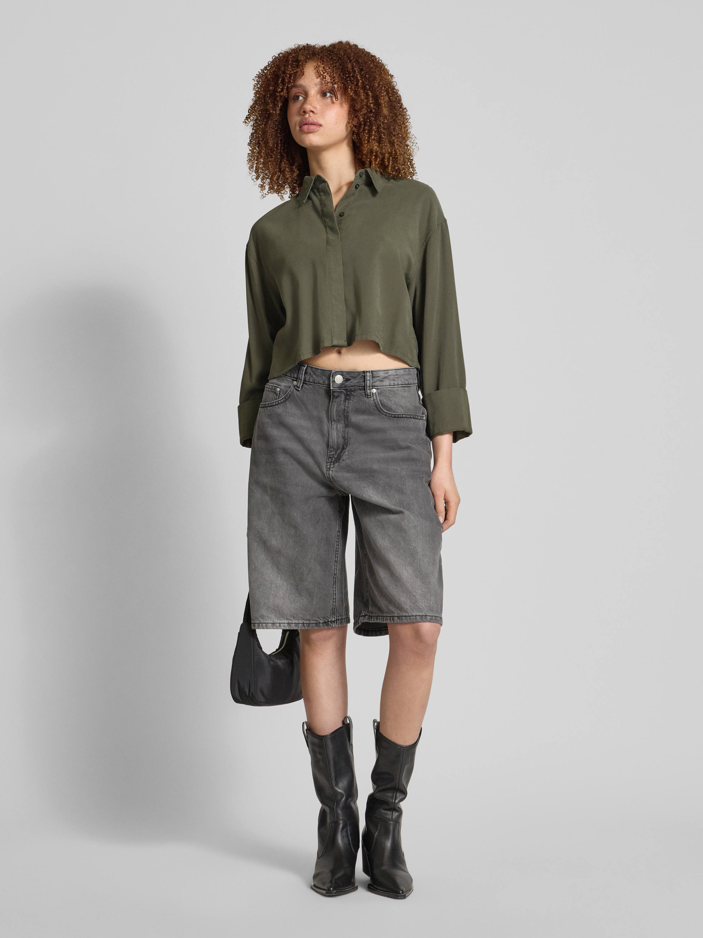 Relaxed fit overhemdblouse van viscosemix, model 'LARIS' in kaki