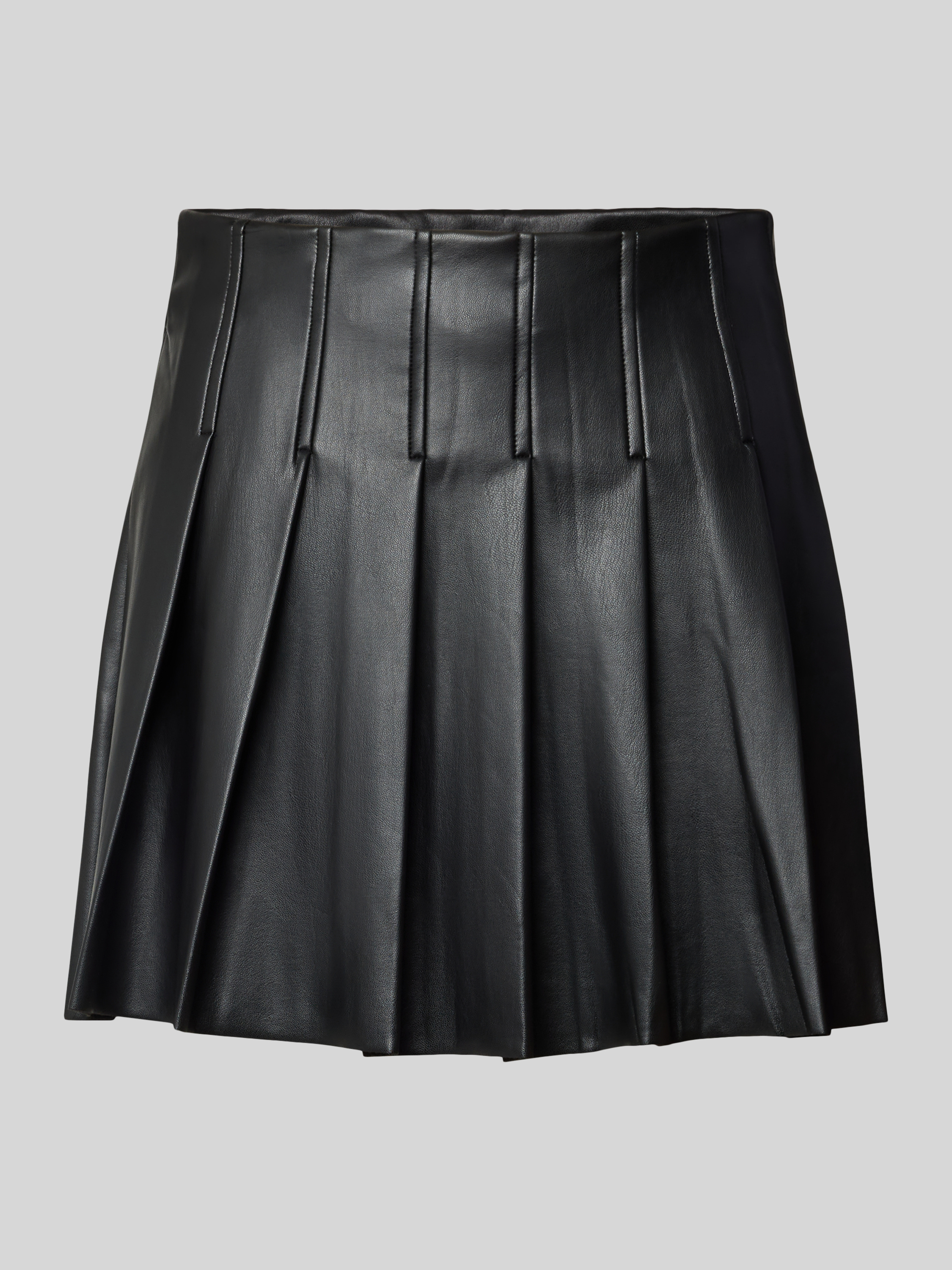 Rok in leerlook met plooien, model 'DORIT' in zwart