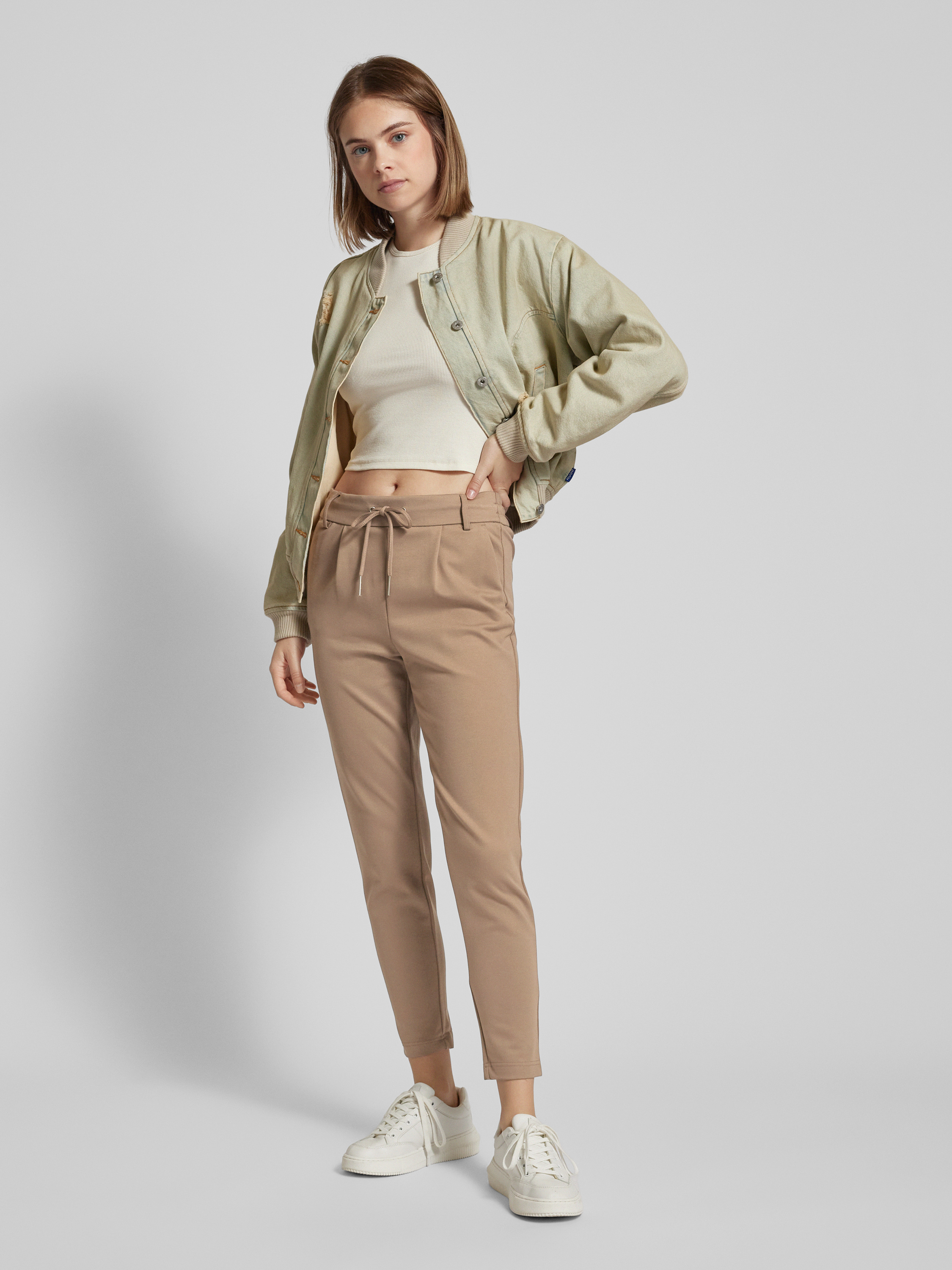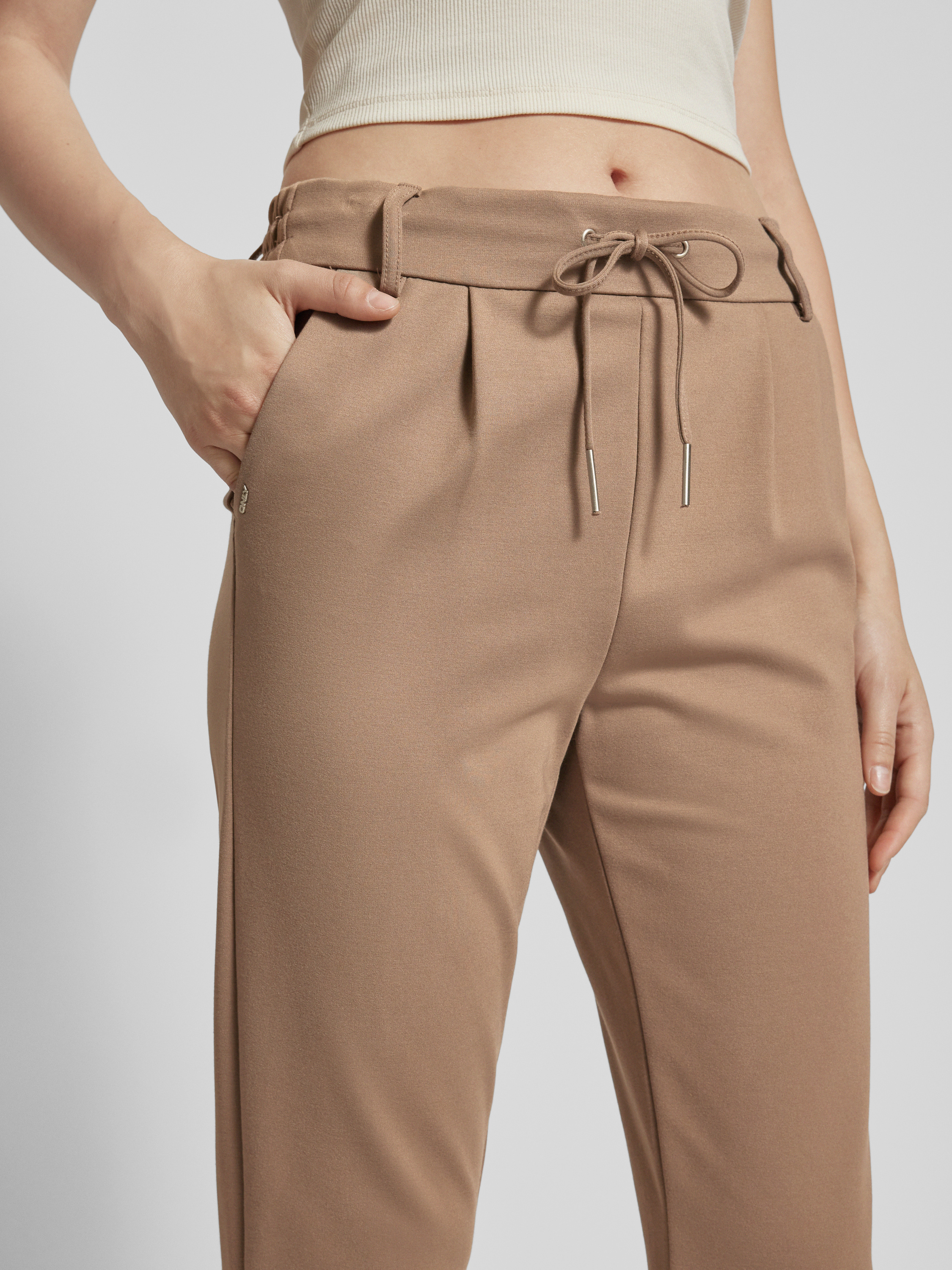 Slim fit bandplooibroek met tunnelkoord, model 'POPTRASH EASY' in taupe