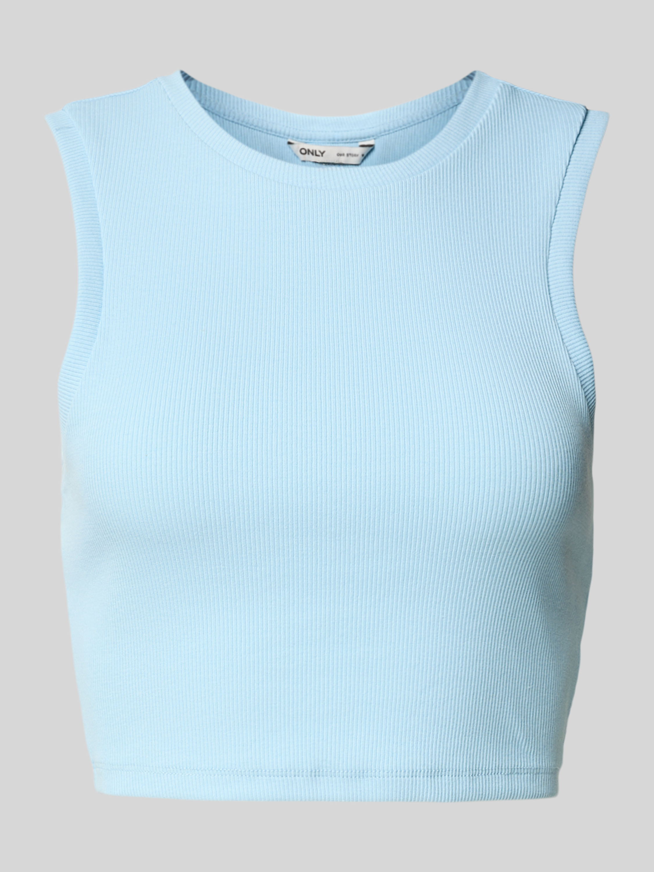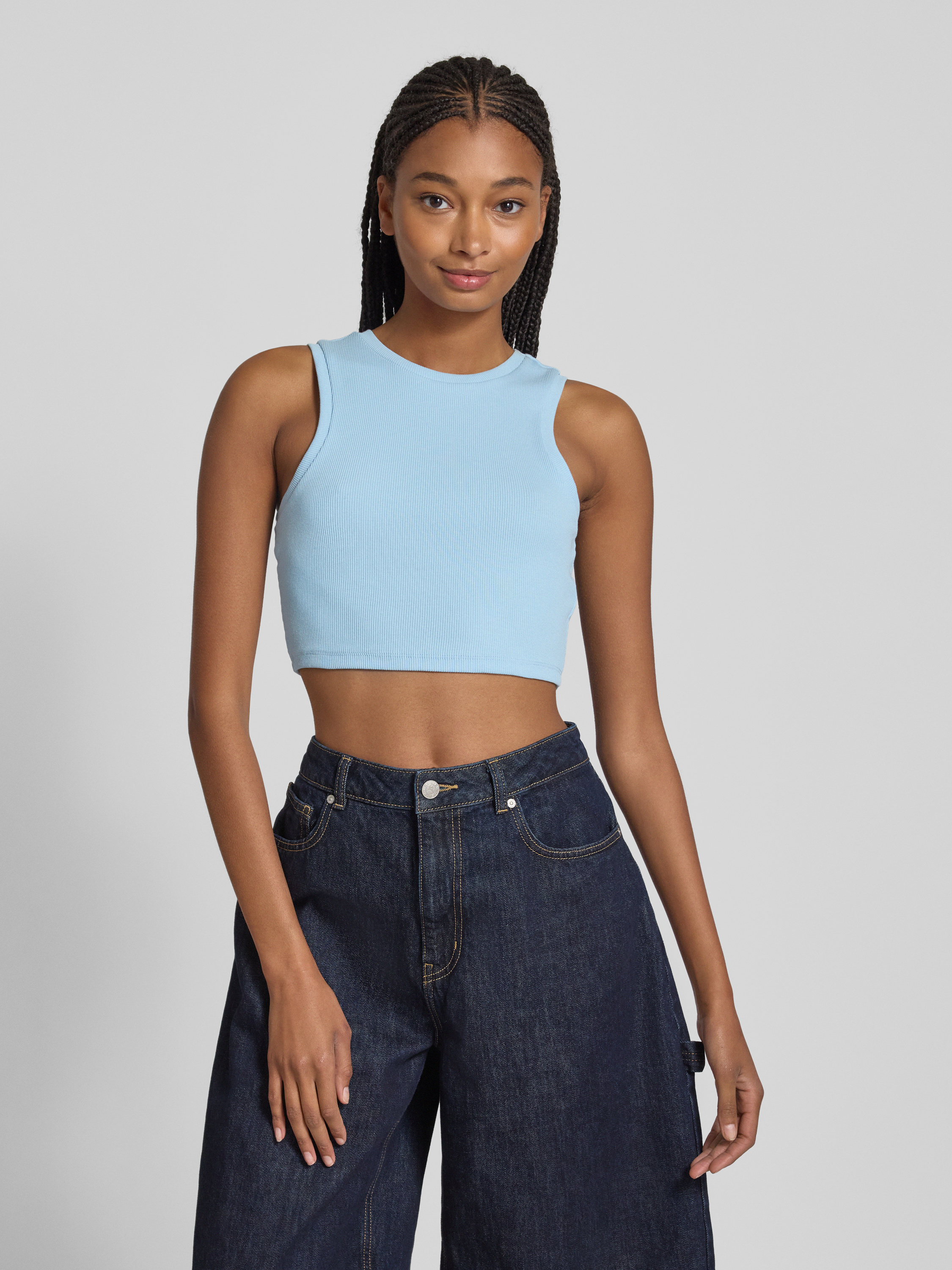 Slim fit korte tops van katoenmix, model 'VILMA' in lichtblauw