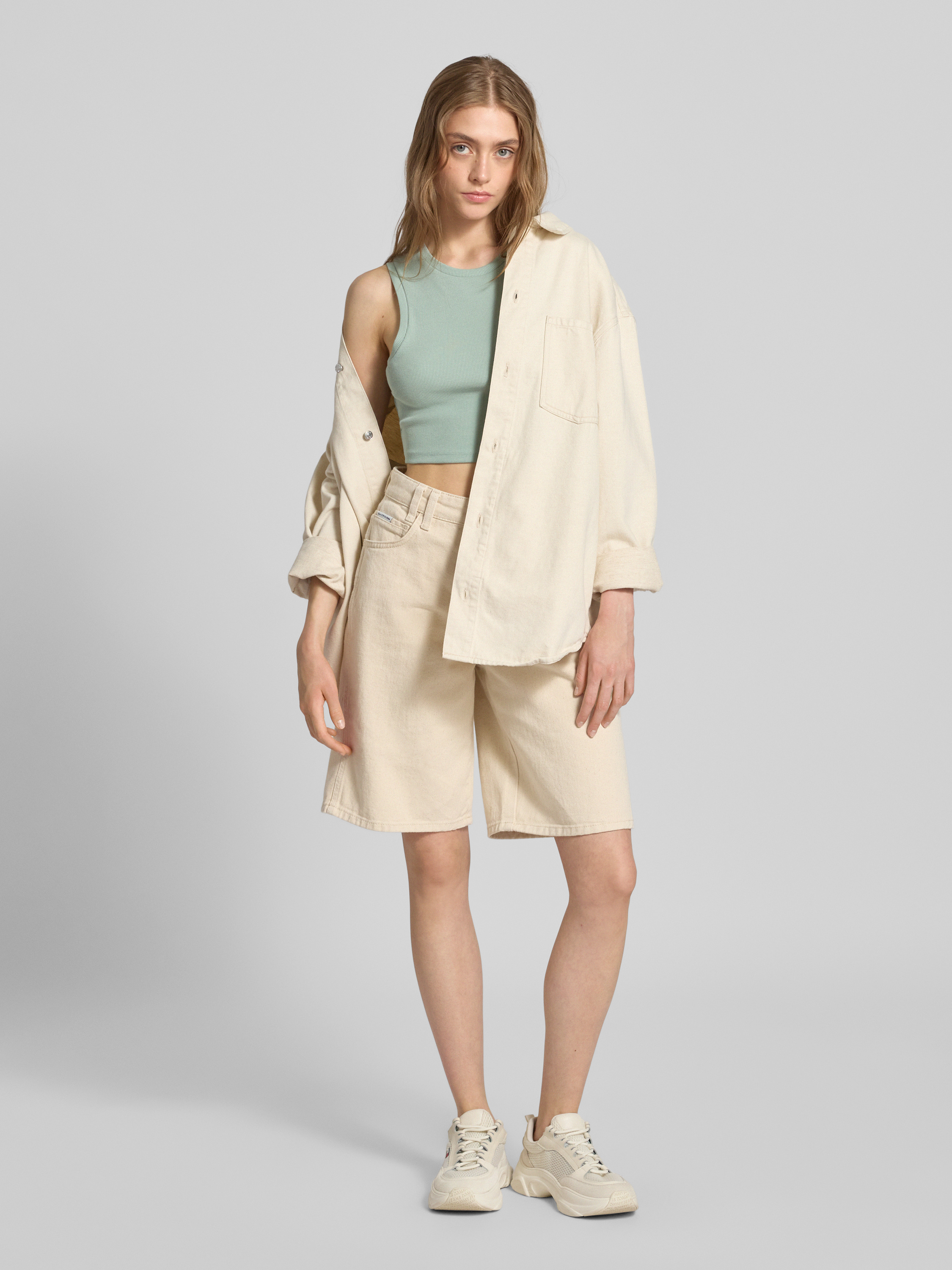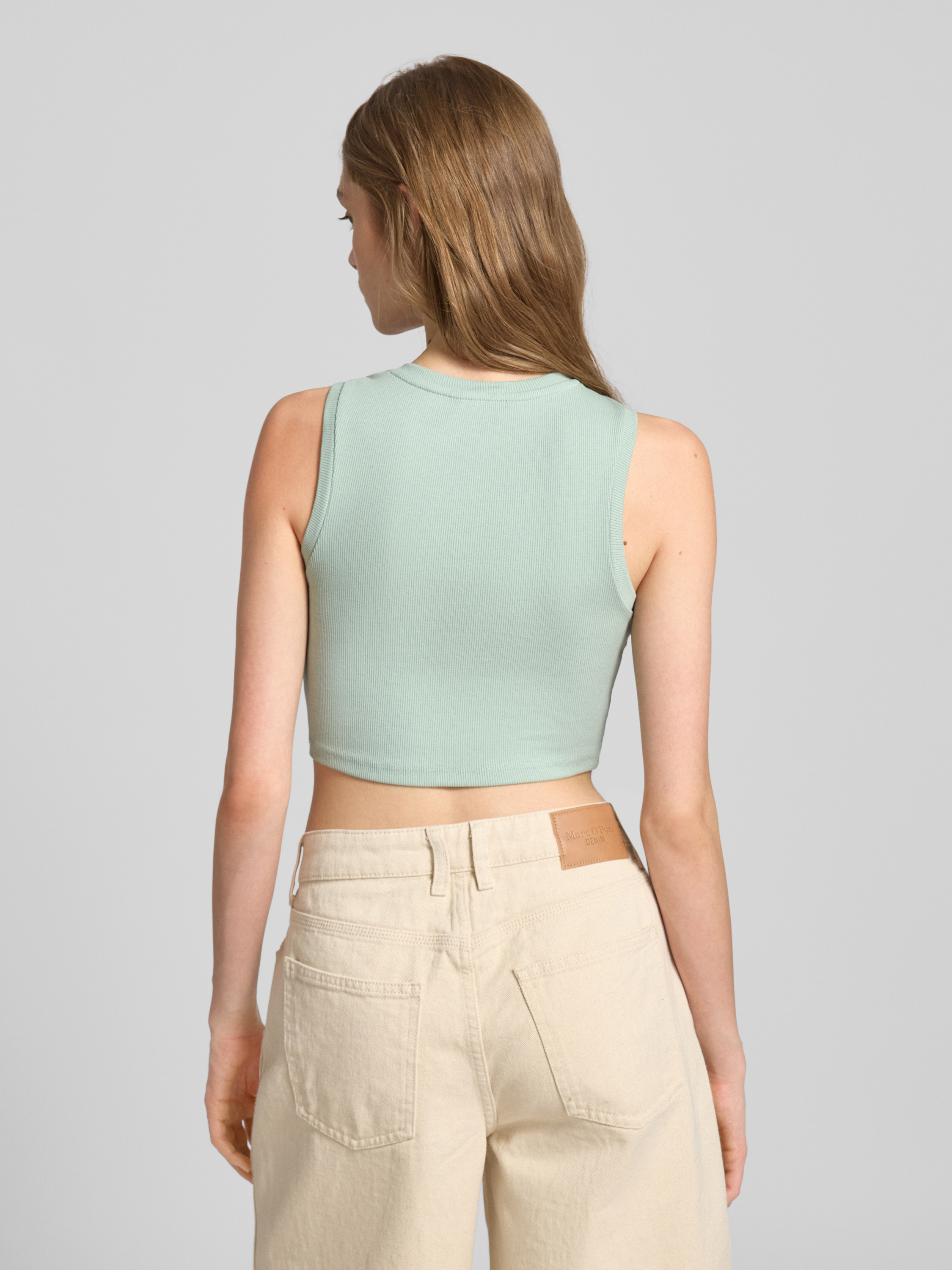 Slim fit korte tops van katoenmix, model 'VILMA' in rietgroen