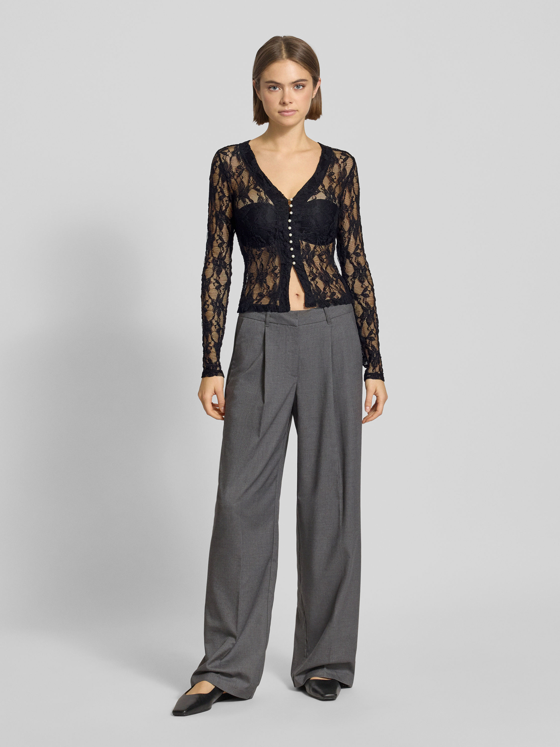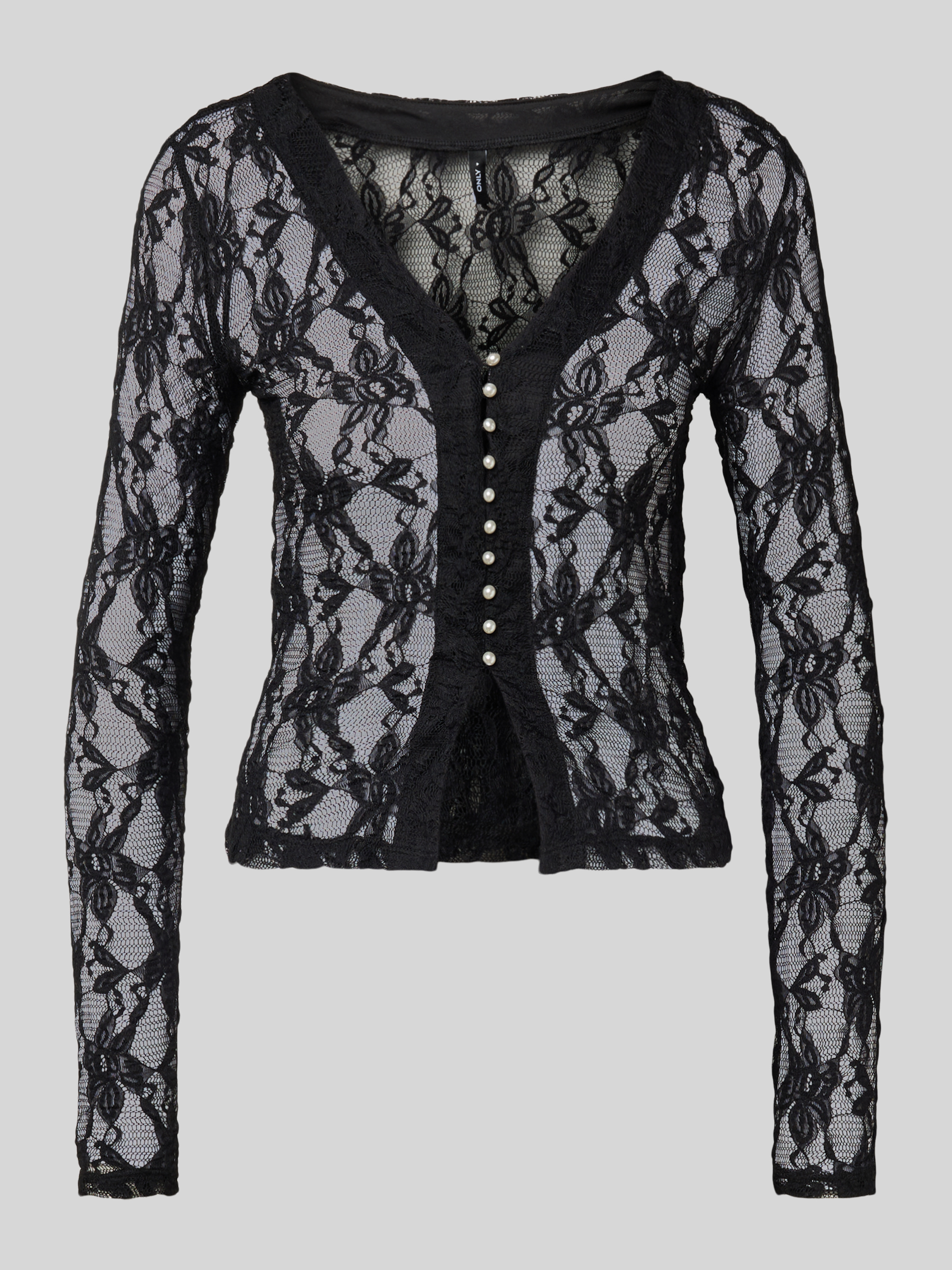 Slim fit shirt met lange mouwen in semi-transparante look, model 'ALBA' in zwart