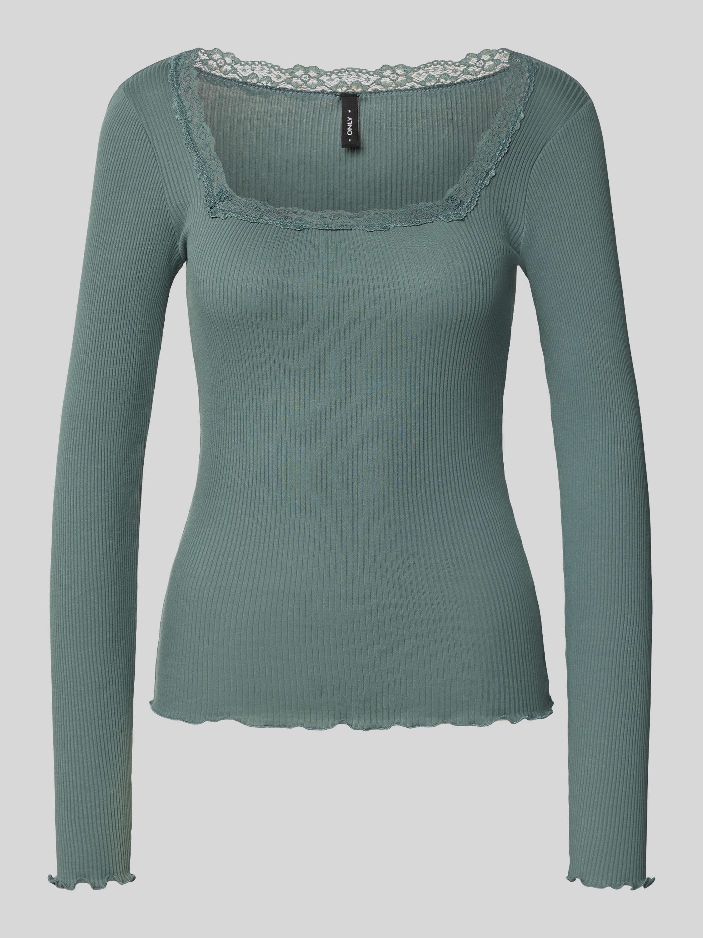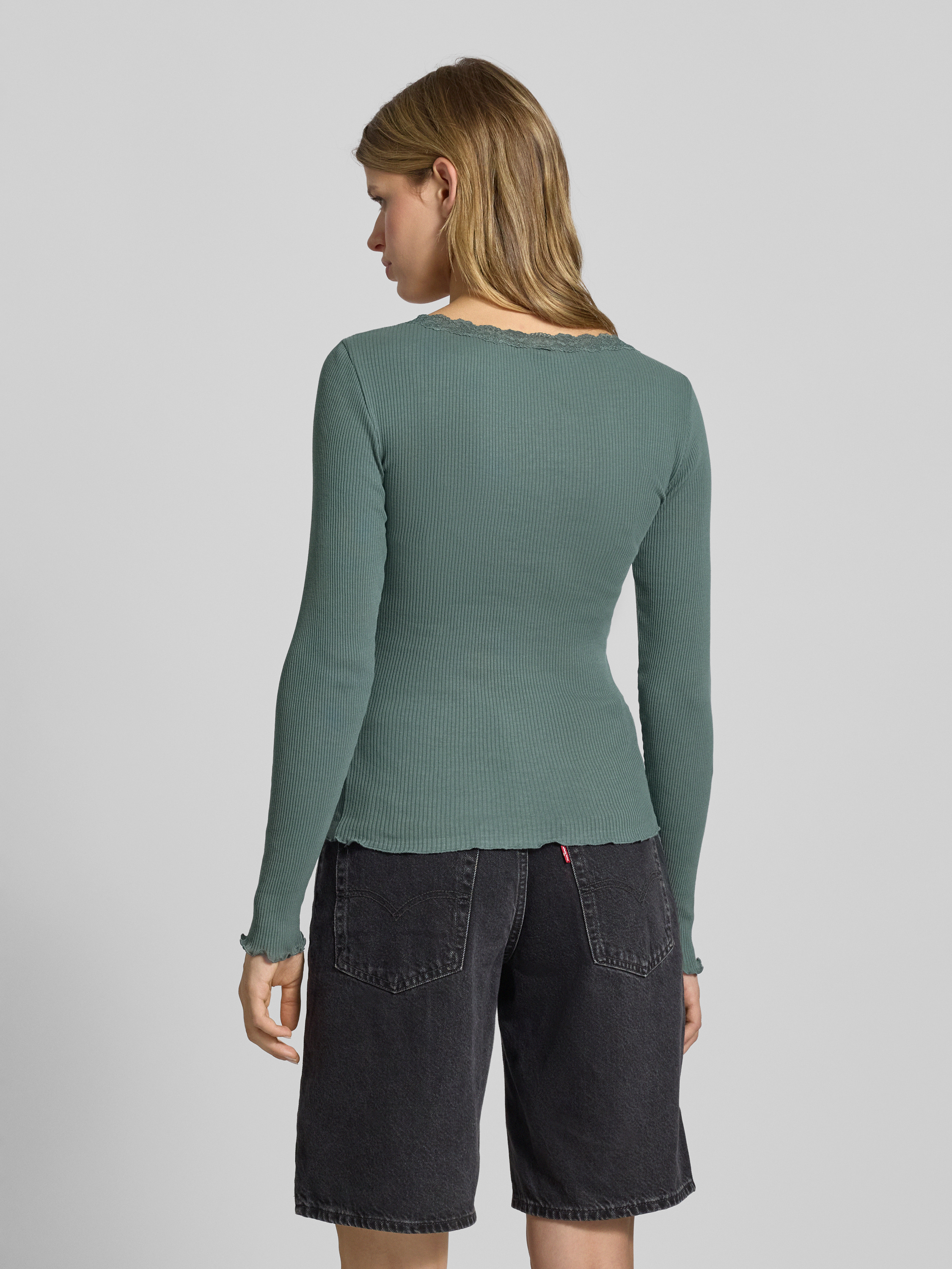 Slim fit shirt met lange mouwen van puur katoen, model 'XENA' in rietgroen