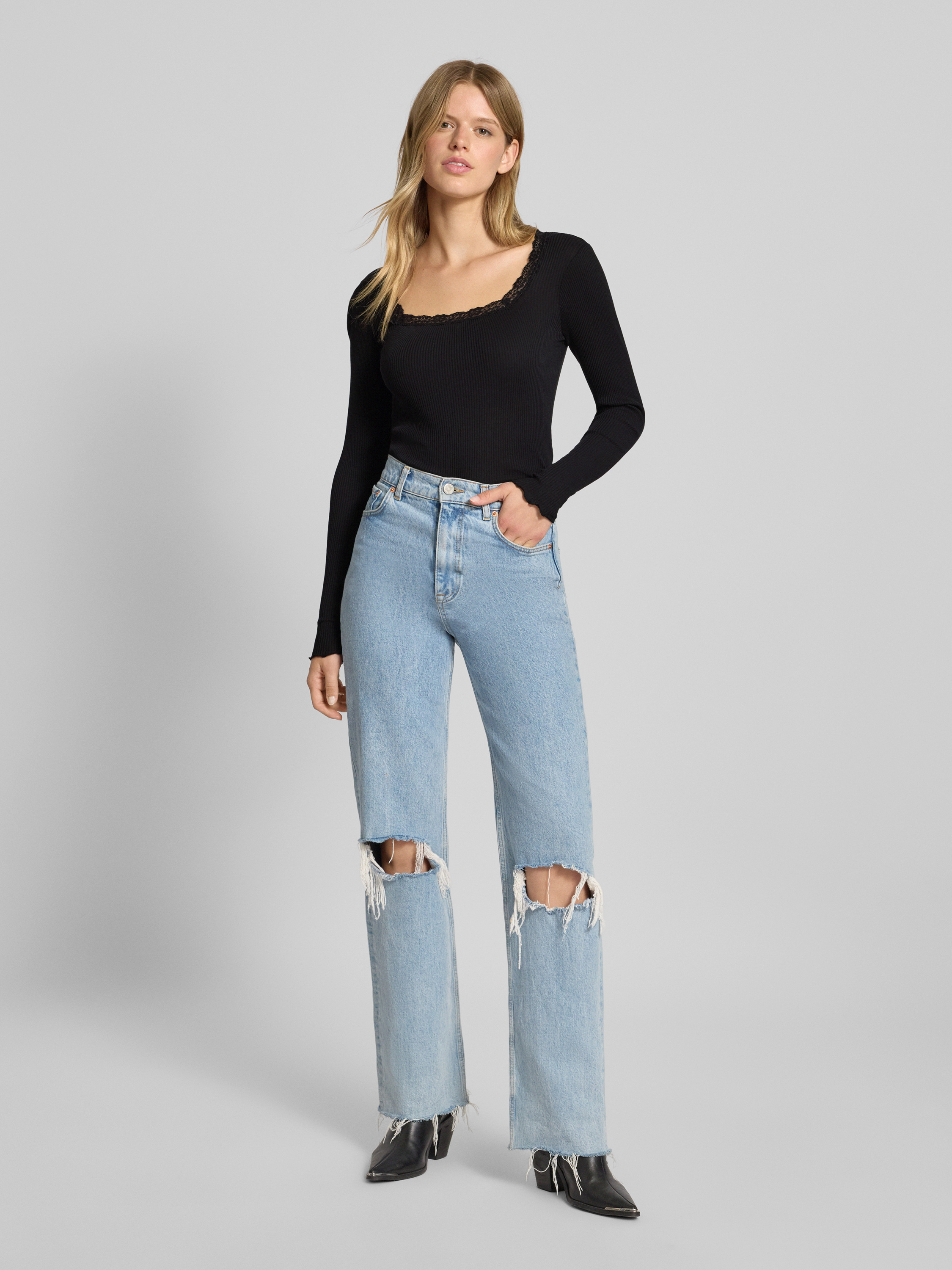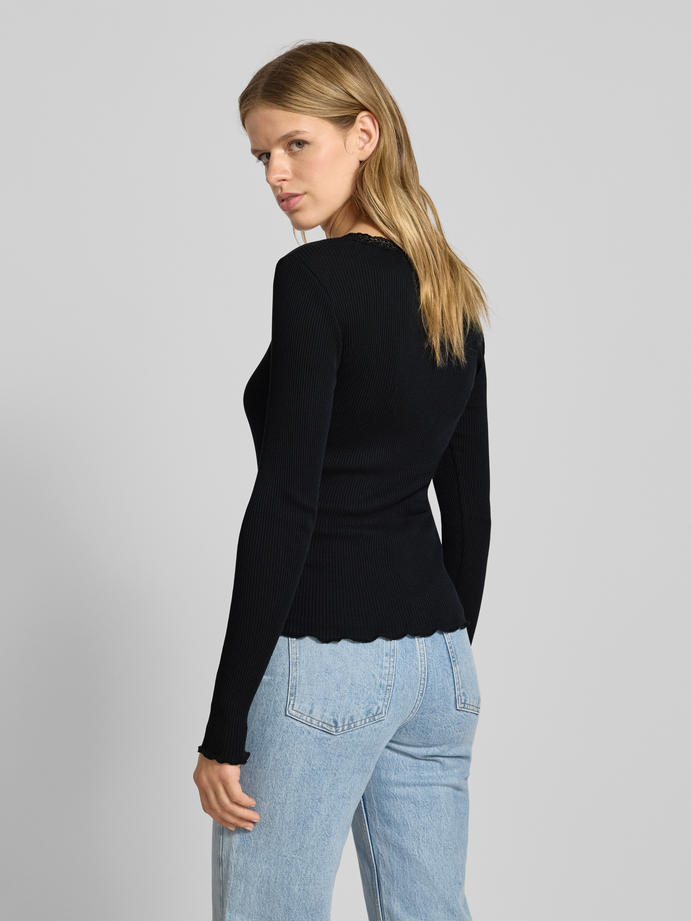 Slim fit shirt met lange mouwen van puur katoen, model 'XENA' in zwart