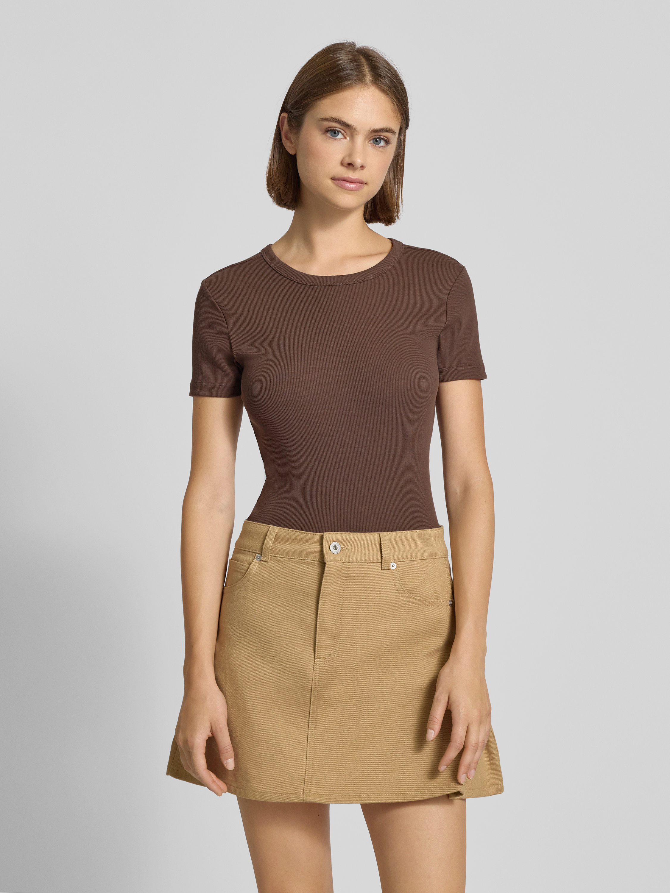 Slim fit T-shirt van katoenmix, model 'VAL LIFE' in chocoladebruin