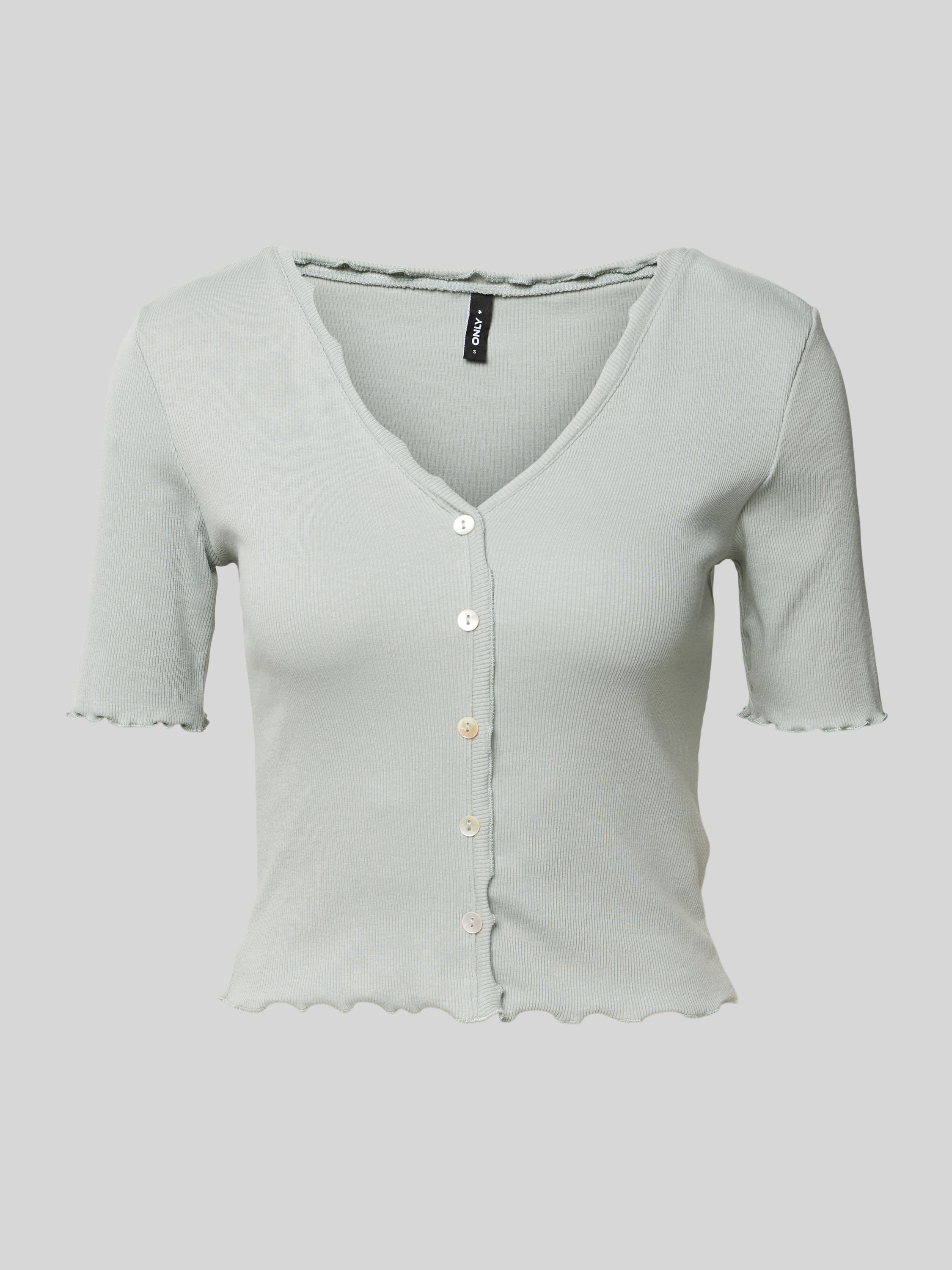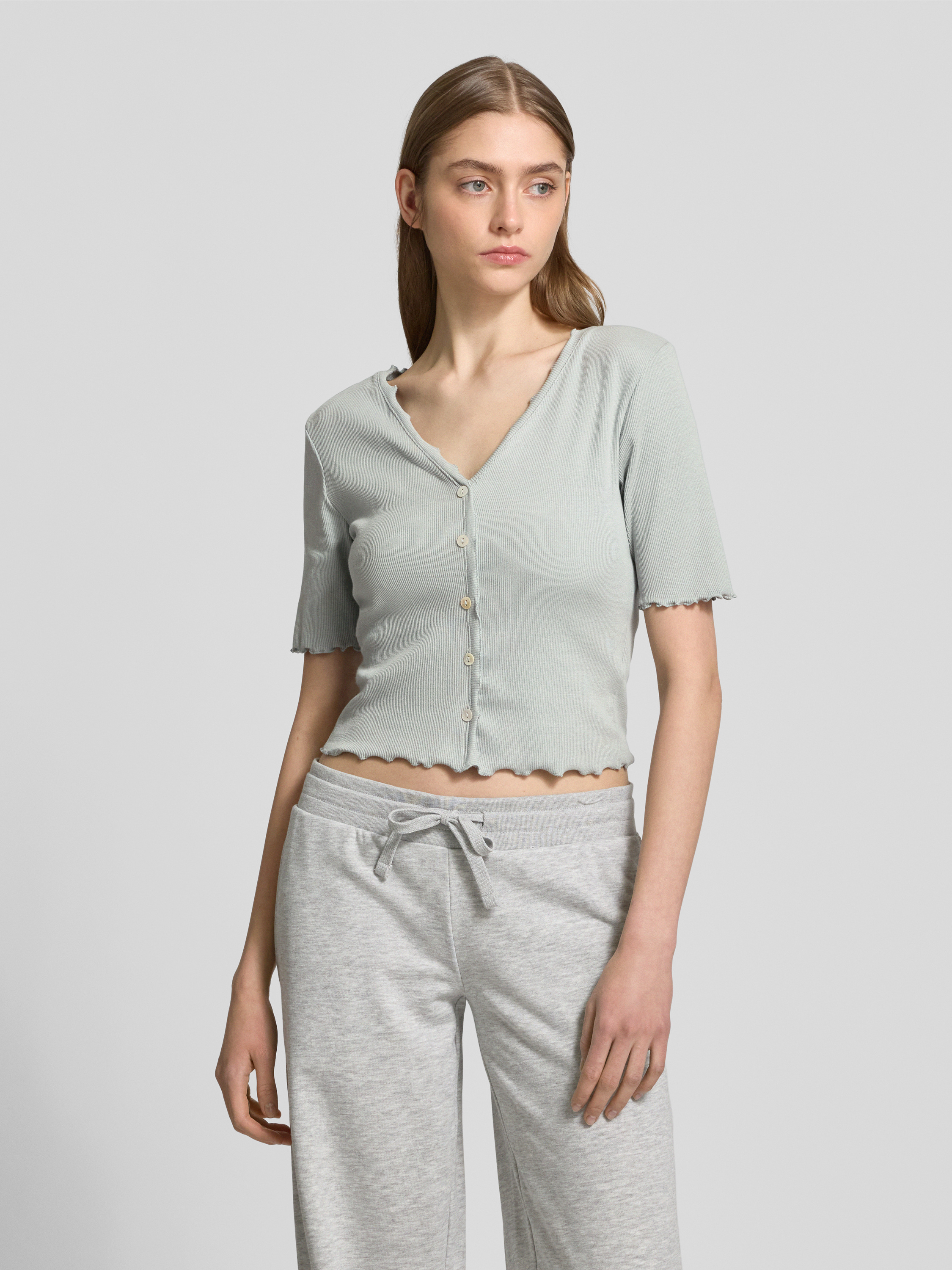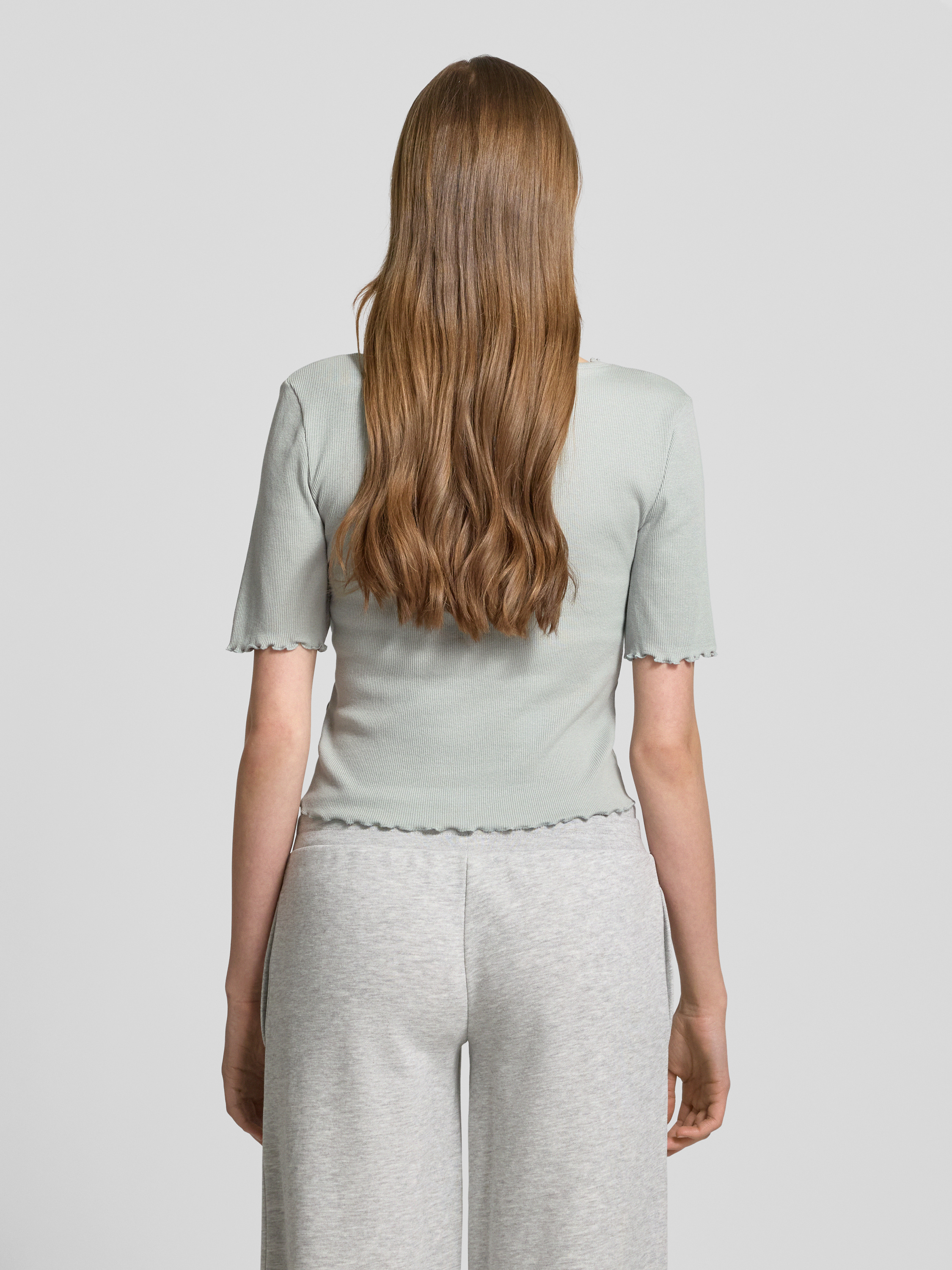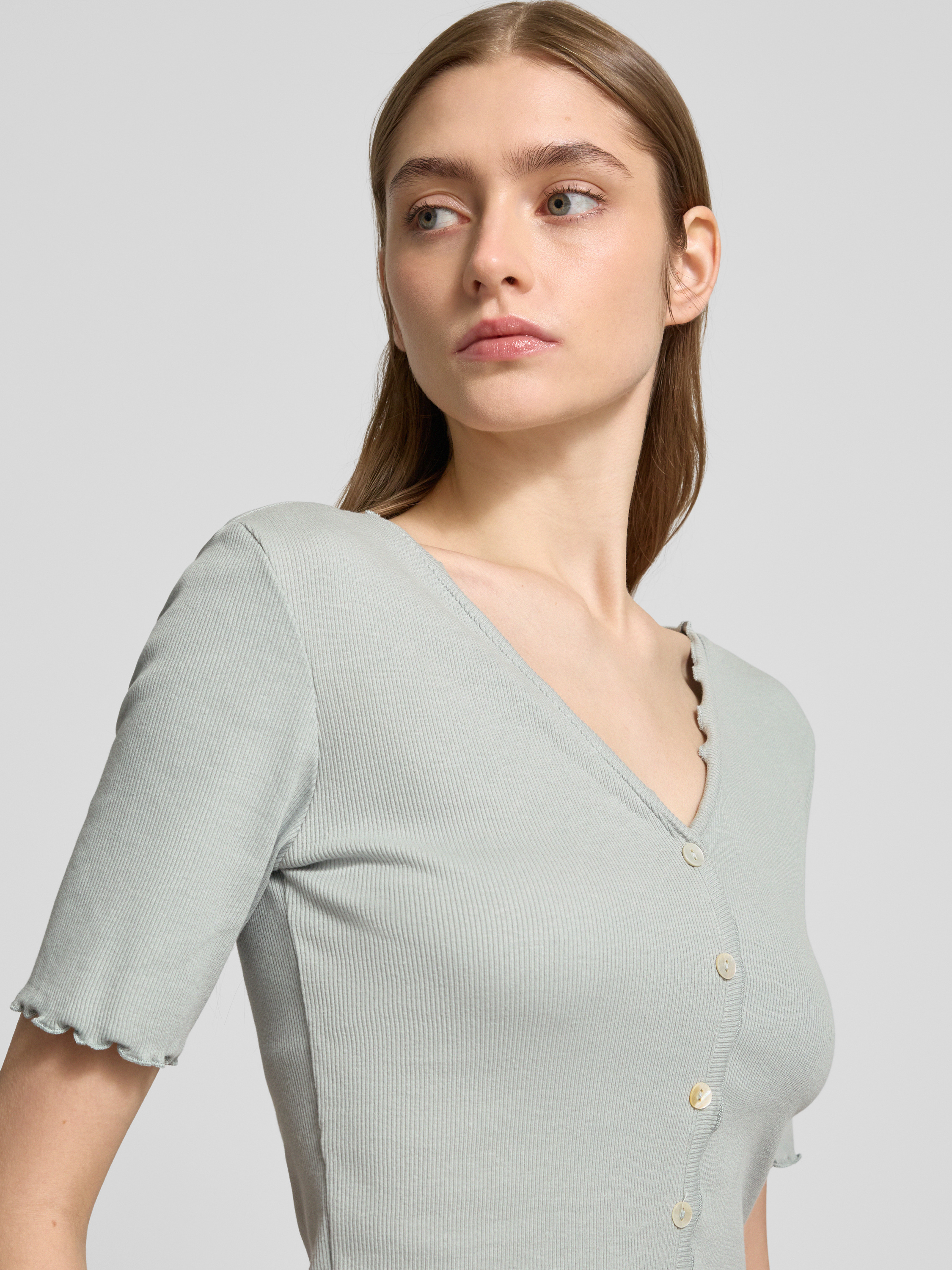 Slim fit T-shirts van katoenmix, model 'LAILA' in rietgroen