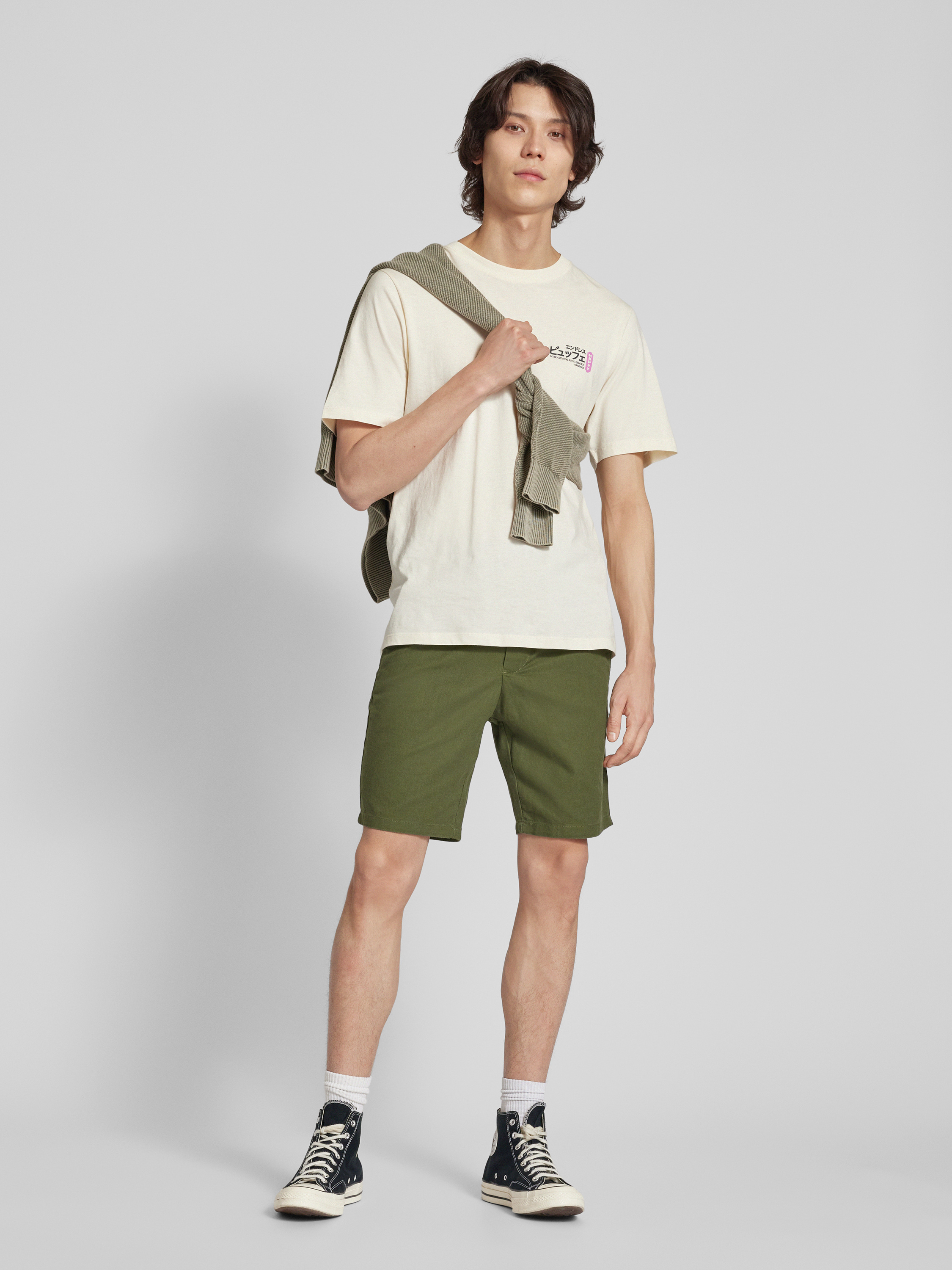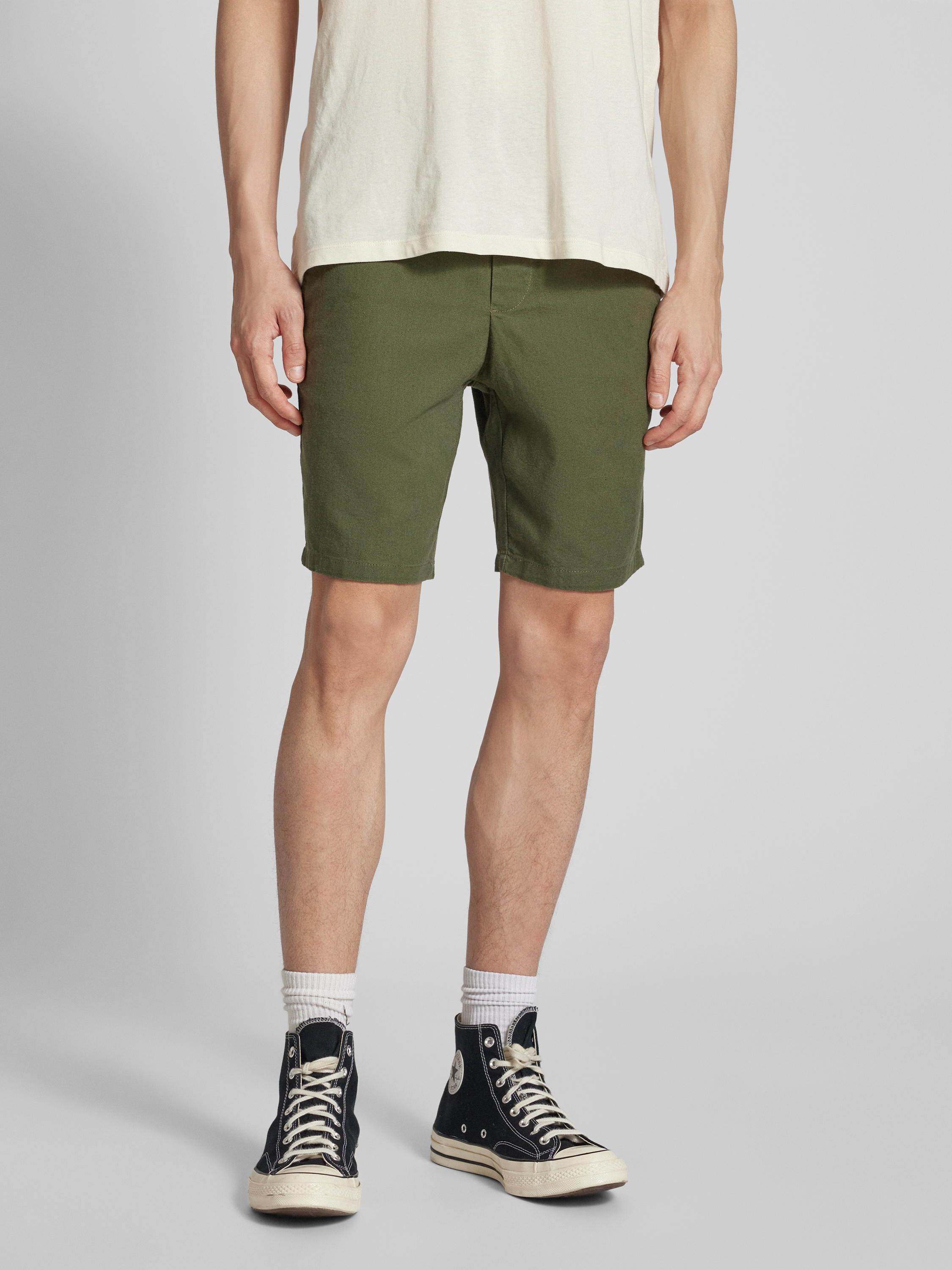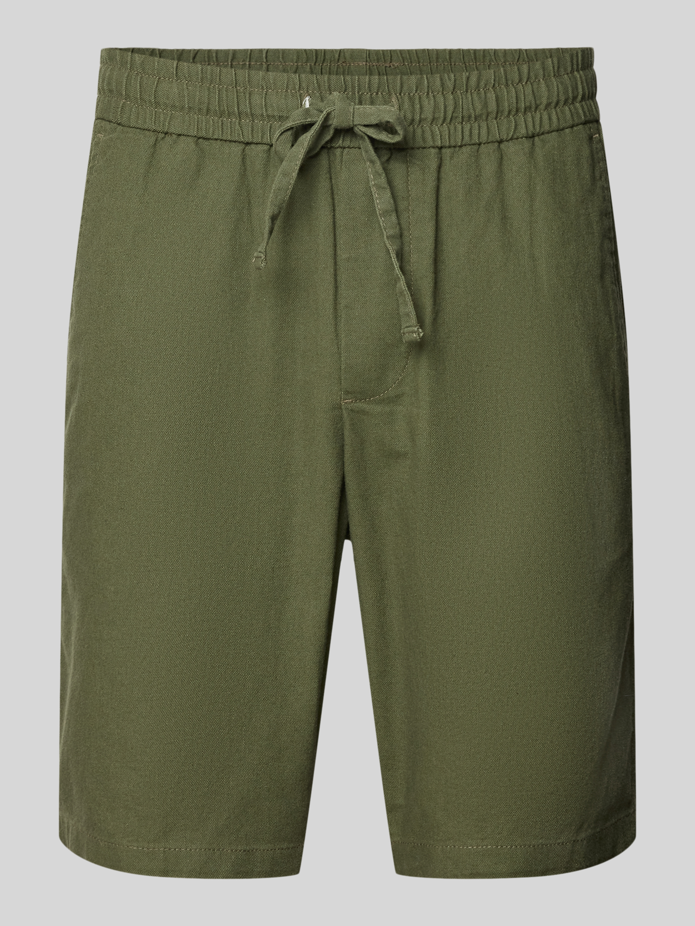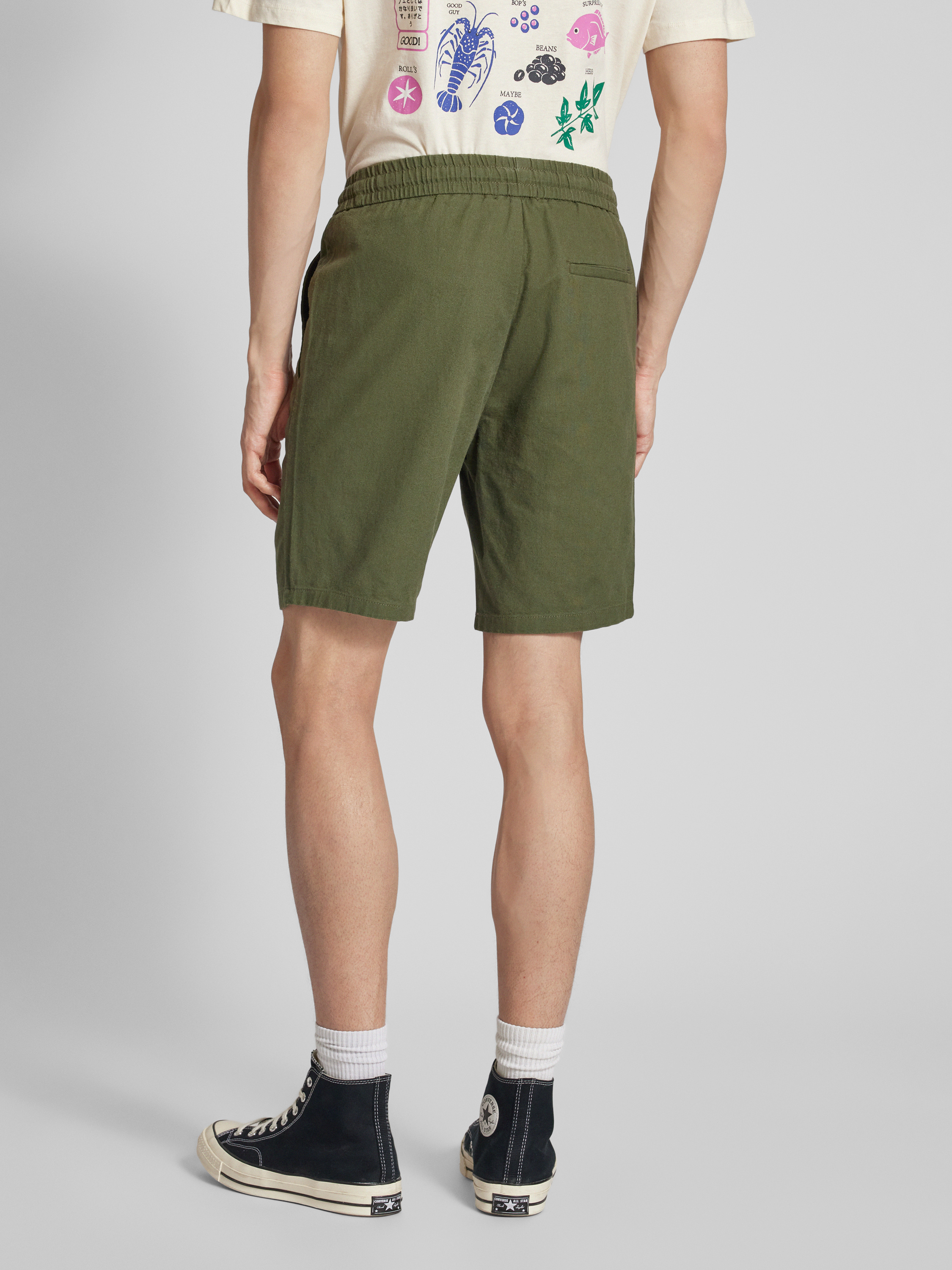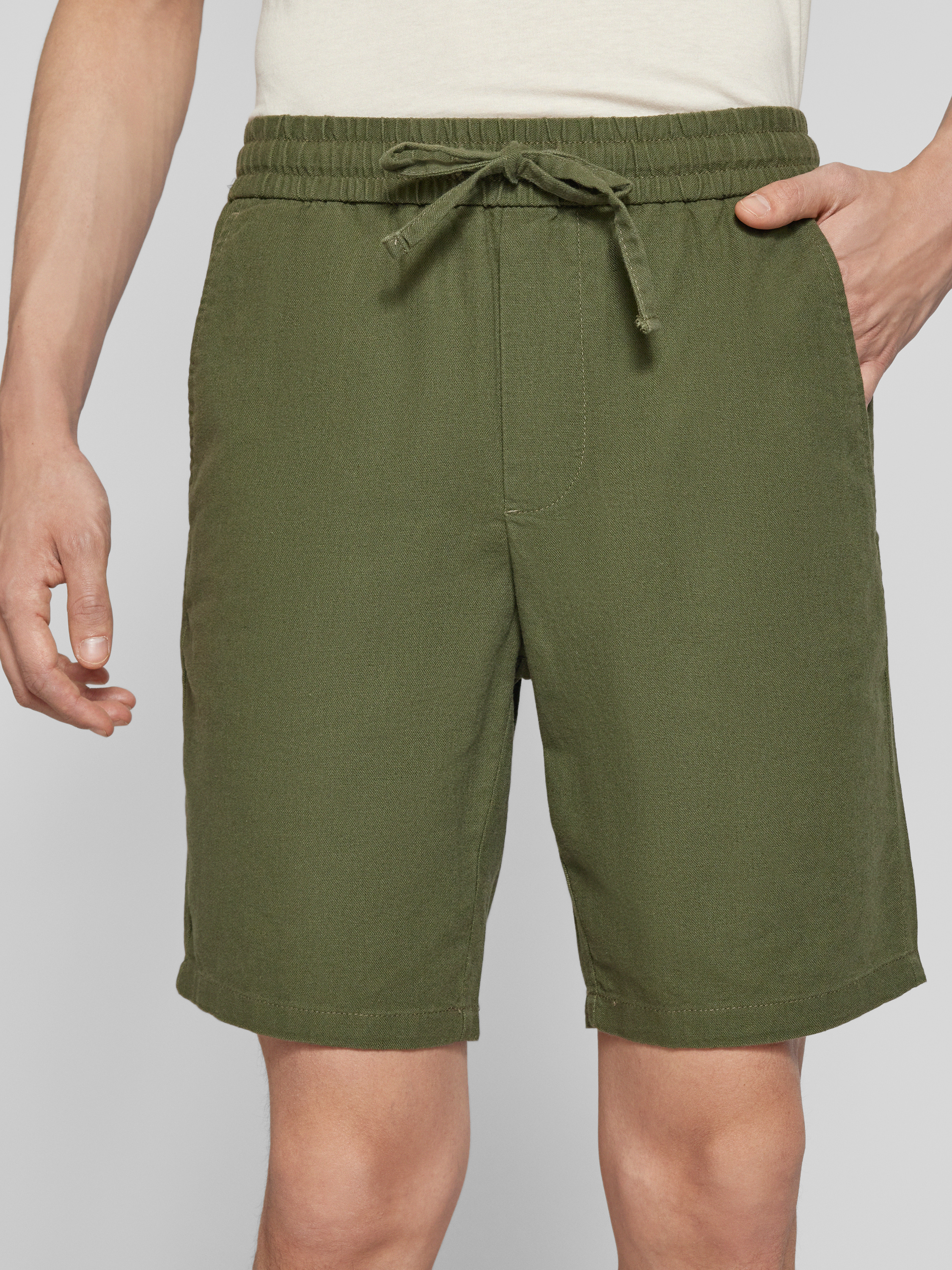 Korte broek met elastische band, model 'LINUS' in olijfgroen