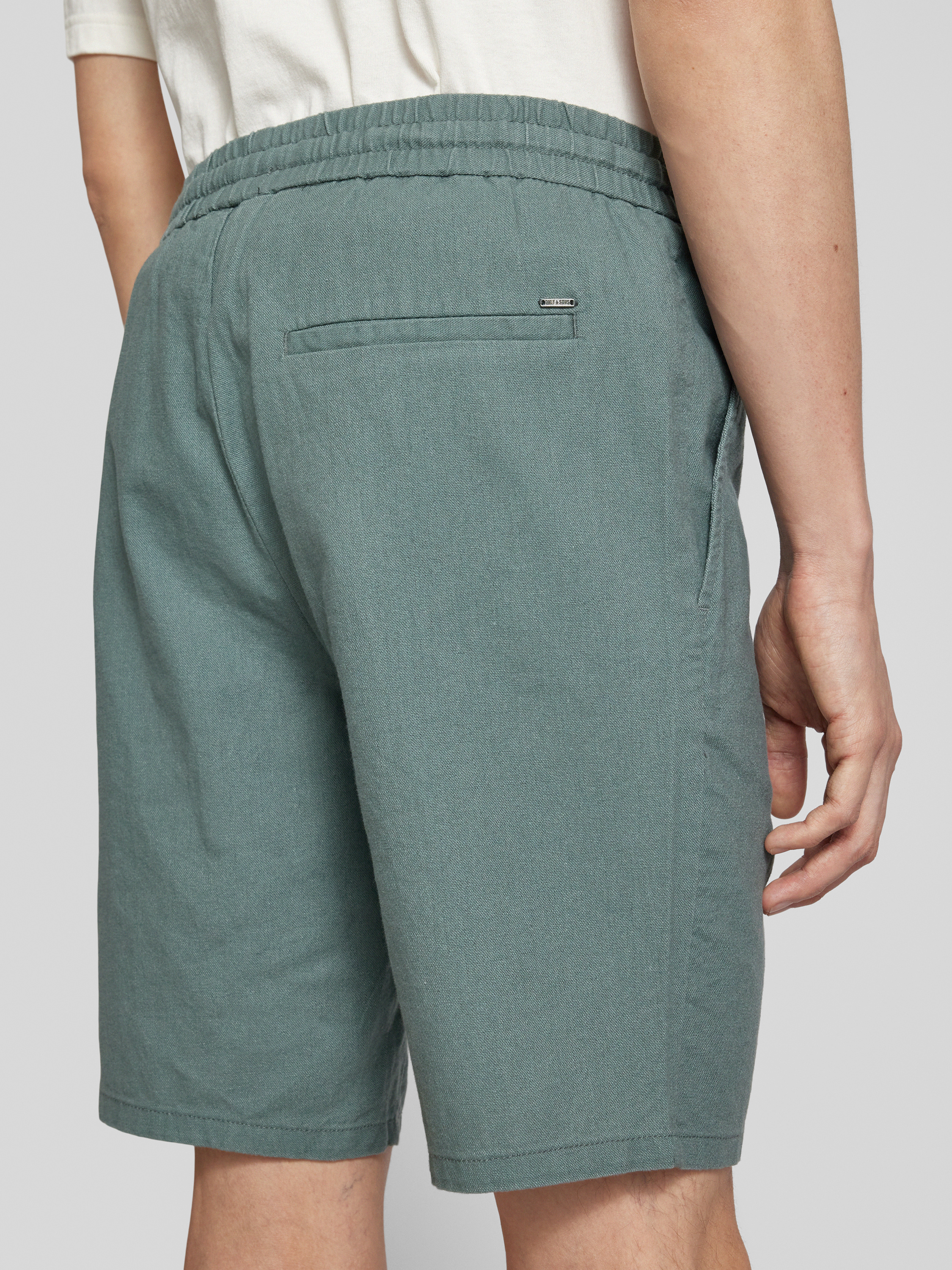 Korte broek met elastische band, model 'LINUS' in petrol