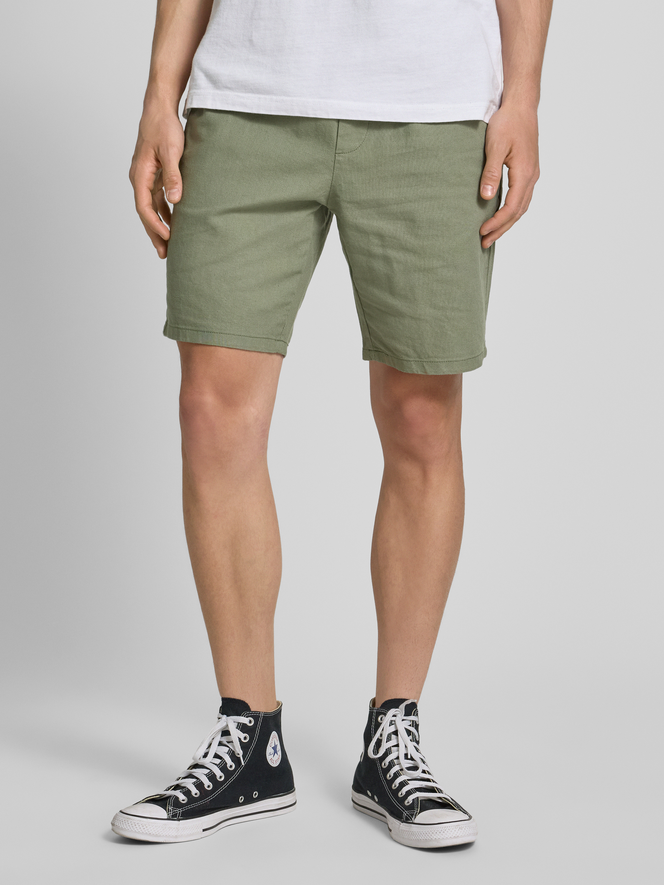 Korte broek van een mix van katoen en linnen, model 'LINUS' in groen