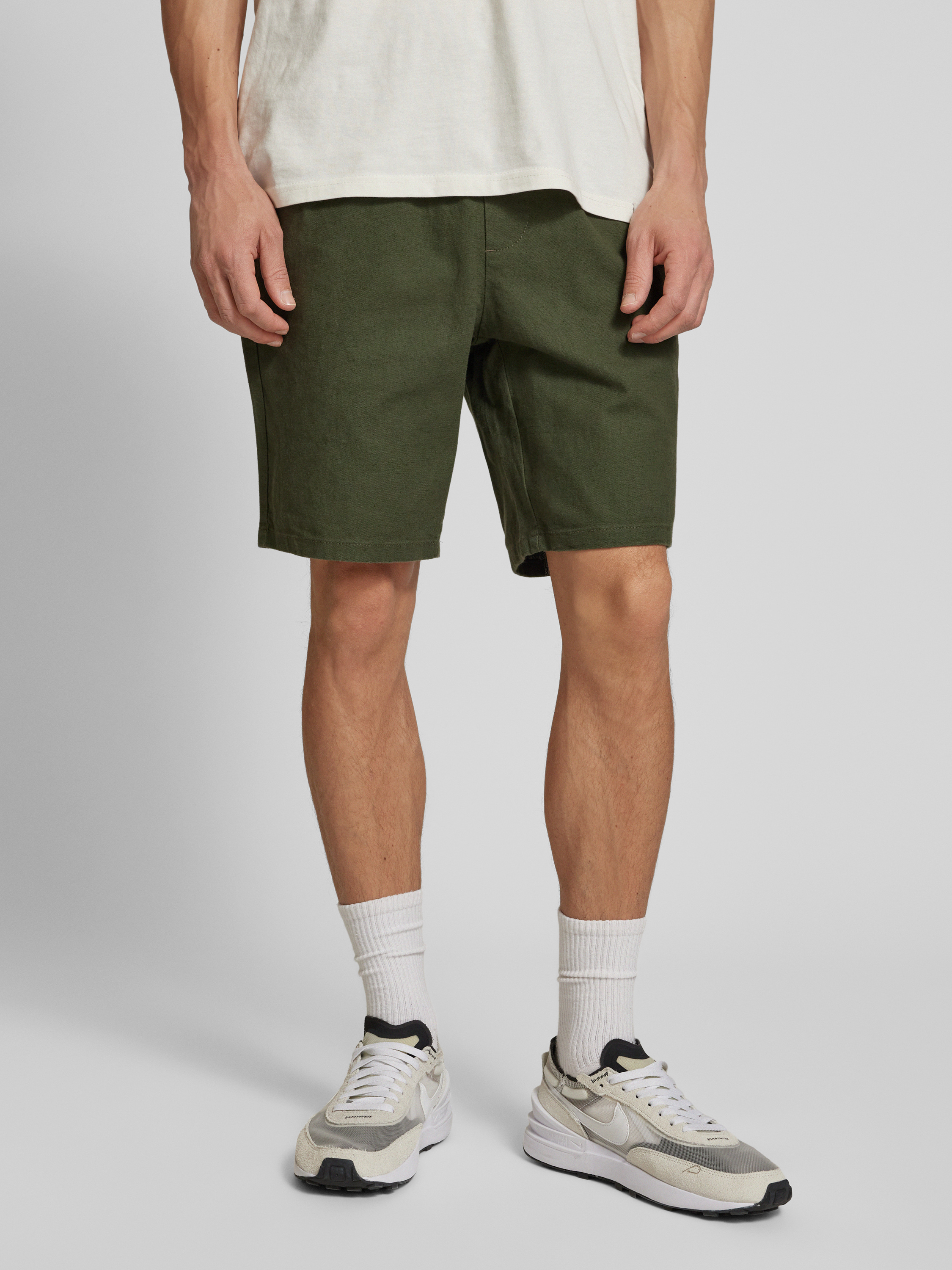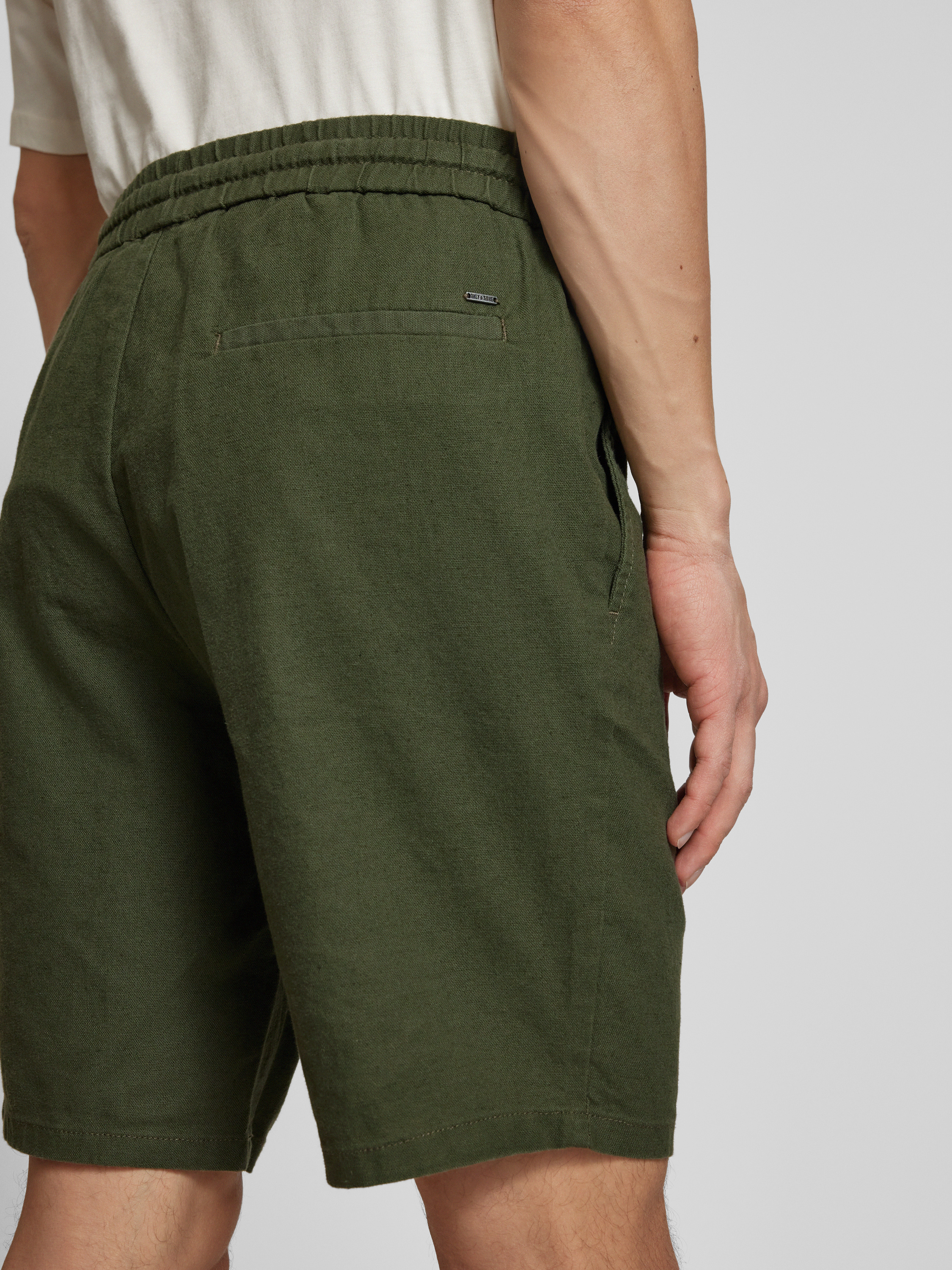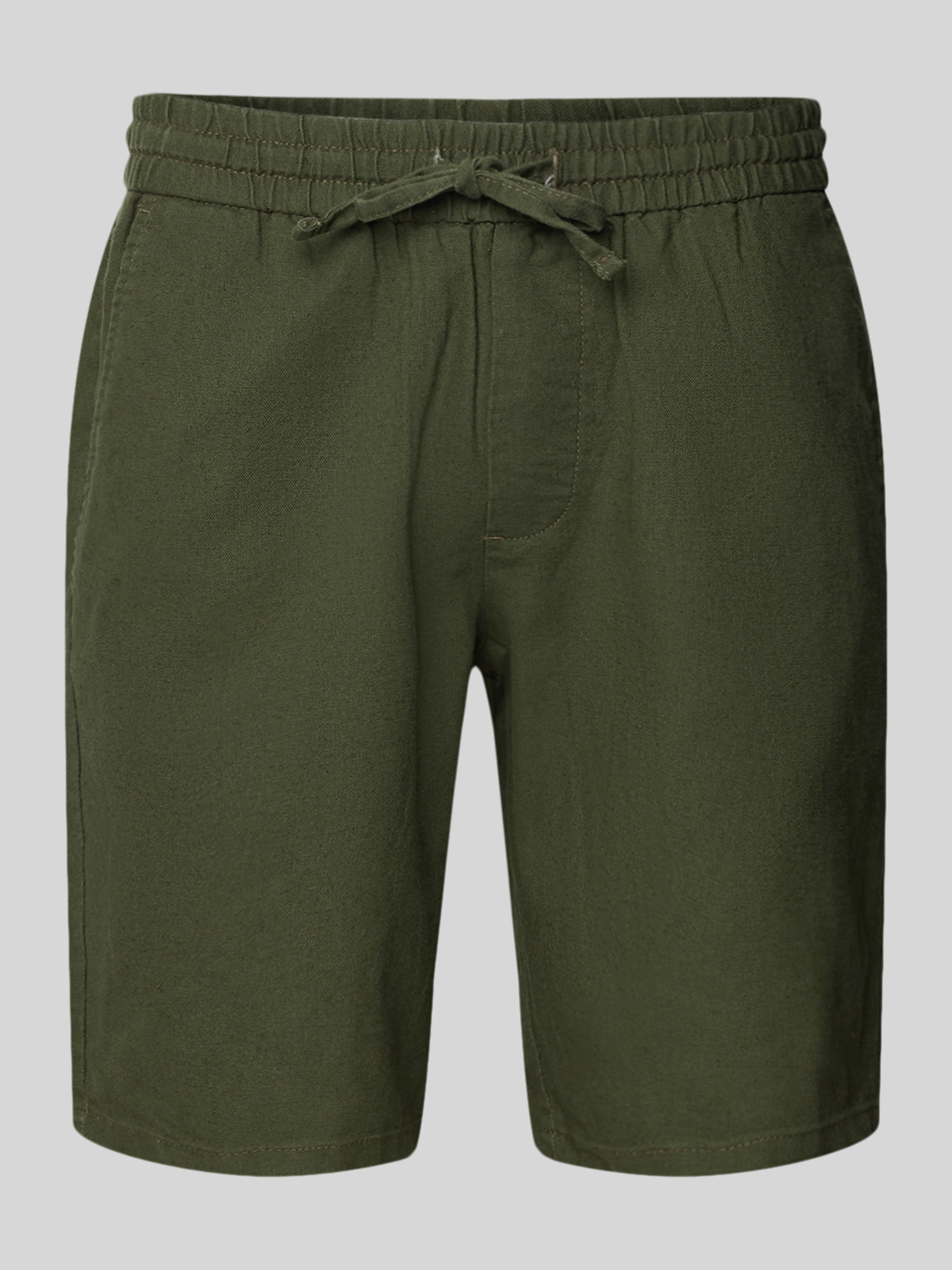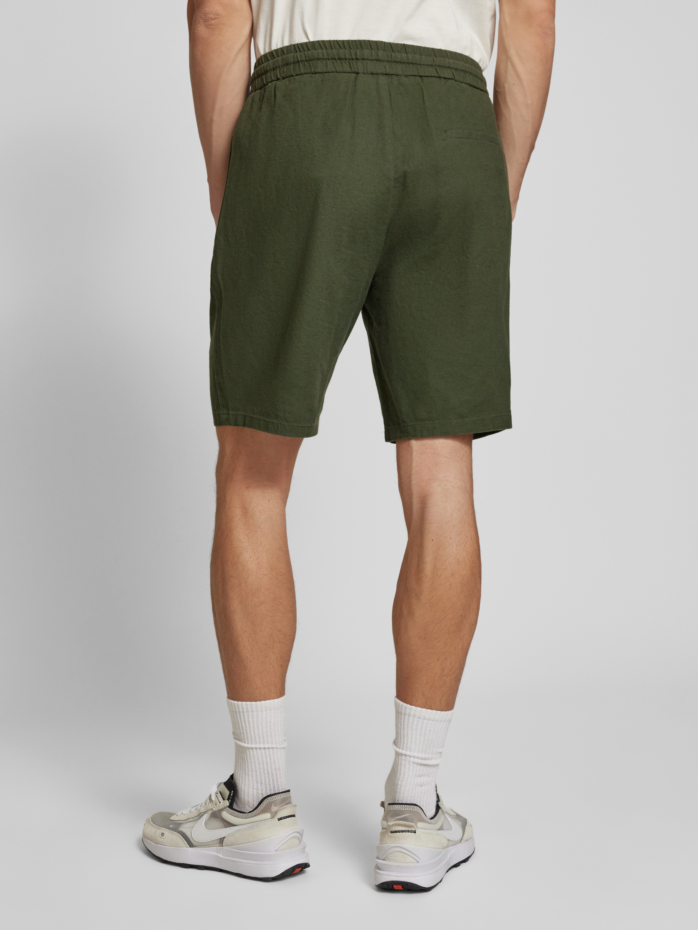 Korte broek van een mix van katoen en linnen, model 'LINUS' in olijfgroen