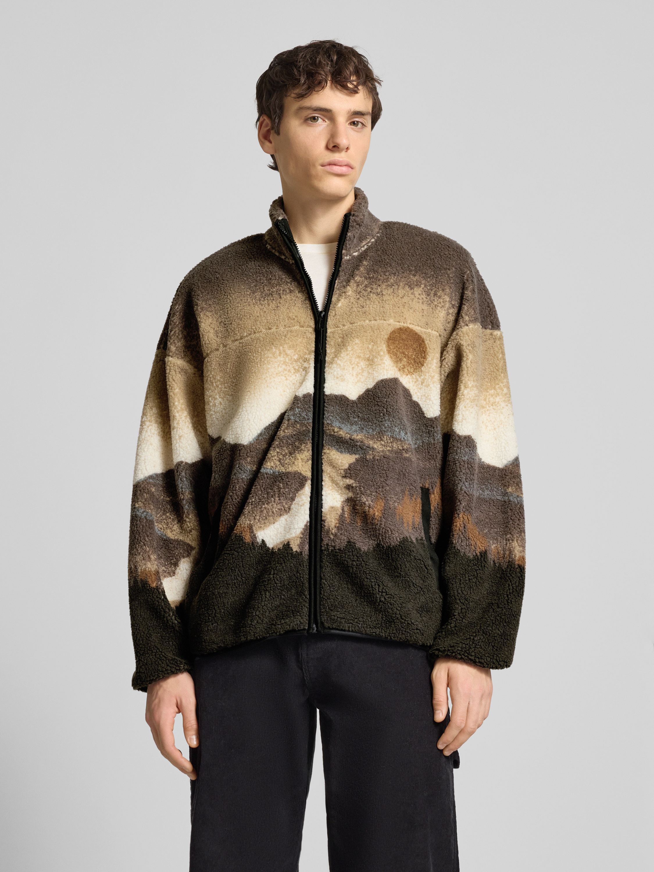 Loose fit jack van imitatiebont met all-over motief, model 'BLAZE' in beige