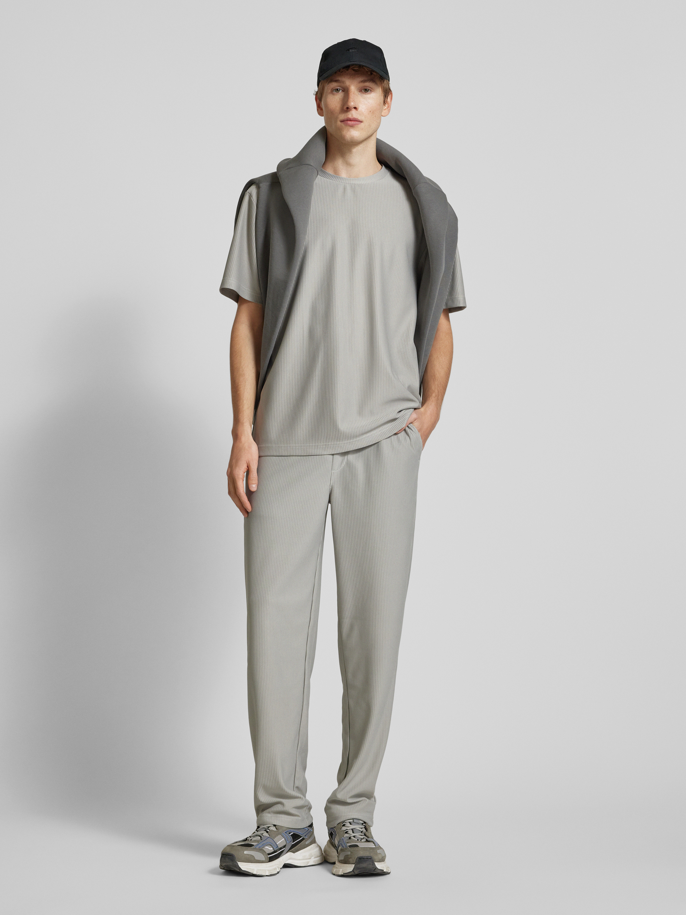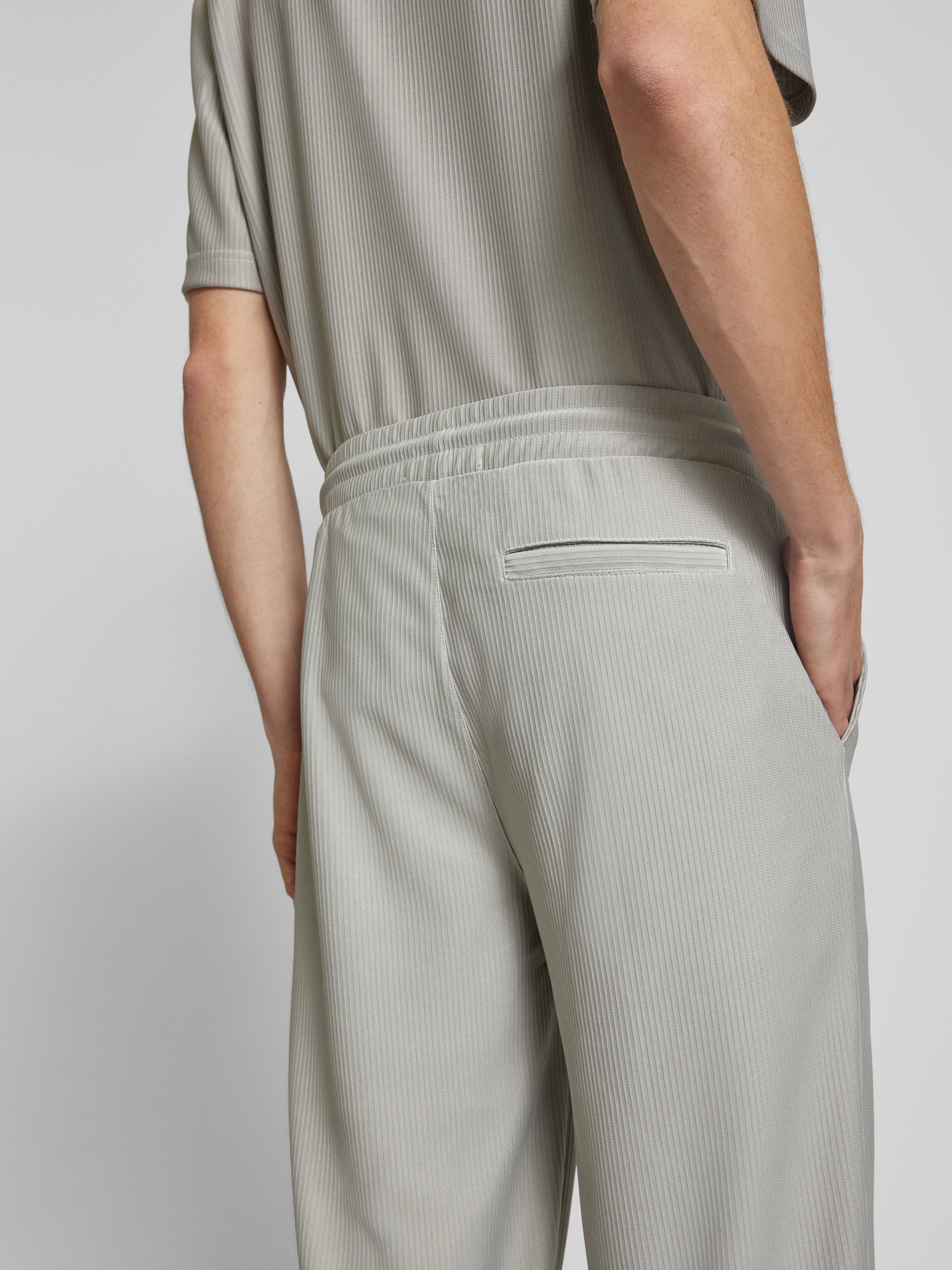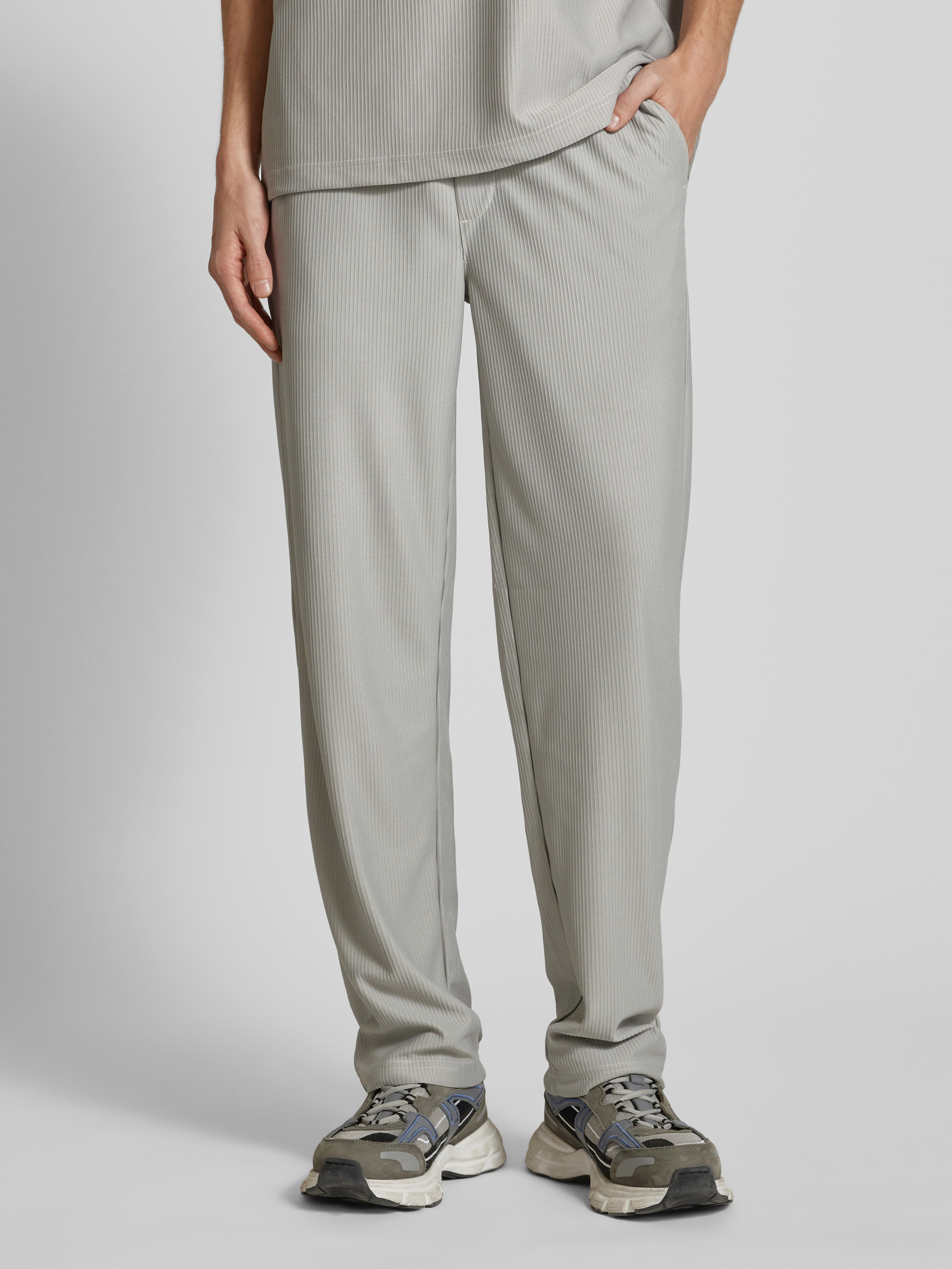 Loose fit stoffen broek met tunnelkoord, model 'SINUS' in middengrijs