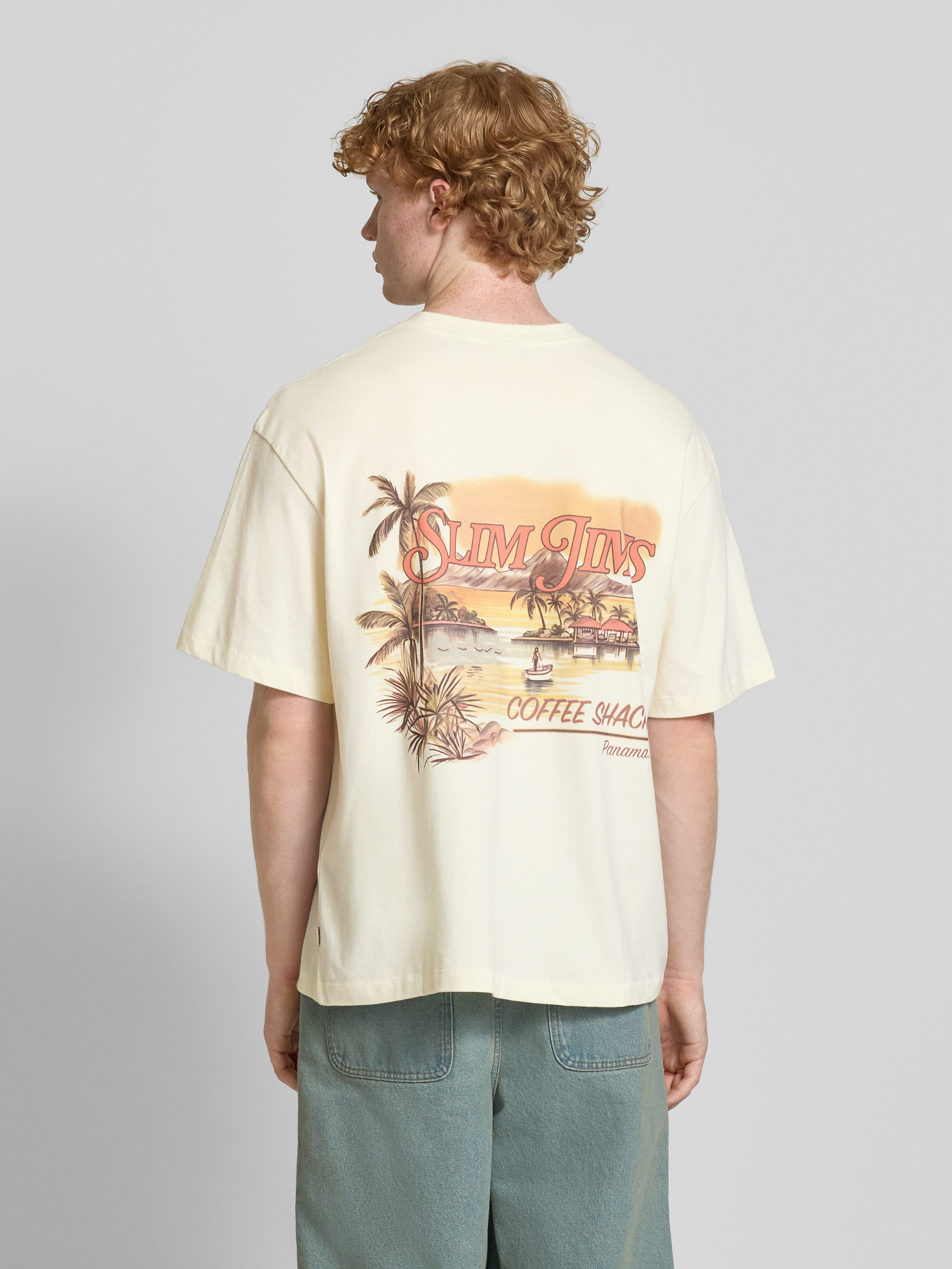 Loose fit T-shirt van puur katoen, model 'MALIK' in offwhite